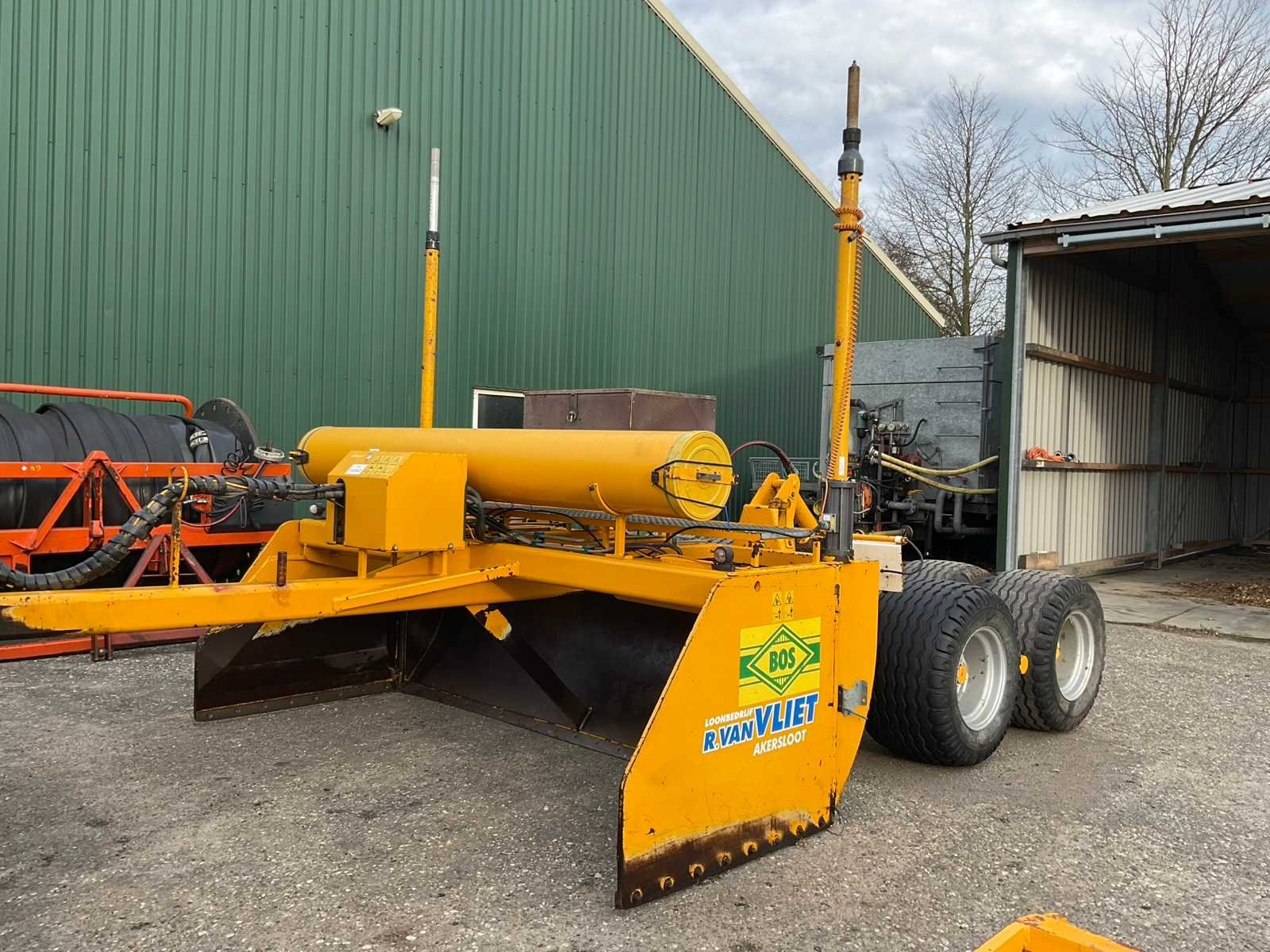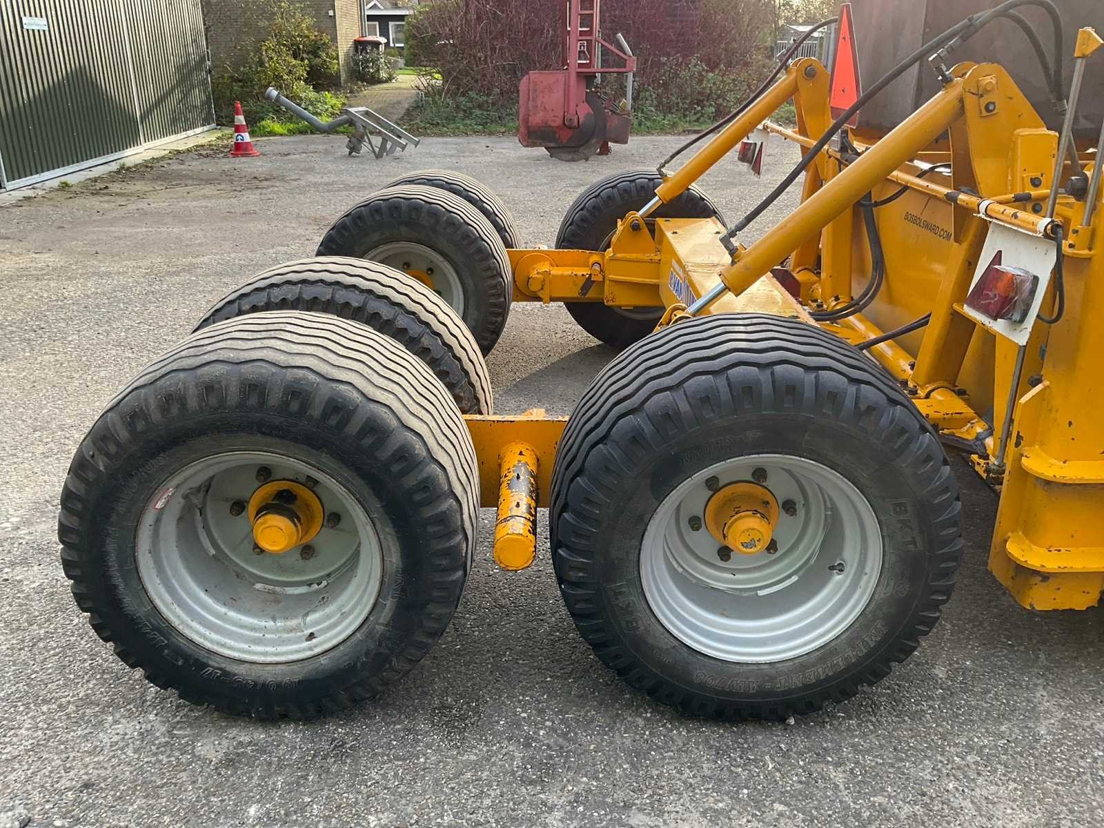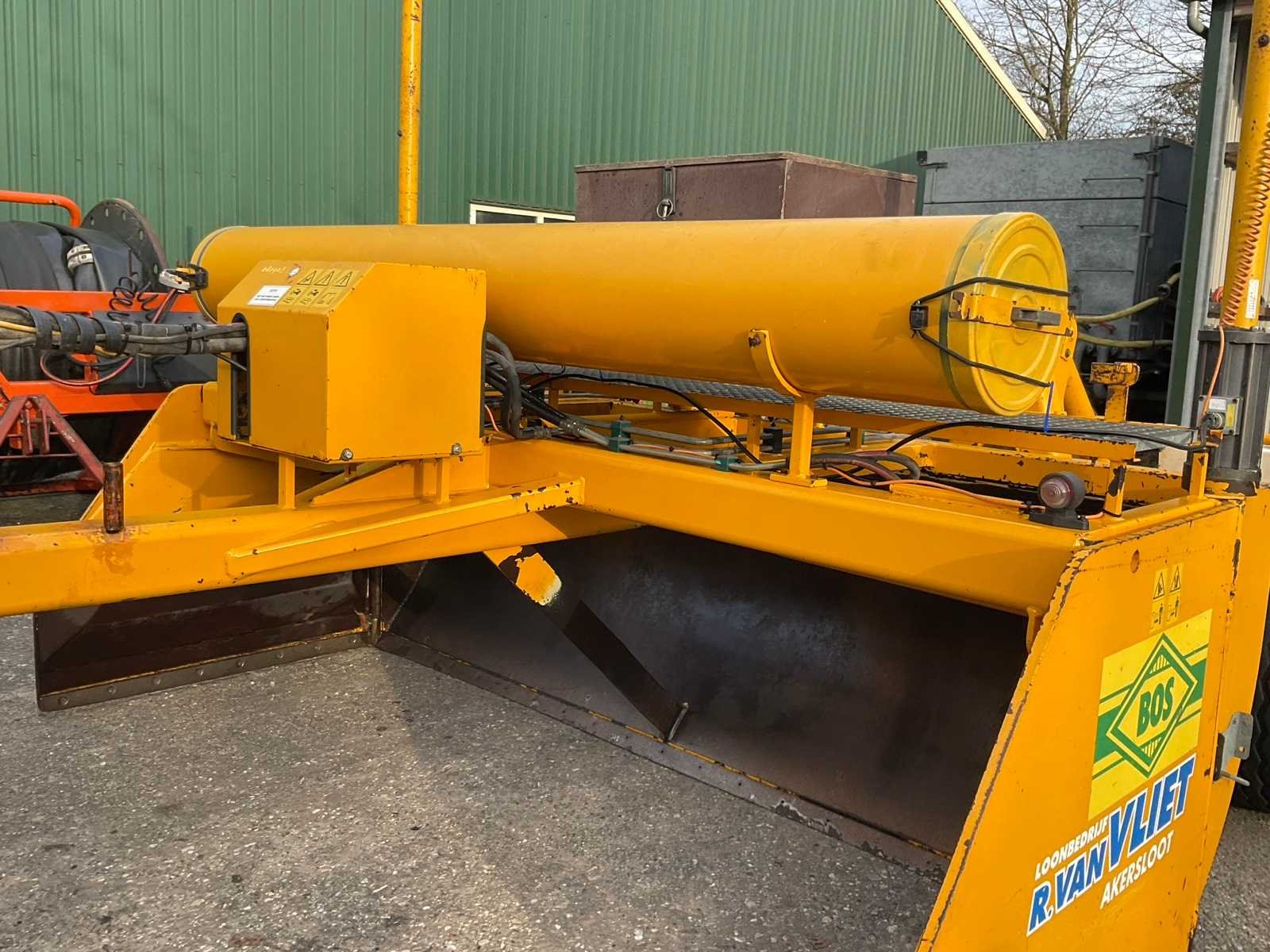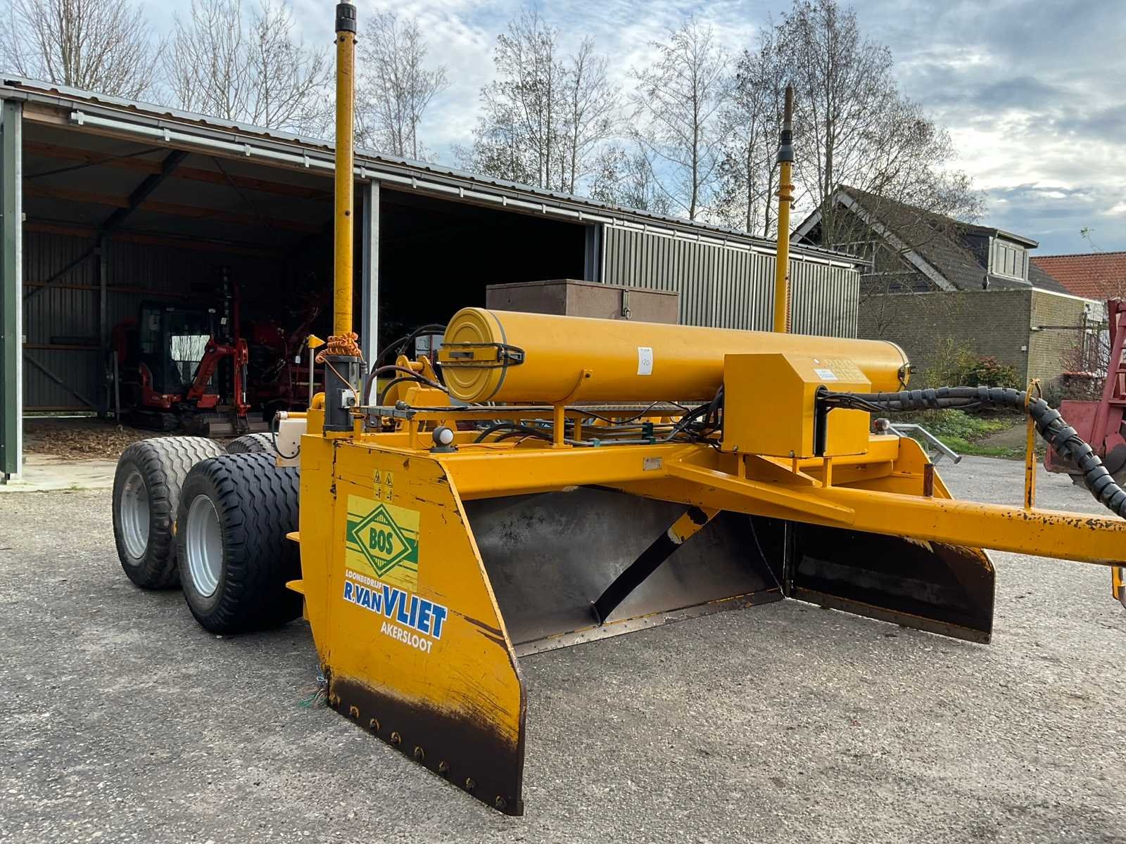 Voorzien van hydraulisch uitklapbare zijkleppen, lasergestuurd, in breedte verstelbaar wielenstel, cultivator aan voorzijde kilverbak (2 punts aansluiting), opbergkist, trekoog; bladhoogte ca. 1000 mm; Pendelend tandemstel, hydraulische schuinstelling, opbergkoker, bedieningspaneel met losse joystick. Merk: Bos Type: KB 5004 Bouwjaar: 2008 Serienummer: 08-1192 Kenteken: LFG-92-P Werkbreedte: 5000mm Aantal wielen: 6 Eigen gewicht: 2000kg Totale afmeting L: 3000mm