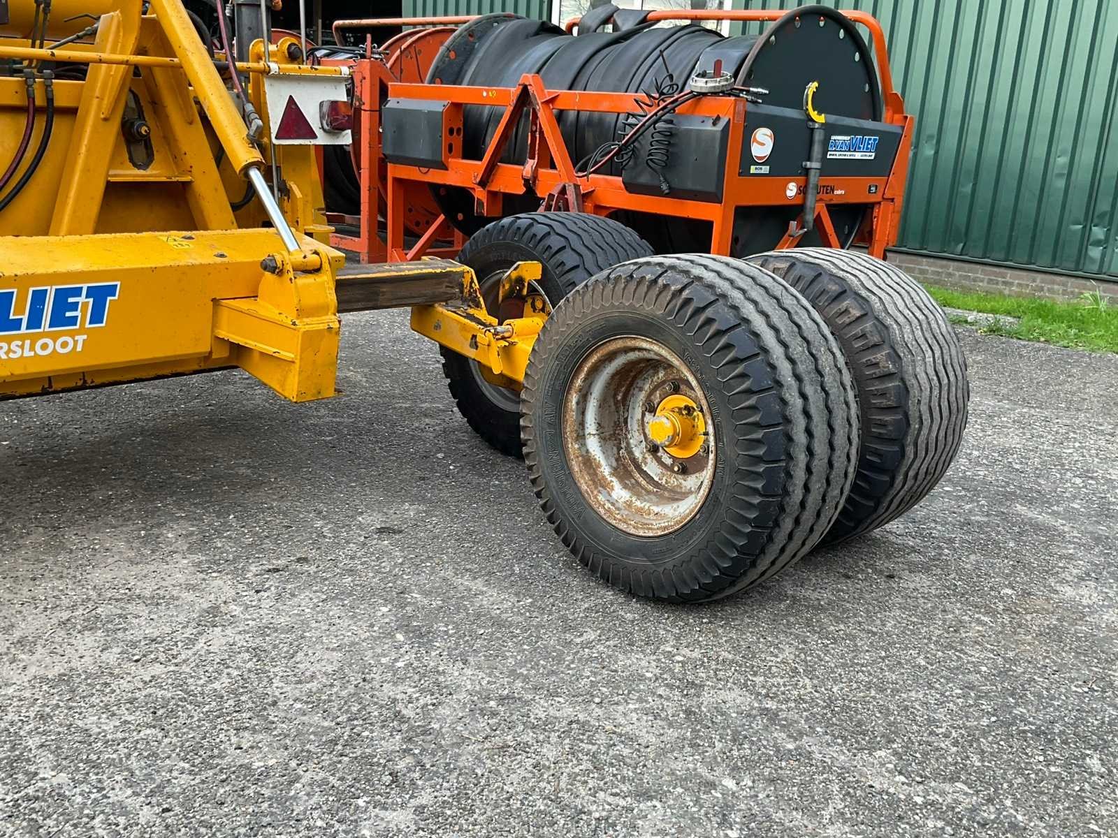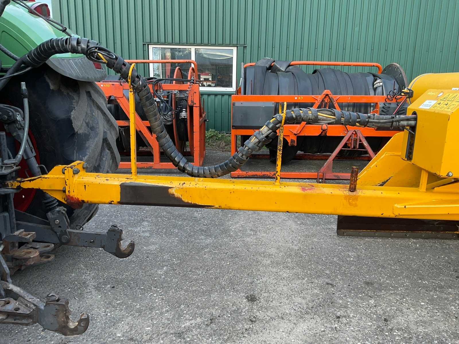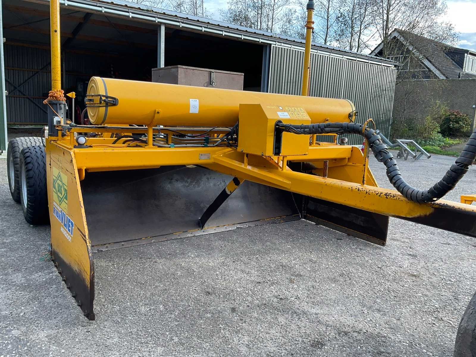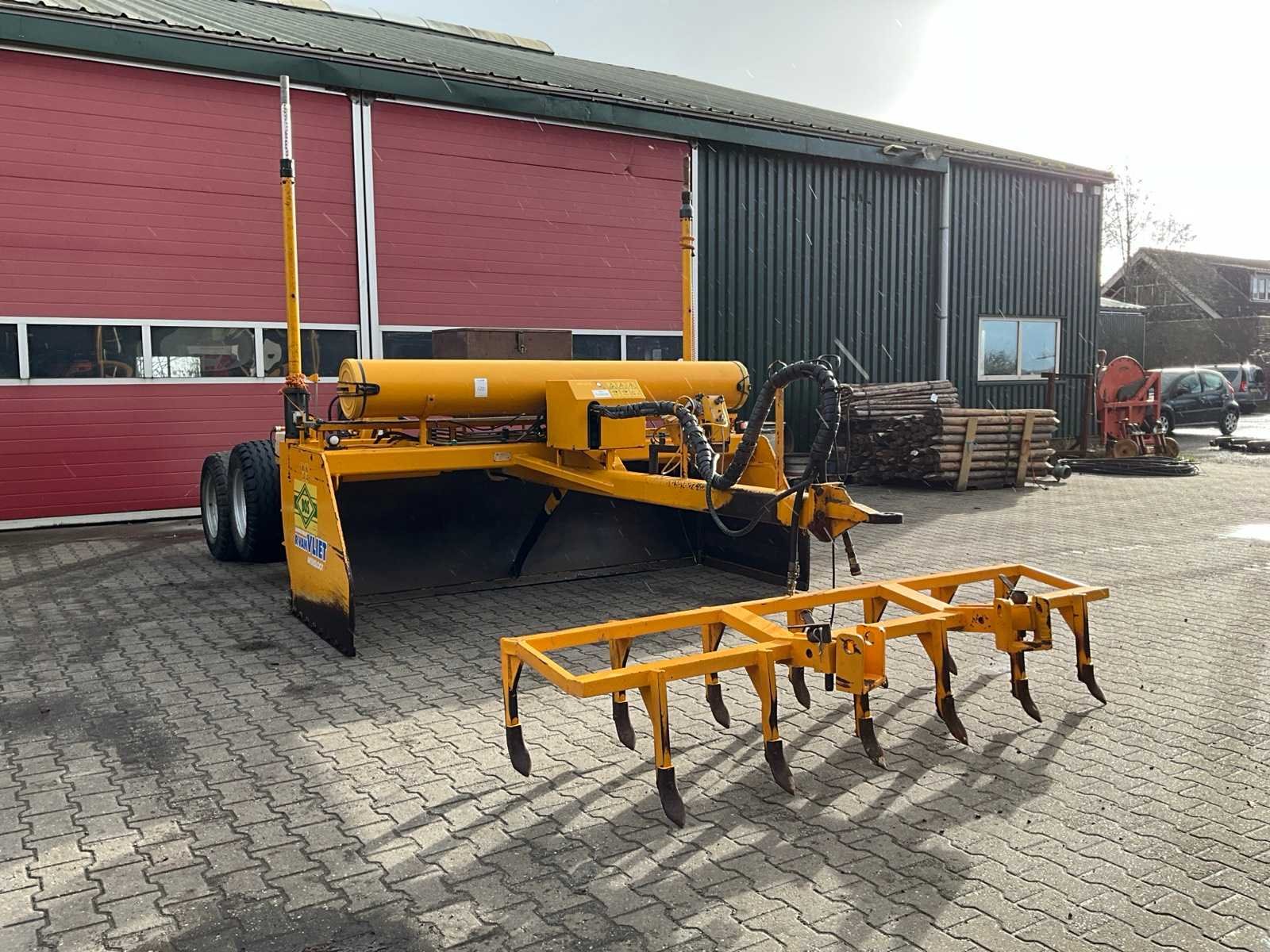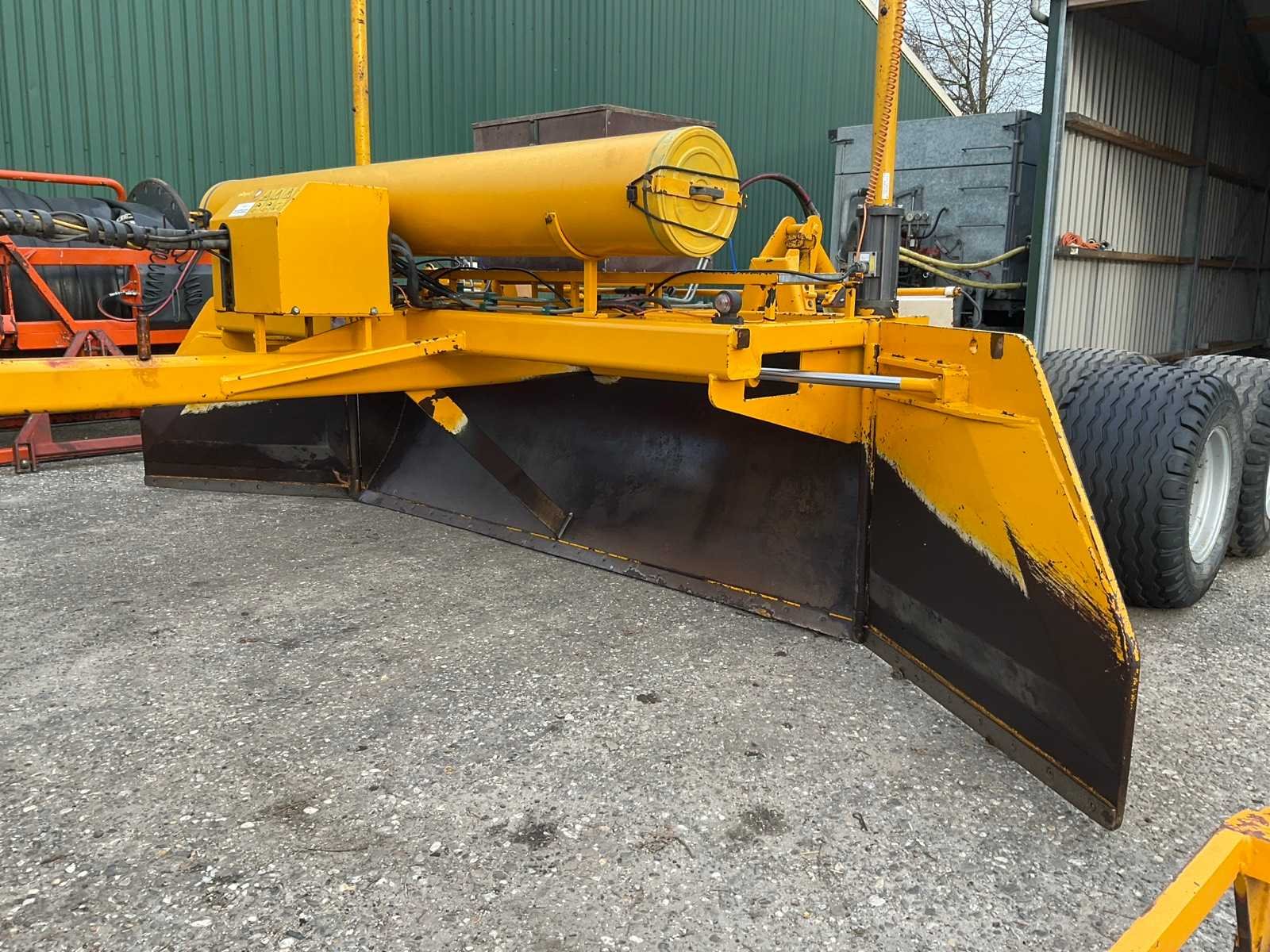 Voorzien van hydraulisch uitklapbare zijkleppen, lasergestuurd, in breedte verstelbaar wielenstel, cultivator aan voorzijde kilverbak (2 punts aansluiting), opbergkist, trekoog; bladhoogte ca. 1000 mm; Pendelend tandemstel, hydraulische schuinstelling, opbergkoker, bedieningspaneel met losse joystick. Merk: Bos Type: KB 5004 Bouwjaar: 2008 Serienummer: 08-1192 Kenteken: LFG-92-P Werkbreedte: 5000mm Aantal wielen: 6 Eigen gewicht: 2000kg Totale afmeting L: 3000mm