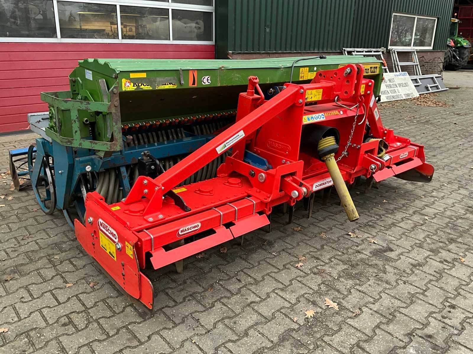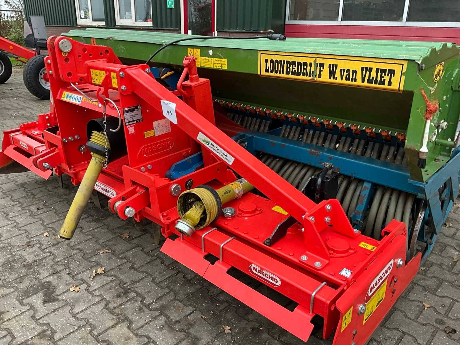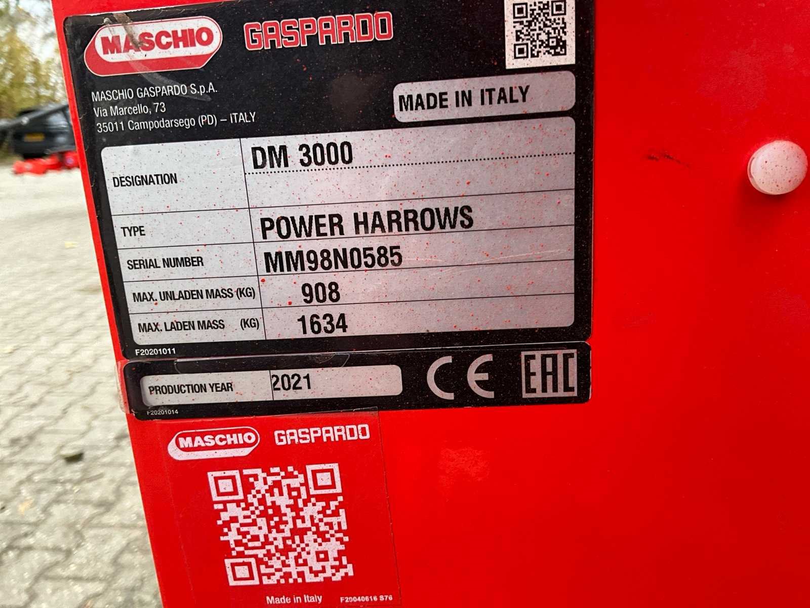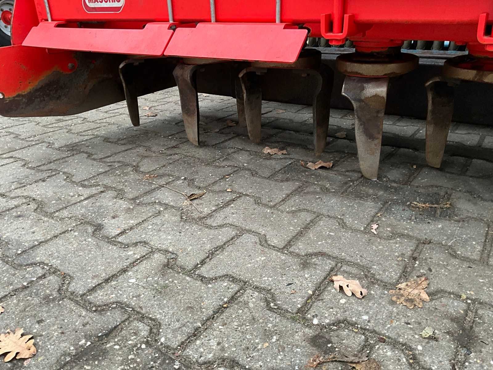 Maschio rotorkopeg uit 2021, voorzien van 12 rotorkoppen, driepunt aansluiting, in hoogte verstelbare egalisatie blad, aftakas, Kockerling zaaiopbouw, 66 uitlopen, verkruimelpakker, ring ø 600 mm, kooirollen, zaad opvang afdraaibakken, dosering verstelling, amaloge hectare teller, loopwiel aandrijving, verlichting, verstelbare diepte instelling, Merk: Maschio/Köckerling Type: DM300/ Werkbreedte: 3000mm Totale afmeting L: 2500mm