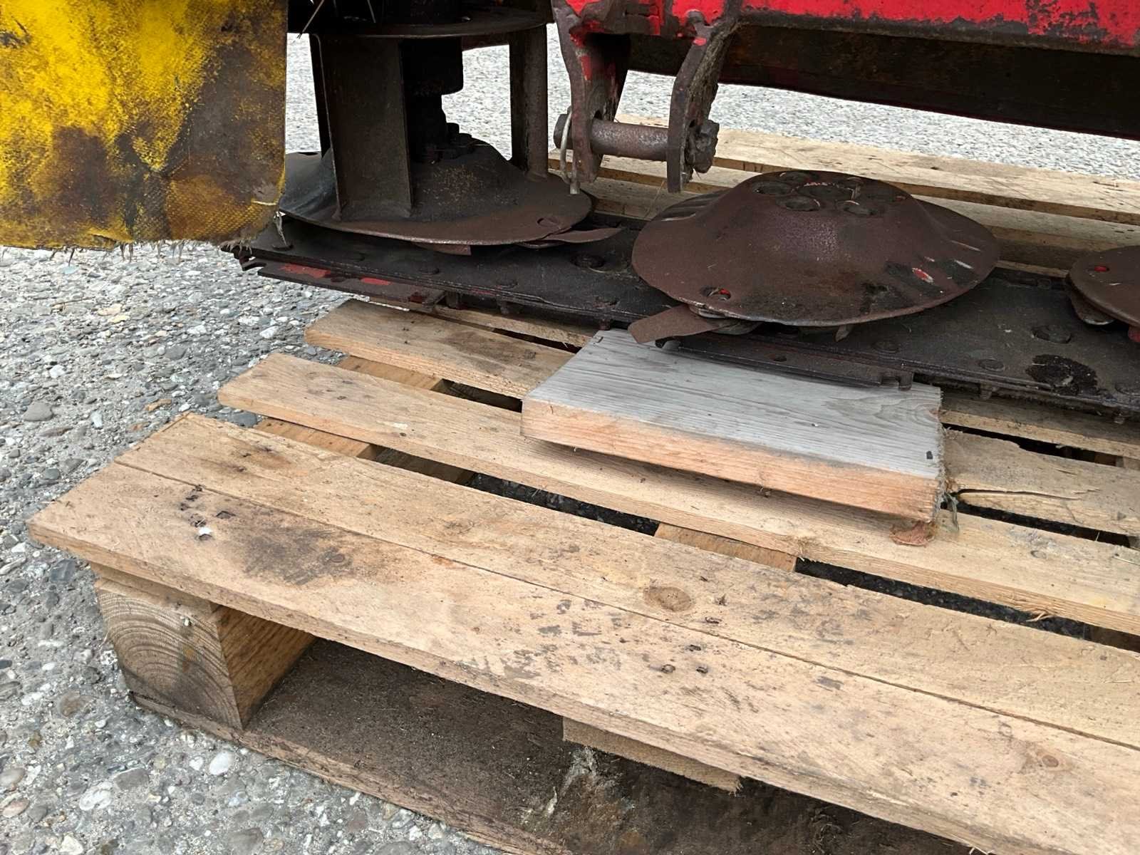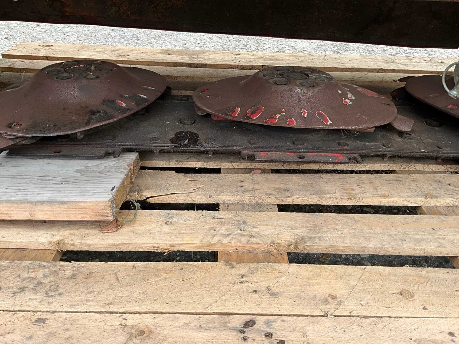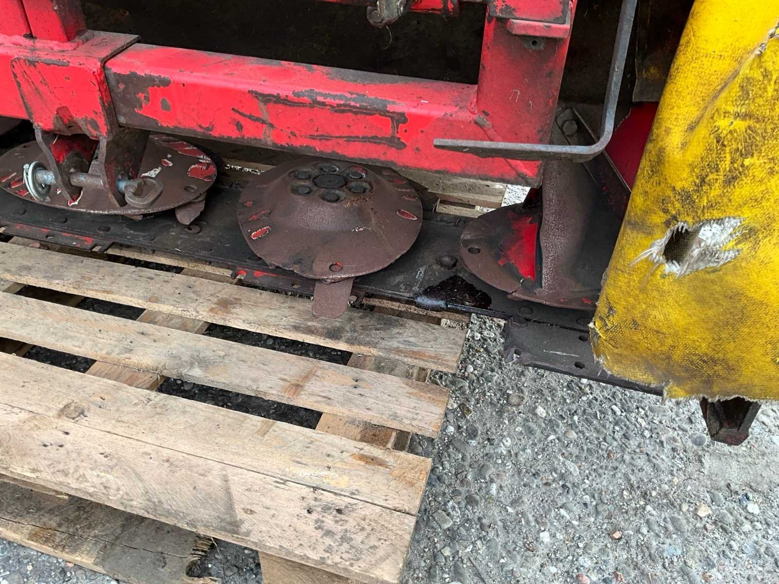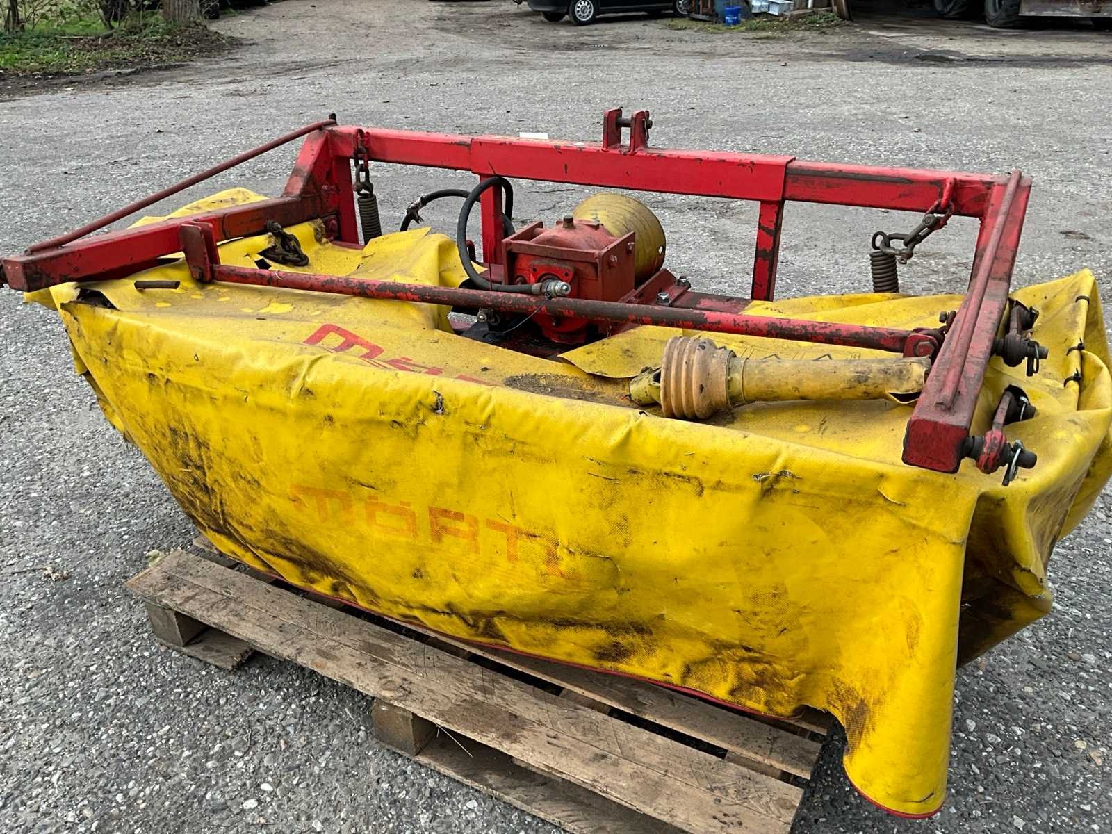 Betreft een schijvenmaaier, voorzien van driepunt aansluiting, side-shift, getrokken front uitvoering, verend opgehangen Merk: Mortl Werkbreedte: 1900mm Totale afmeting L: 1000mm Totale afmeting Breedte: 2100mm