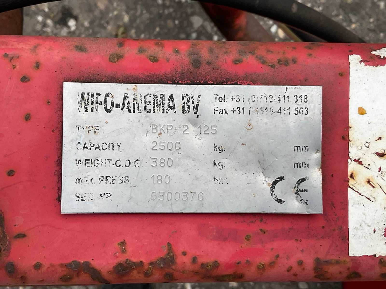 Cap. 2500 kg; dubbele uitvoering t.b.v. 2 ronde balen; 900-1300 mm, volvo adapter, middenstuk hydraulisch wegklapbaar Merk: Wifo-Anema Type: BKP 2 125 Totale afmeting L: 2500mm Totale afmeting Breedte: 1350mm Totale afmeting Hoogte: 950mm