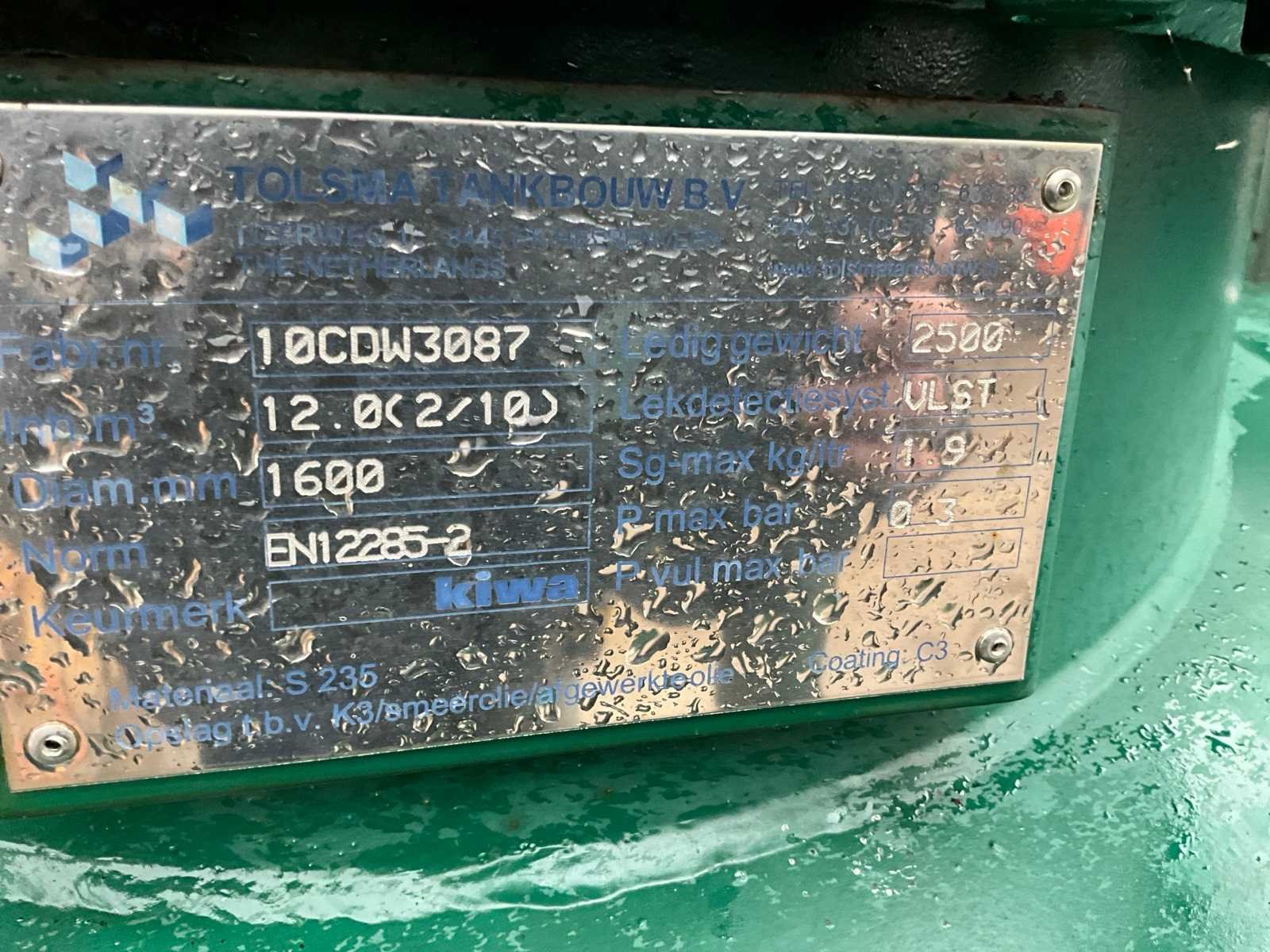 Voorzien van 2 compartimenten, 1x 2000 Ltr, 1x 10000 Ltr, 2x brandstofpomp (230V), 2x trap, aanrijbeveiliging, Let op! Kavel dient te worden gedemonteerd Merk: Tolsma Staal: true Capaciteit.: 12000l Dubbelwandig: true Eigen gewicht: 2500kg
