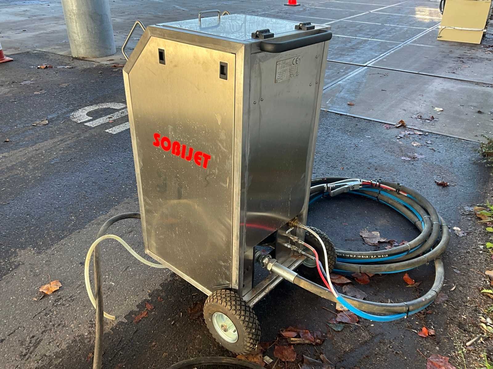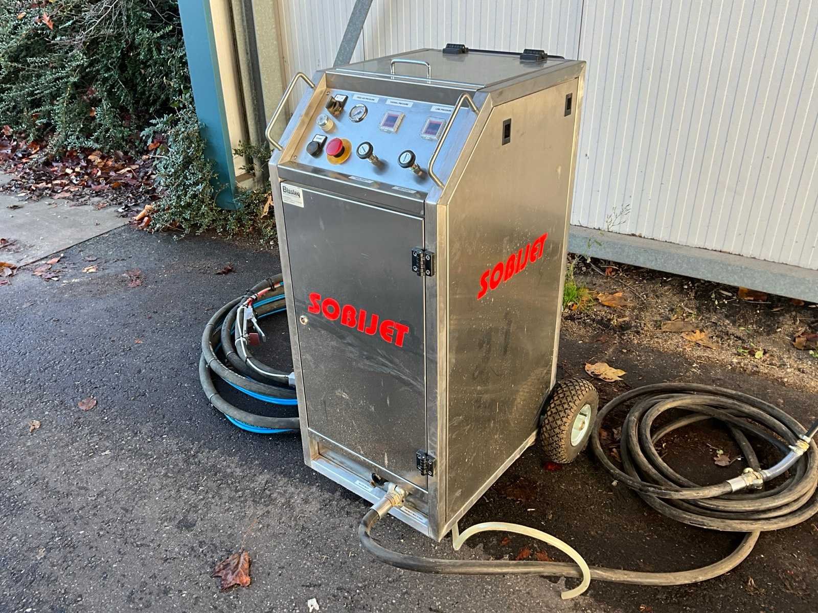 Tank capaciteit: 24 Ltr, maximale werkdruk 10 B. Merk: Sobijet Type: 123 WE Bouwjaar: 2018 Serienummer: 964/8 Droogijs: true Afmeting l: 750mm Afmeting b: 620mm Afmeting h: 1200mm