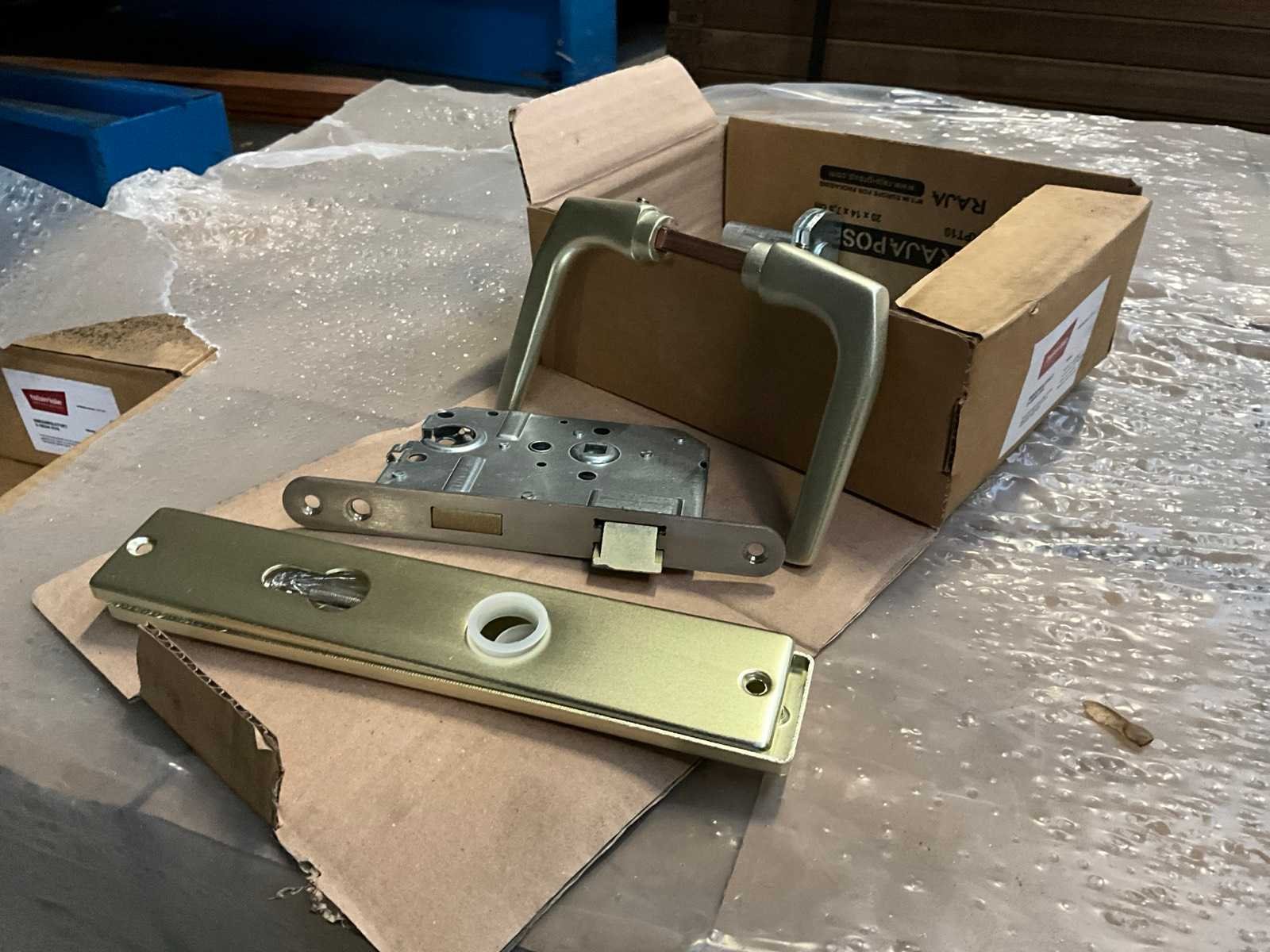 RVS slot sluitplaat, aluminium deurkruk, cilinder met sleutels, 2x plaatduim 16mm VZ