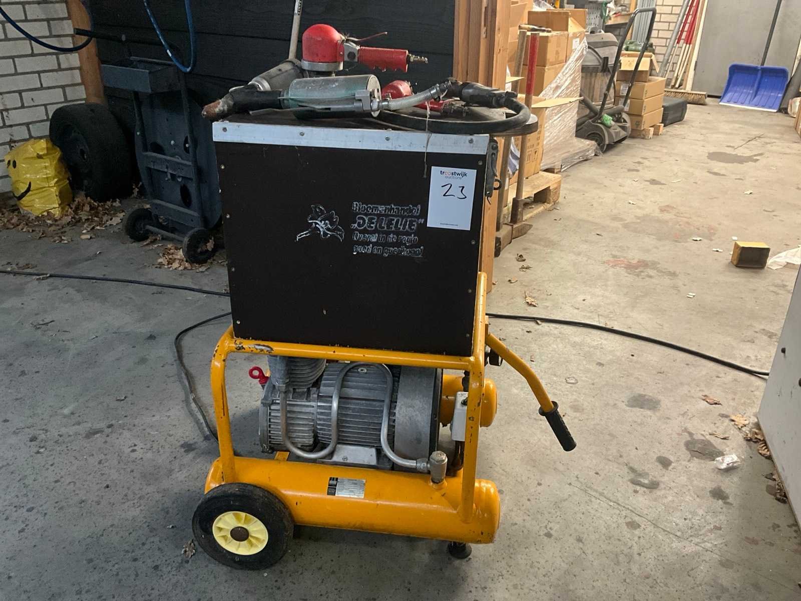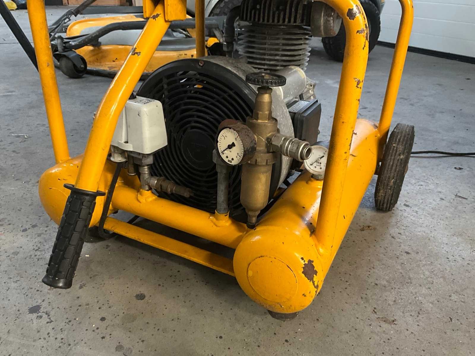 Inclusief 4x luchtgereedschap. Merk: Schneider Type: Compact 350 Bouwjaar: 1982 Serienummer: 943 Mobiel: true Capaciteit.: 10bar Vermogen: 2.2kW Aansluiting: 230V Totale afmeting L: 800mm Totale afmeting Breedte: 630mm Totale afmeting Hoogte: 900mm
