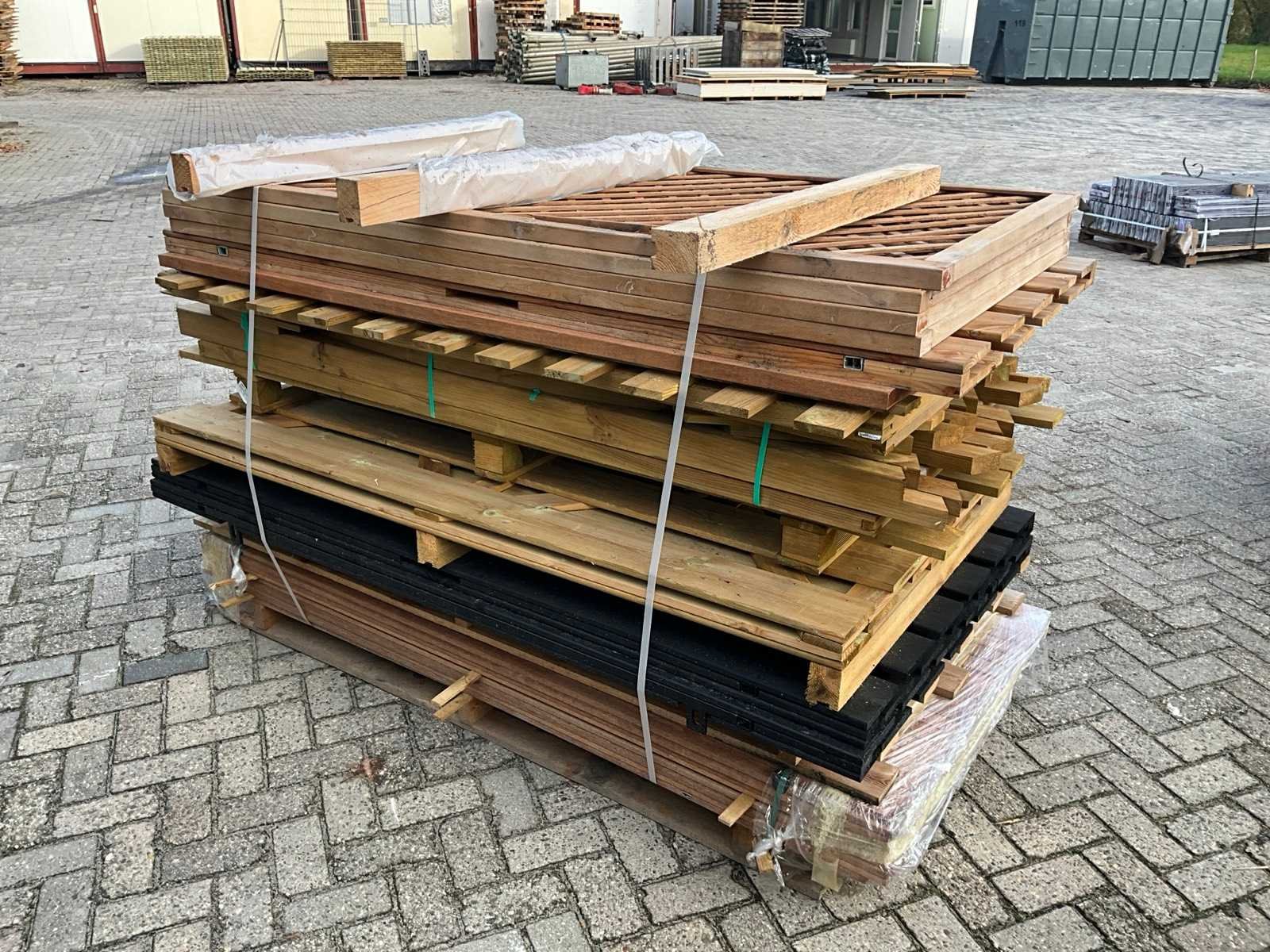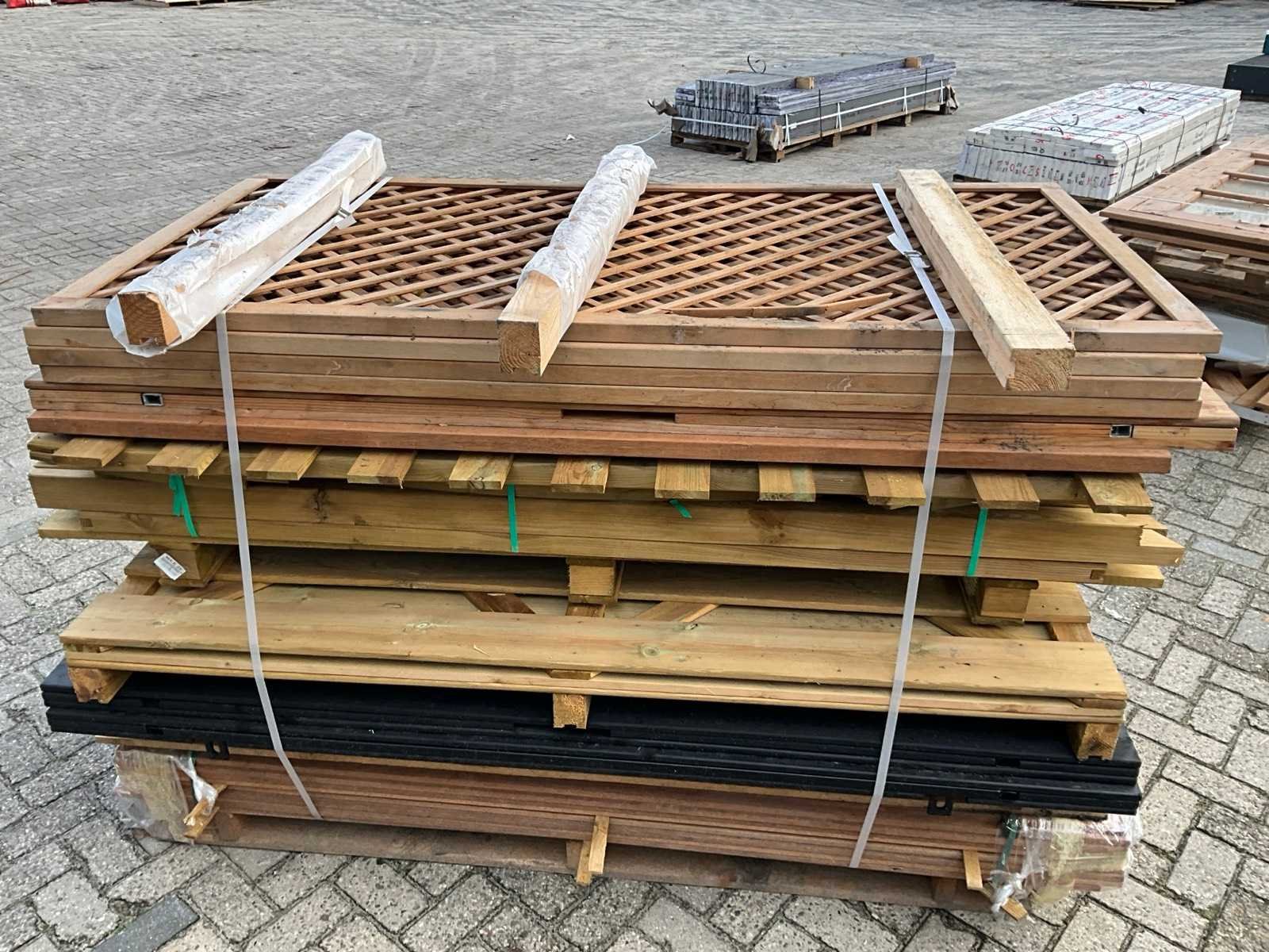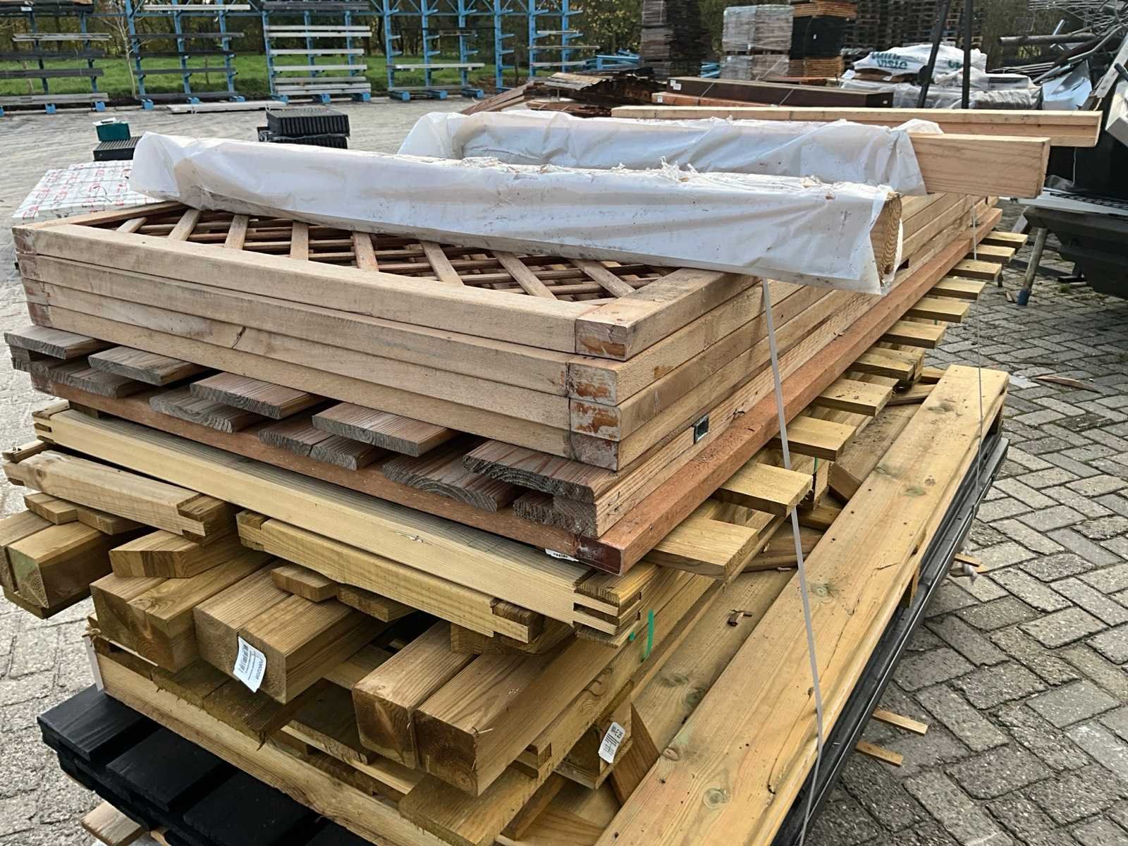 Bestaande uit diverse afmetingen schermen, deuren, waaronder circa 150x hardhouten latten, afmeting circa 1.4x5x200 cm Lengte: 200cm