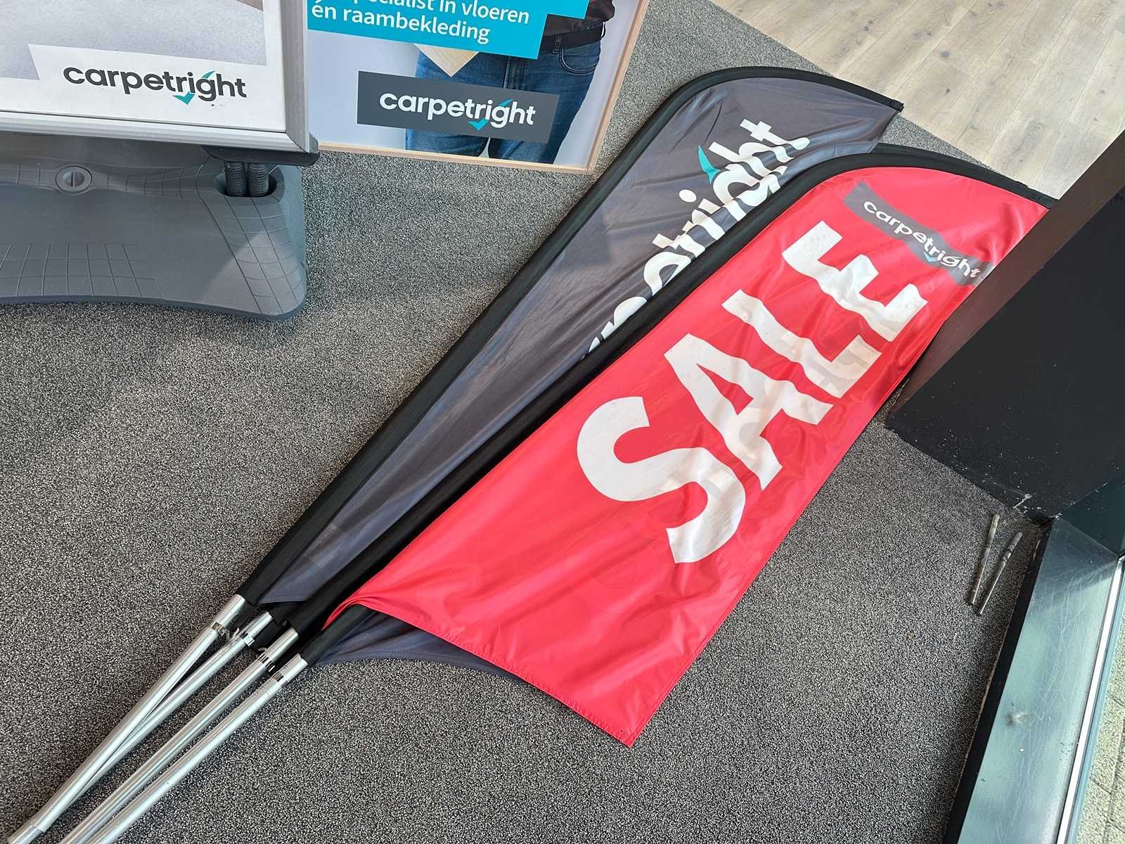 Afmeting van het houten decoratiestuk "Welkom" is 80x30x140 cm (LxBxH). Lengte van de beachvlaggen is 300 cm. Breedte: 90cm Hoogte: 152cm