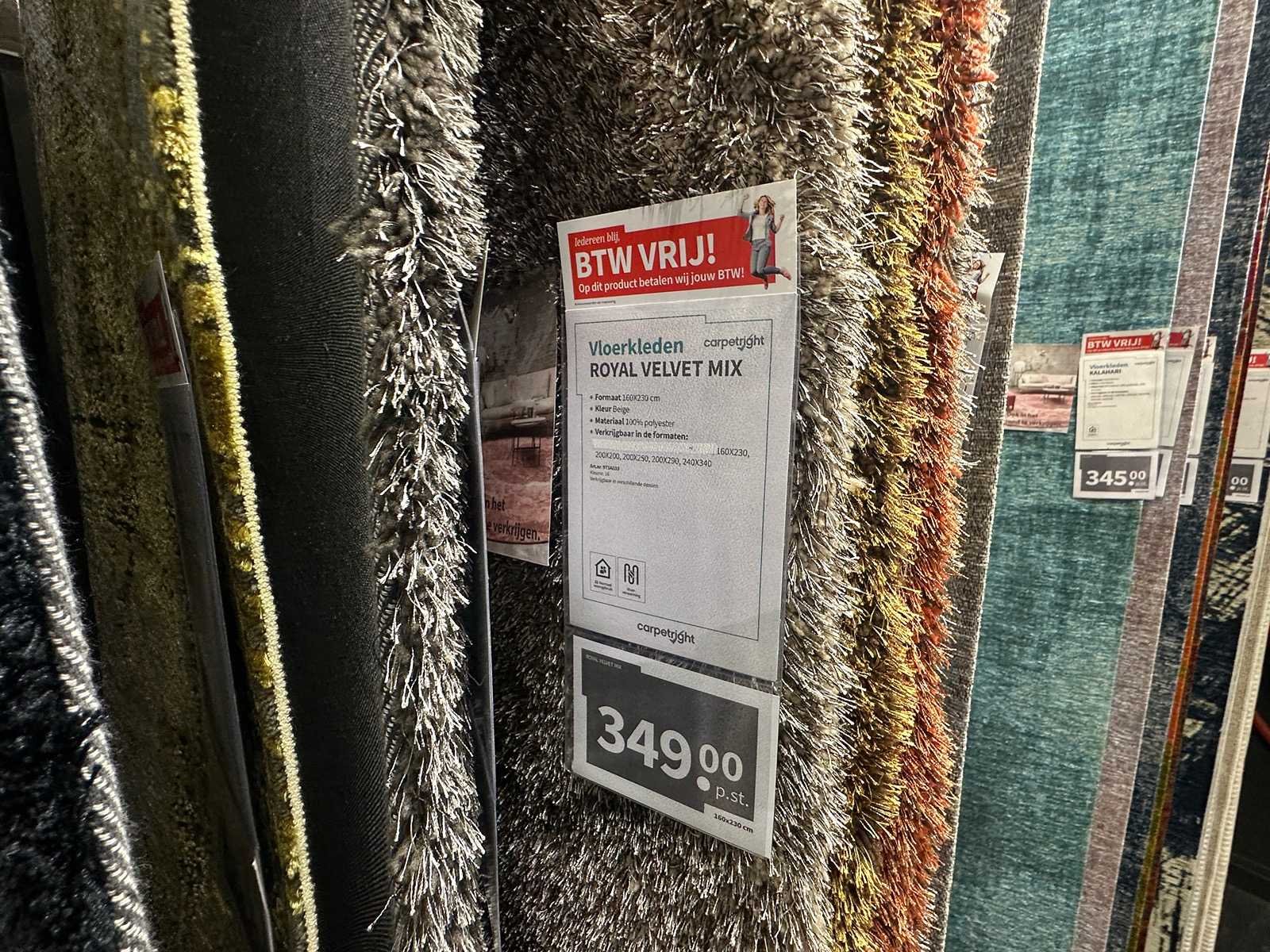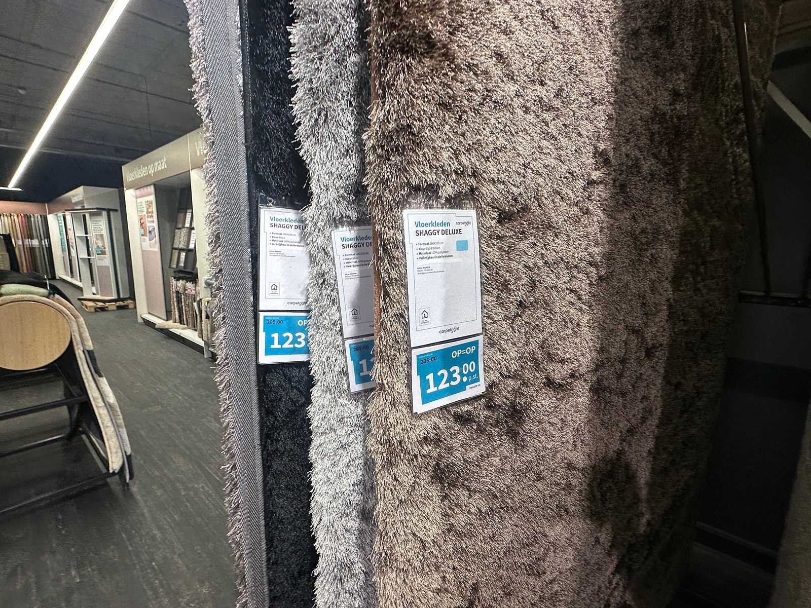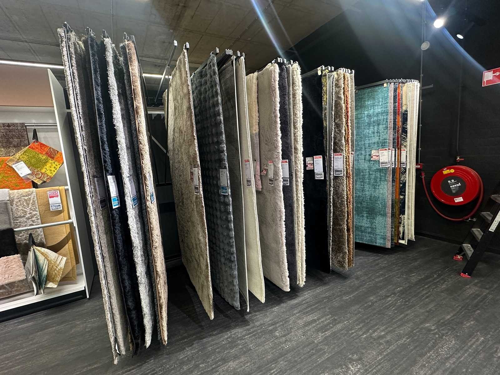 Deze partij bestaat uit diverse vloerkleden met verschillende afmetingen en kleuren. Exclusief rek. Retailwaarde circa € 7.500,-
