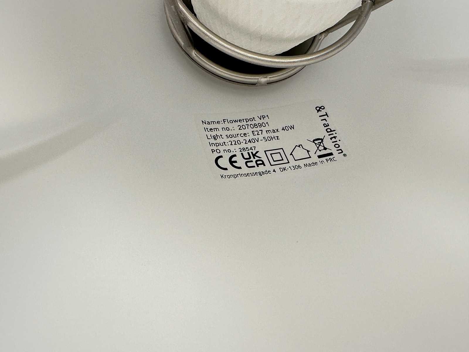 Merk: Vernon Panton Model: Flowerpot VP1 Met lichtbron: true Breedte: 23cm Hoogte: 18cm Materiaal: Kunststof