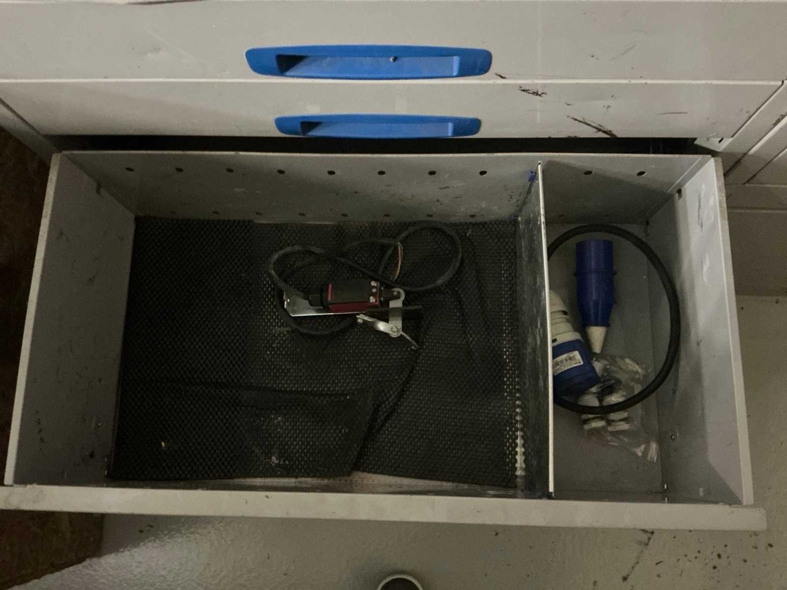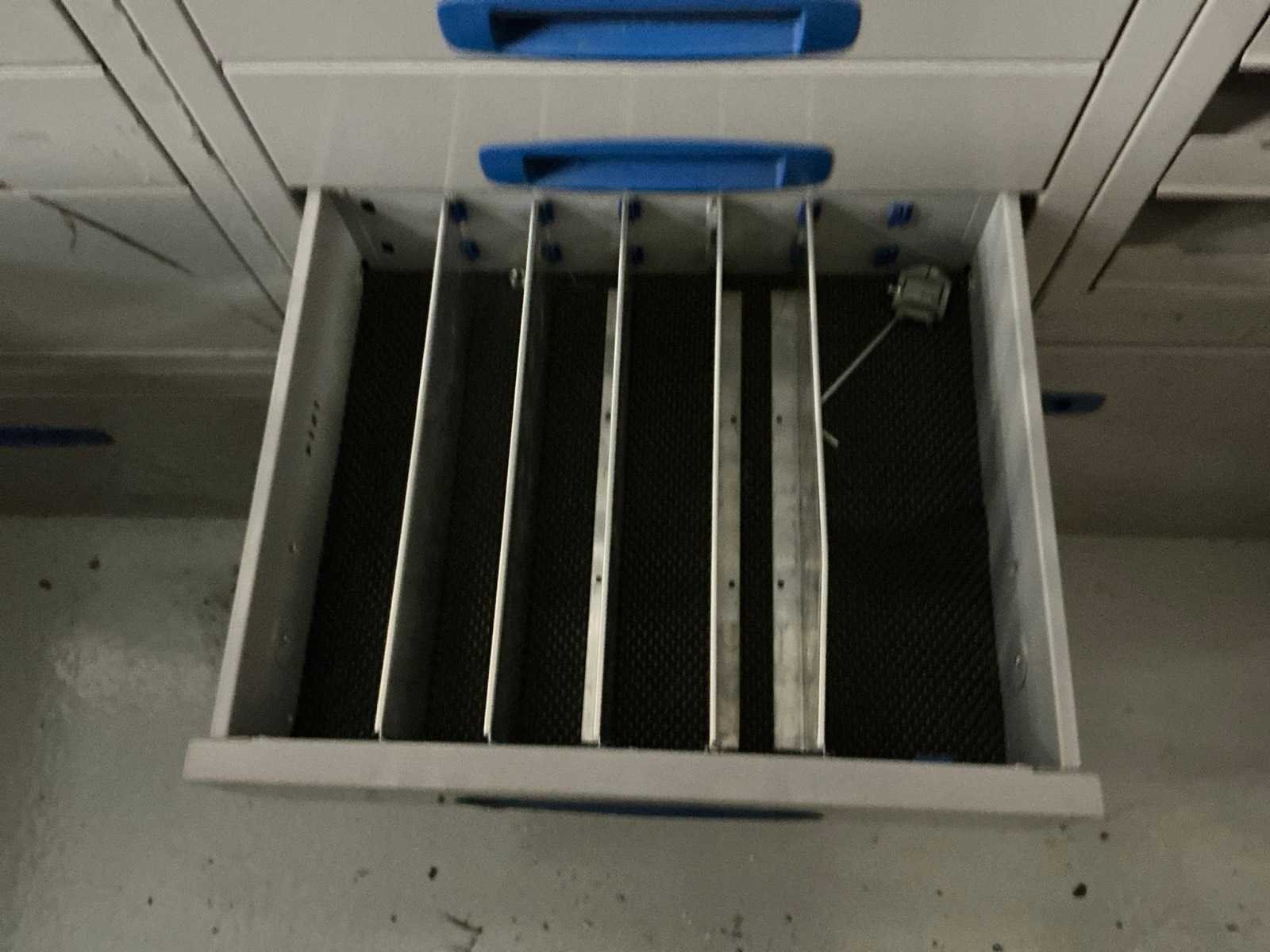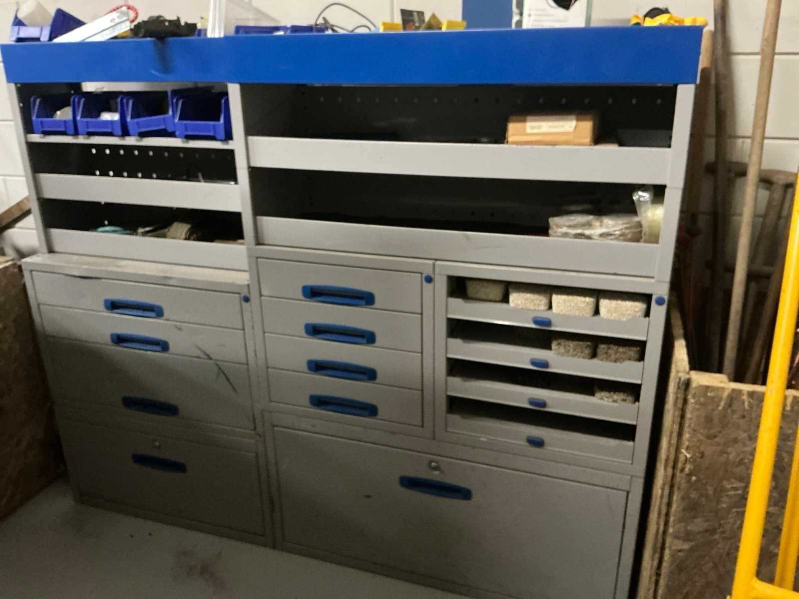 1x kast 76x36x146 cm; voorzien van 3x schuiflade; 1x kast 101x36x146 cm; voorzien van 4x schuiflade; let op onderste lade van beide kasten gaan niet open; met inhoud