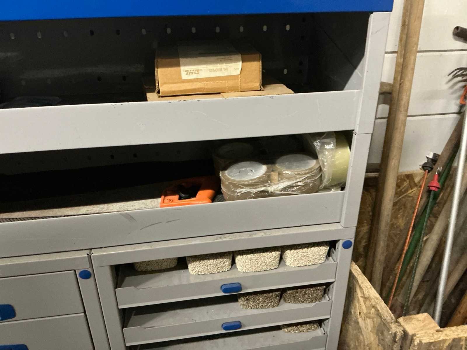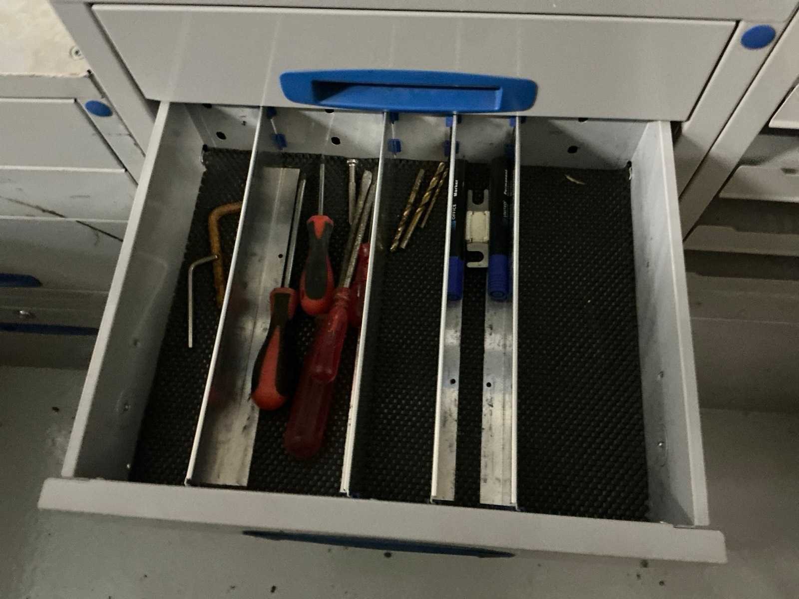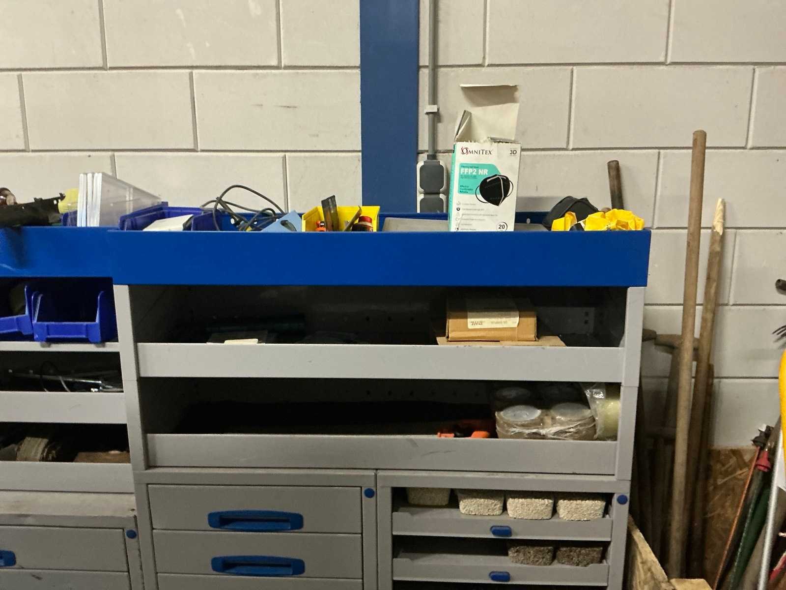 1x kast 76x36x146 cm; voorzien van 3x schuiflade; 1x kast 101x36x146 cm; voorzien van 4x schuiflade; let op onderste lade van beide kasten gaan niet open; met inhoud