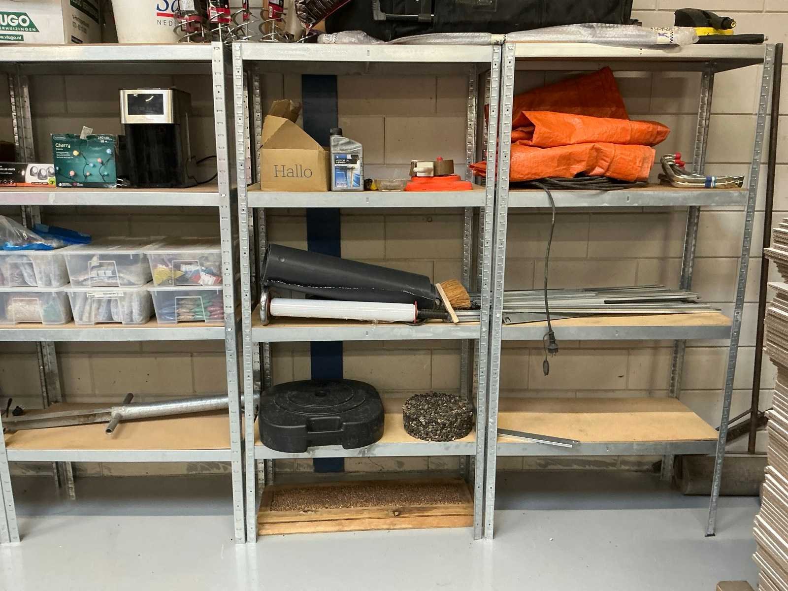 Alsook 4x diverse tafels; stelling zonder inhoud Demontabel: true Lengte: 90cm Breedte: 45cm Hoogte: 180cm