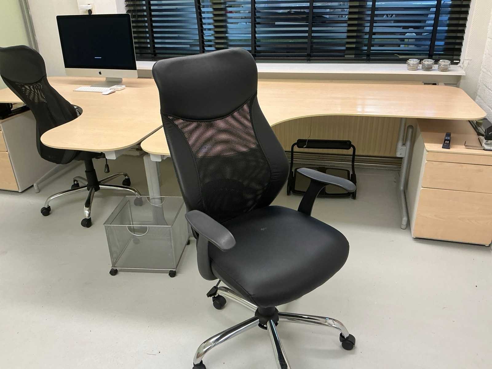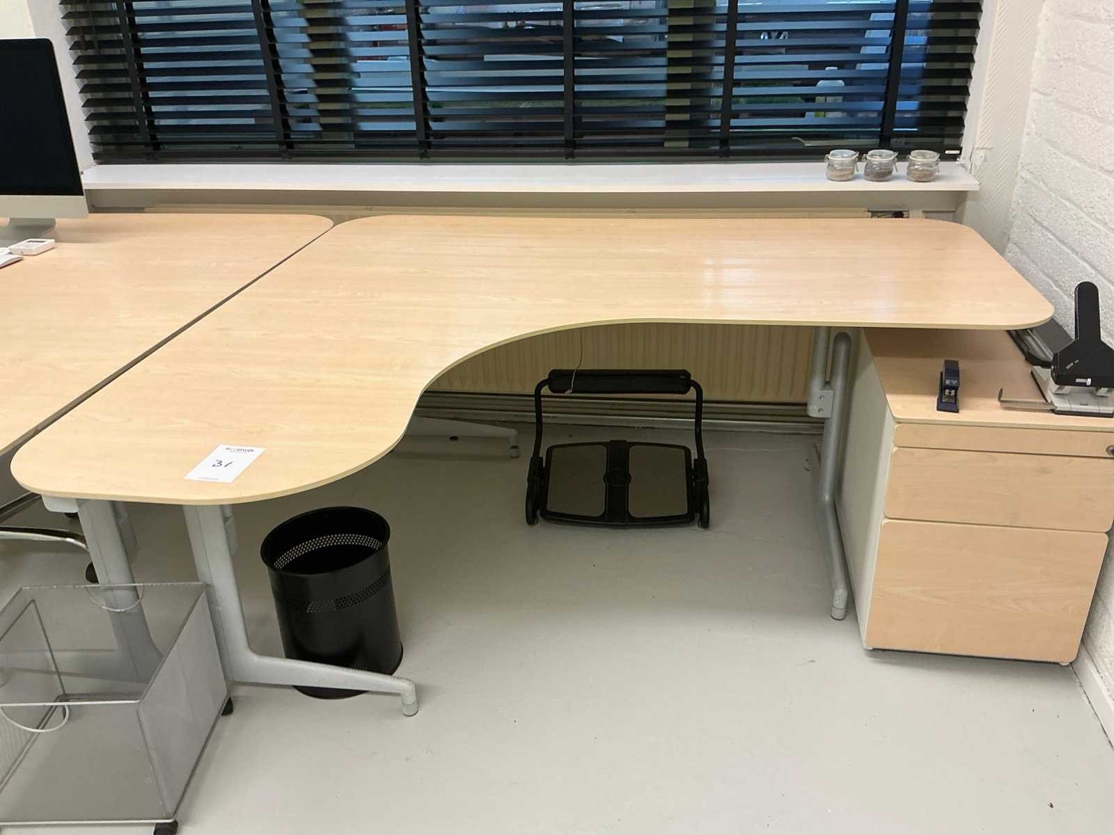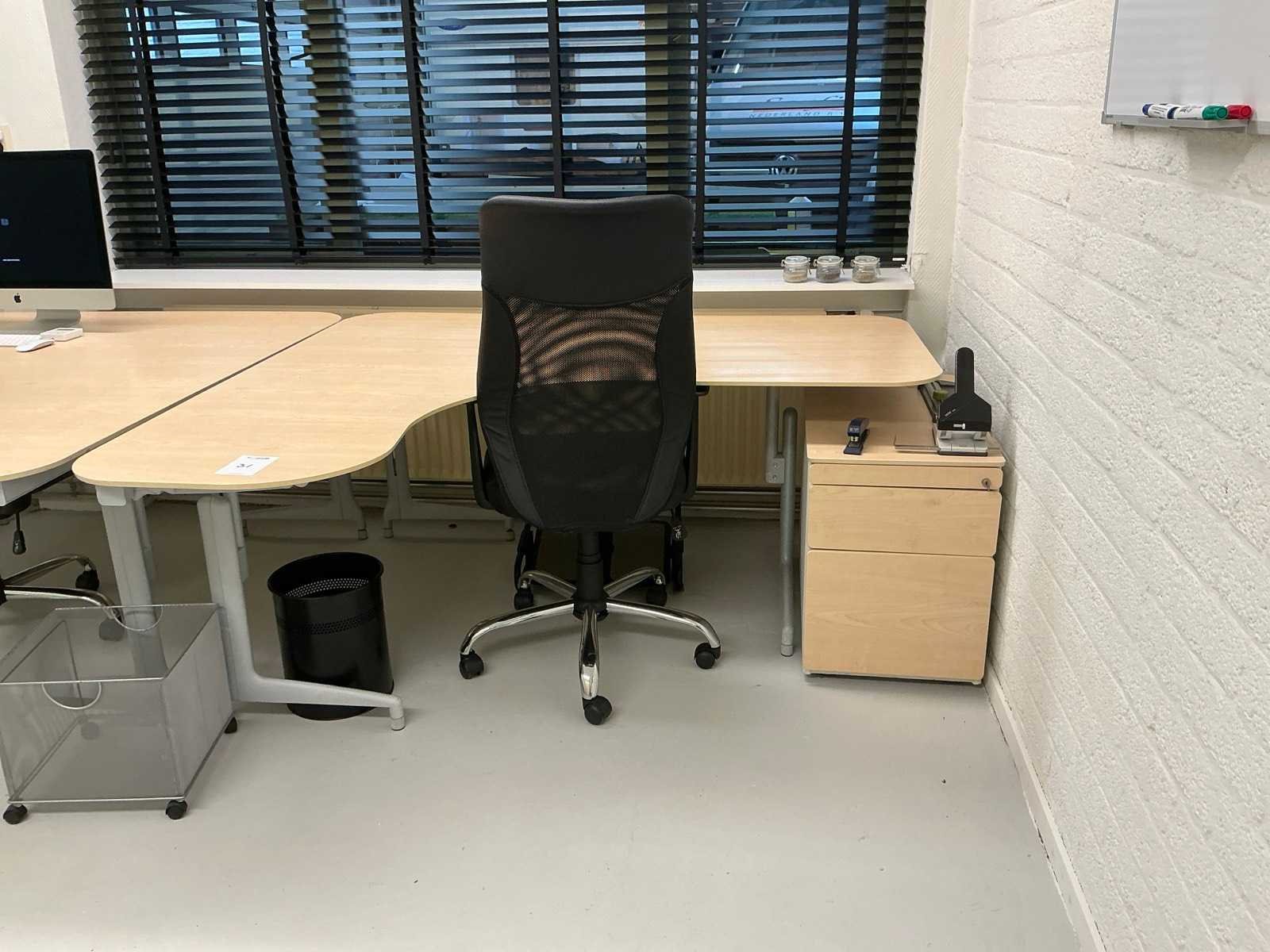 2x hoekbureau bladafmeting 170x160cm; 2x ladenblok; 2x bureaustoel; 2x archiefkast 100x38x201cm; 1x kast 74x38x201cm; IT apparatuur behoort niet tot het kavel