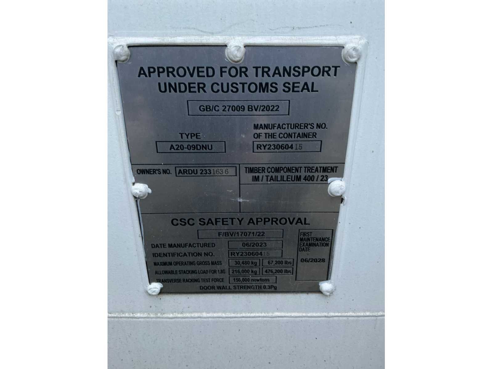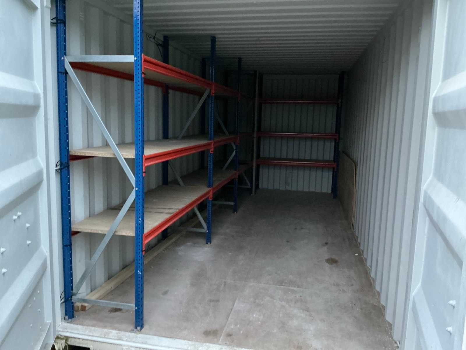 Inclusief inhoud 4 secties legbordstelling. Afmeting per sectie: 1x 240 cm hoog, 185 cm lang, 60 cm diep, 3x 240 cm 150 cm lang, 60 cm diep, 3 legborden per sectie, 12 totaal Type: A20-09DNU Bouwjaar: 2023 Lengte (ft): 20