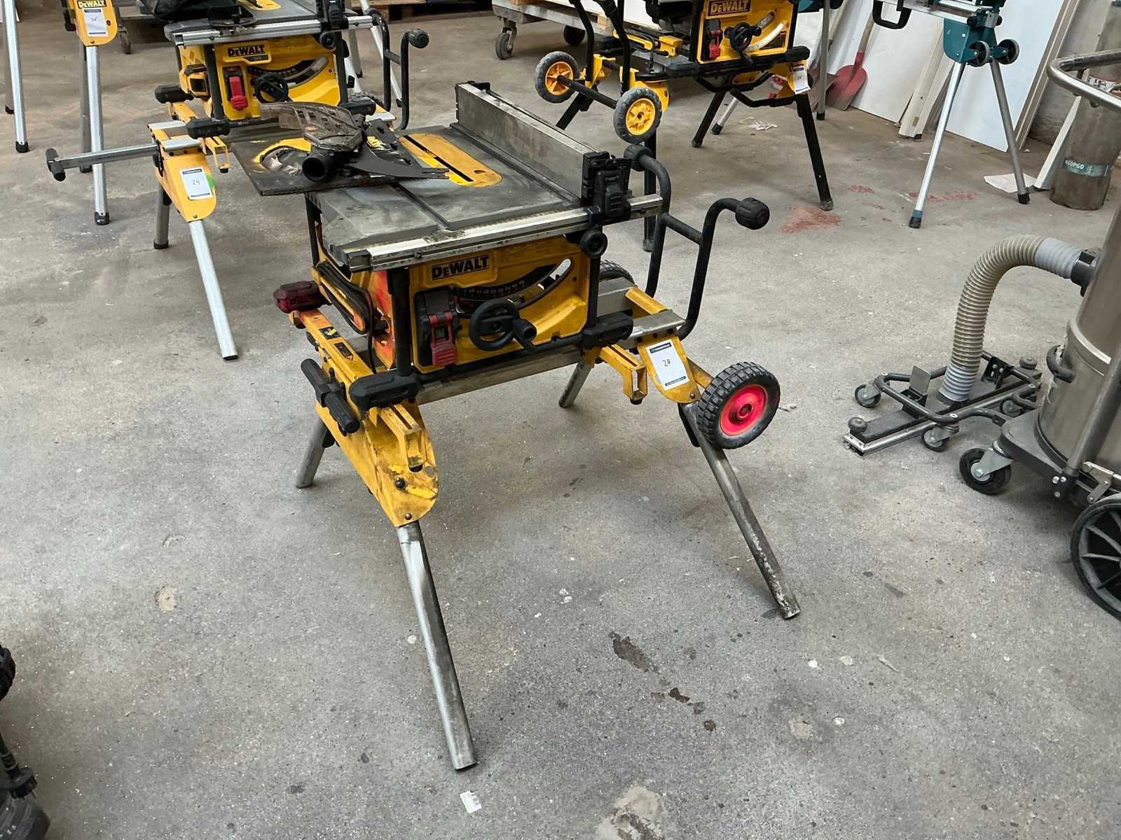 Voorzien van DeWalt DWE74911-XJ verrijdbaar en inklapbaar onderstel; let op, deze zaag heeft roetschade, werkt echter goed. Merk: DeWalt Type: DWE7485-QS Bouwjaar: 2021 Spanning: 230