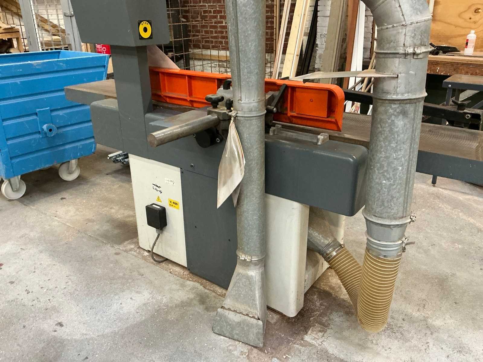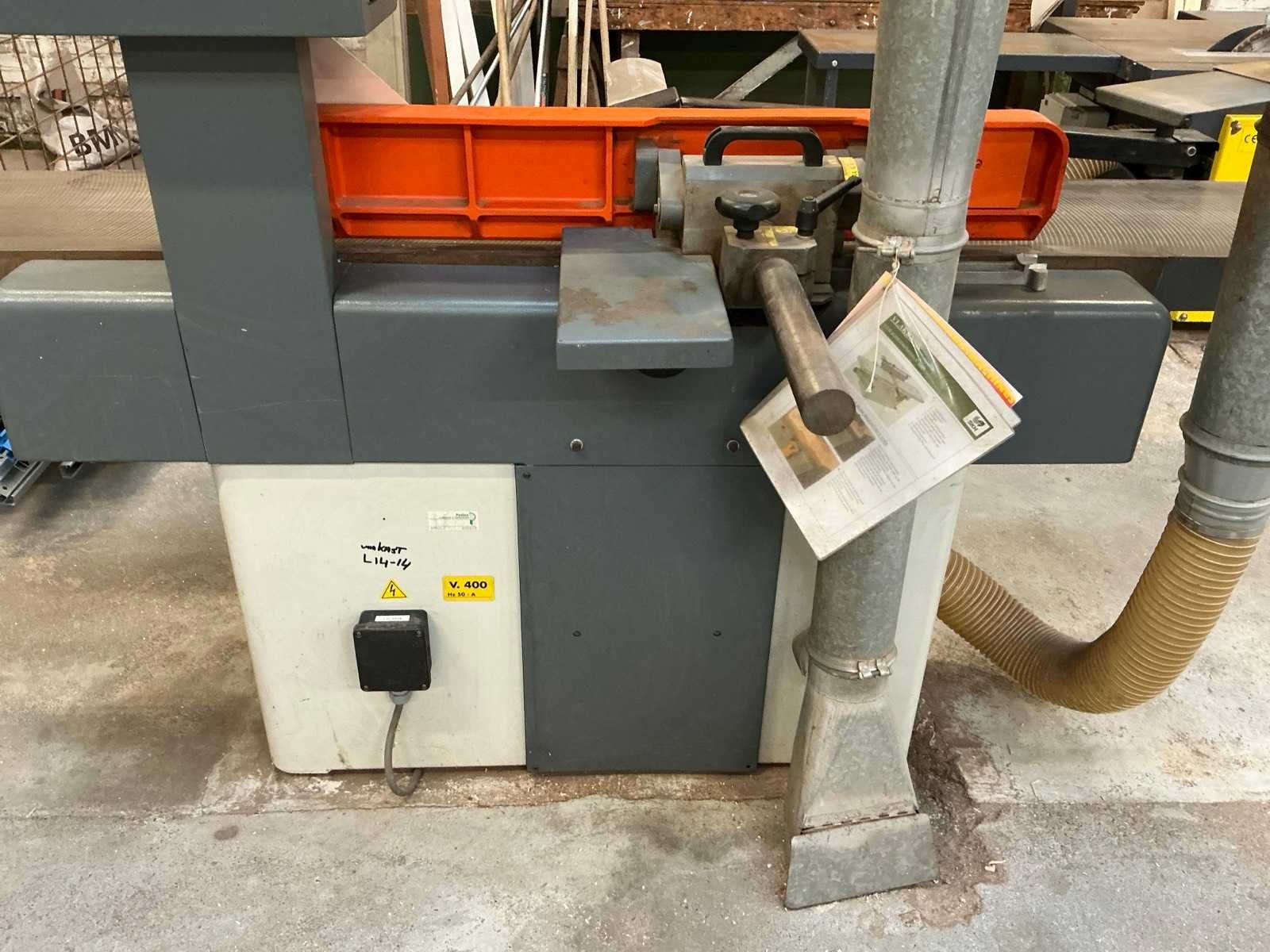Exclusief afzuigbuis, alleen de flexibele slang. Merk: CMC Type: RP 400 Werkbreedte: 400mm Tafel afmeting l: 2520mm Tafel afmeting b: 400mm Aansluiting: 380V Afmeting h: 1500mm