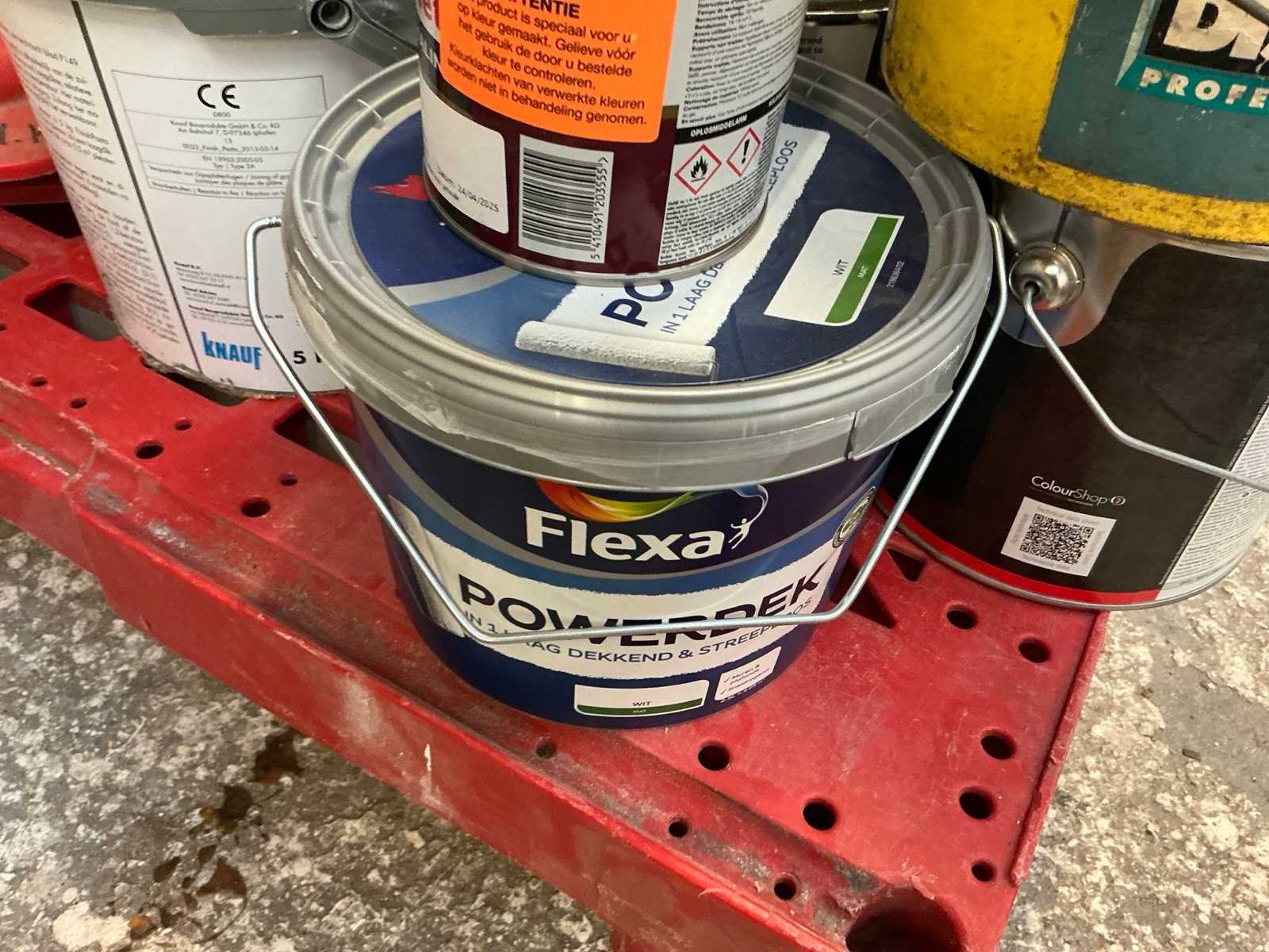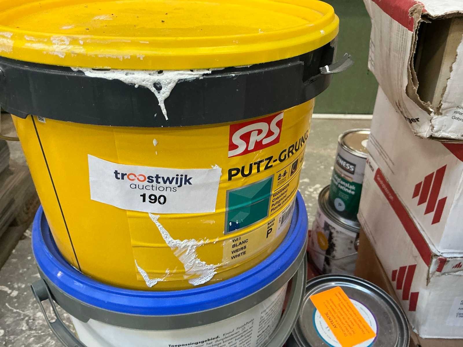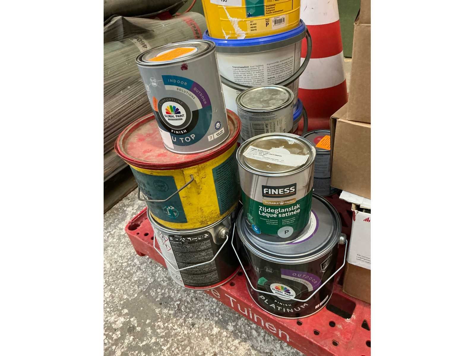 Partij verf, lijm en stenen
