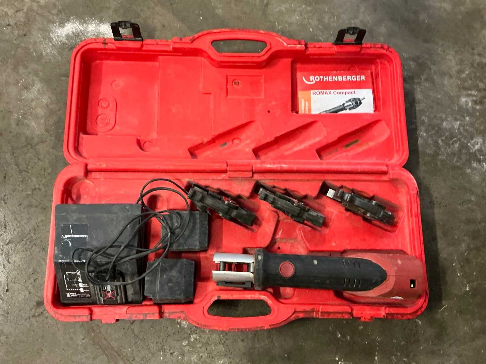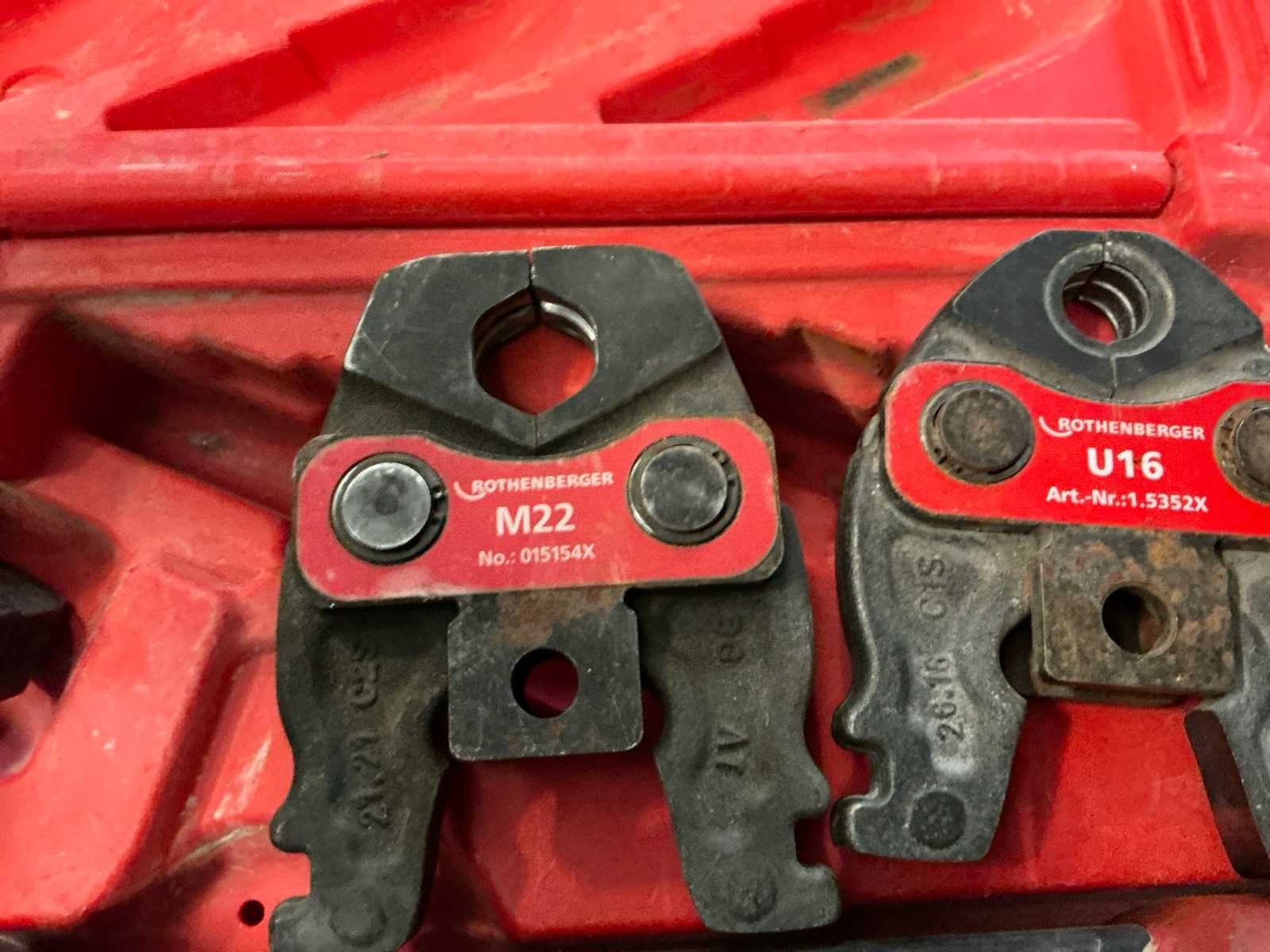 Inclusief 3 persbekken Merk: Rothenberger Type: Romax Compact Accu lader: true Met koffer: true Aantal accu's: 2