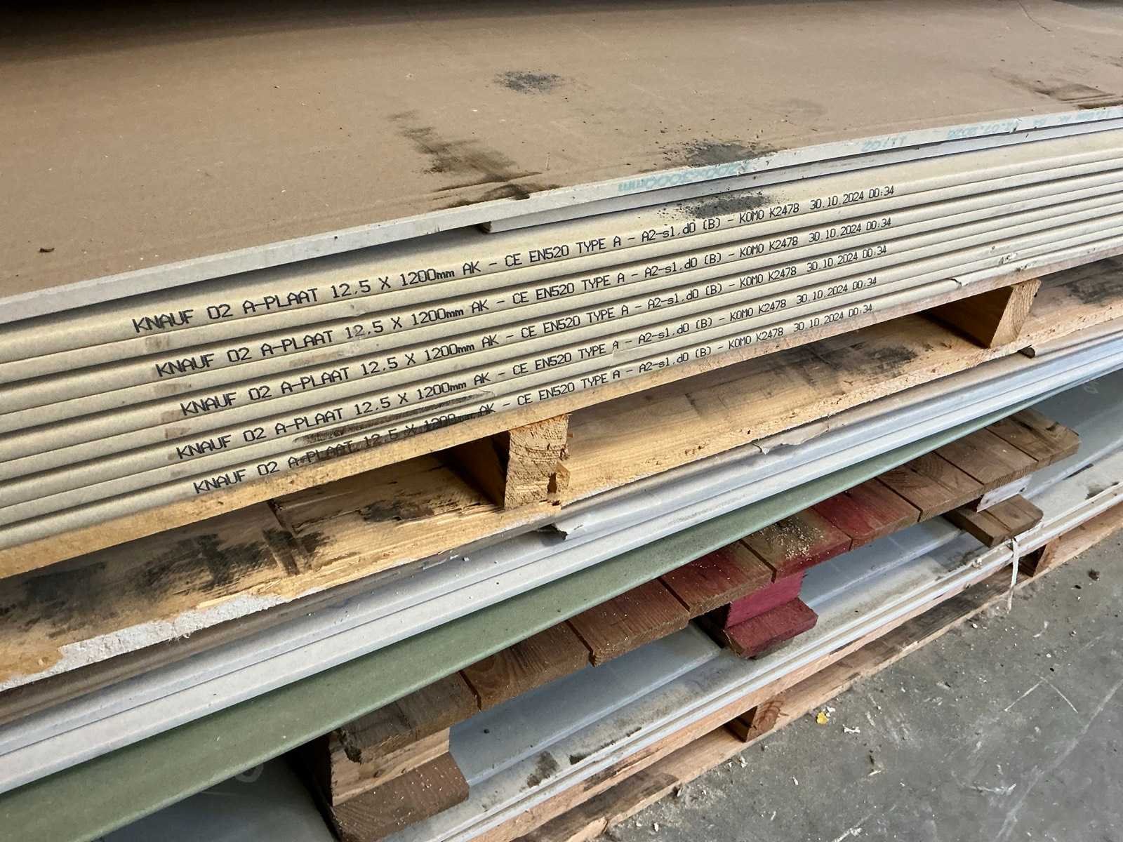 En diverse gipsplaten in verschillende maten, waaronder 24x met hoekstuk Merk: Knauf Lengte: 300cm Breedte: 120cm