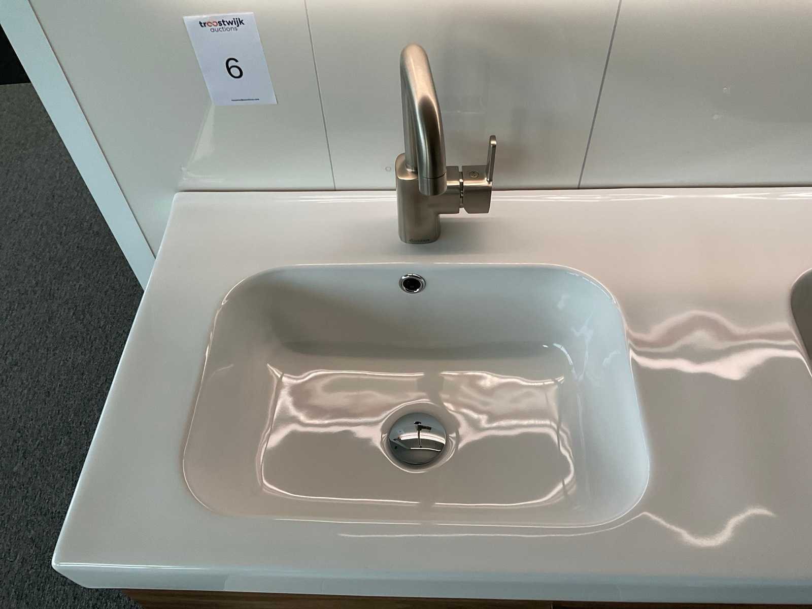 Formaat: Spiegel met verlichting 120x80cm Merk: Dansani Model: Luna Hoogte: 71cm Lengte: 122cm Breedte: 45cm Materiaal: Keramiek Kleur: Bruin Eiken Kraan: Damixa Pine Spiegelkast: true Lades: 2 Softclose: true