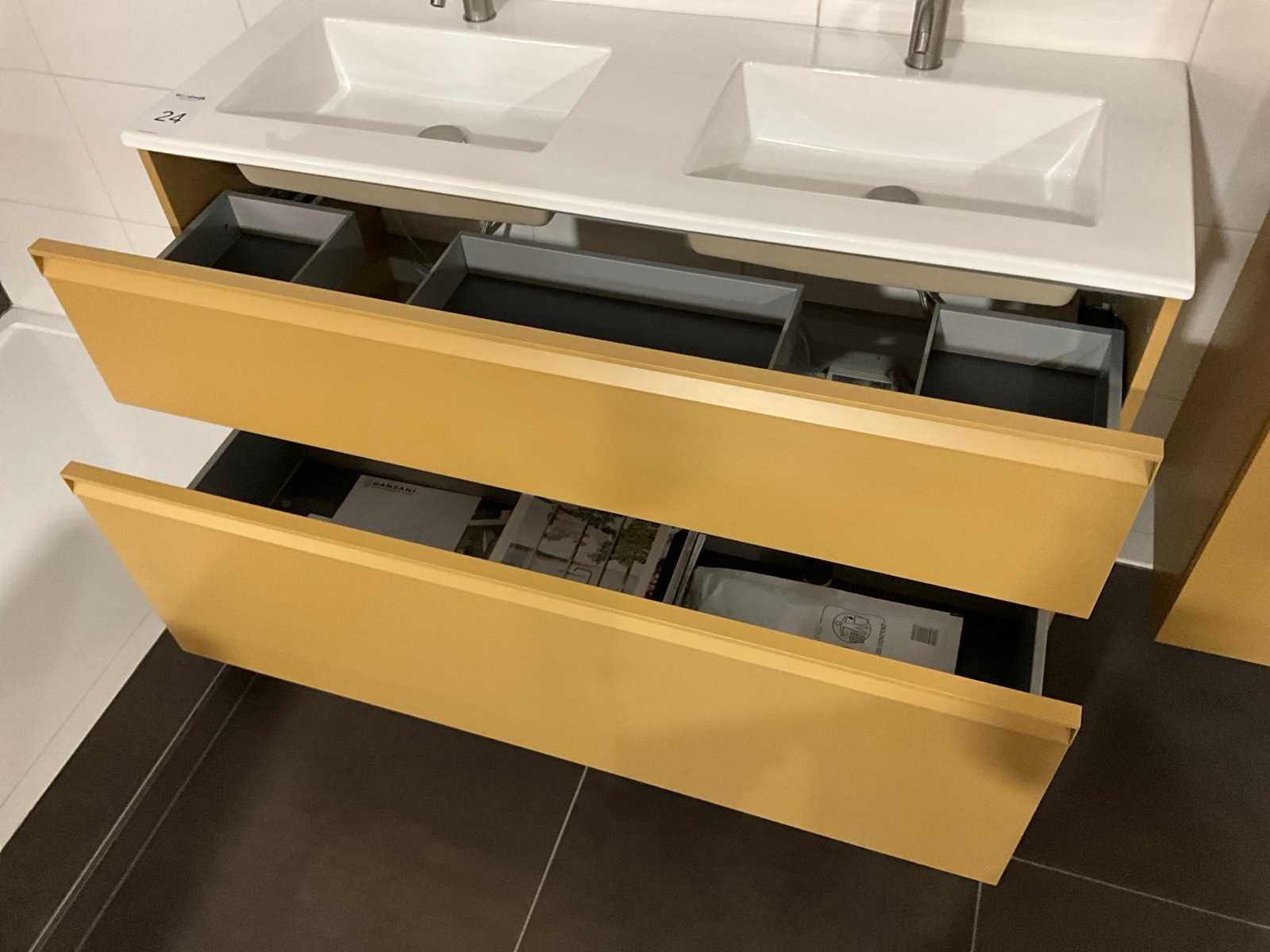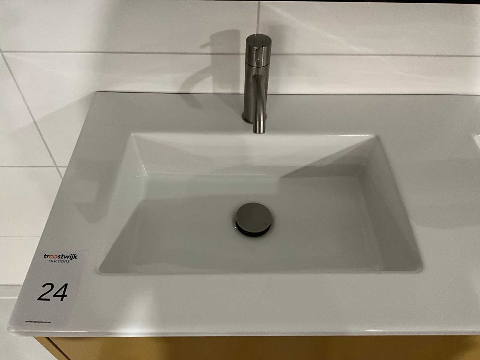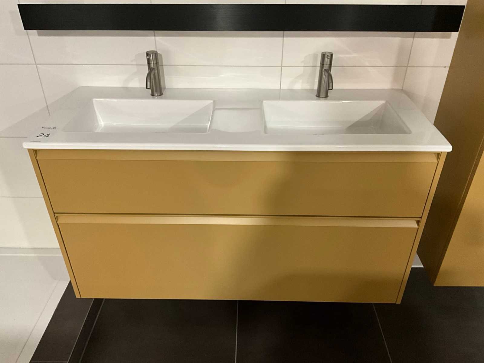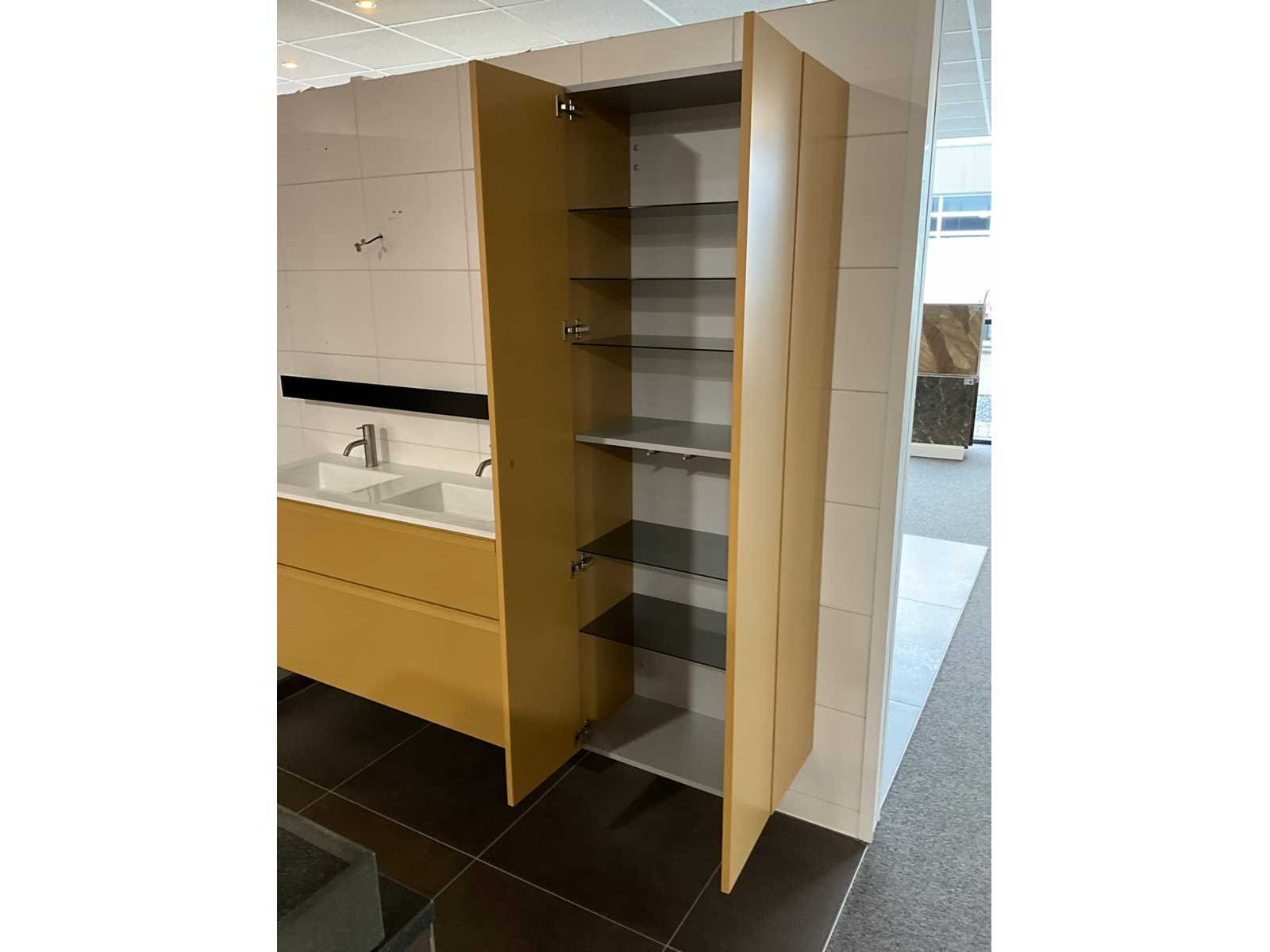 Afmeting hoge kast: H176xB60xD35cm, push to open, softclose; Inclusief 2x Vola wastafelmengkraan geborsteld RVS Merk: Dansani Lengte: 120cm Breedte: 44cm Hoogte: 64cm