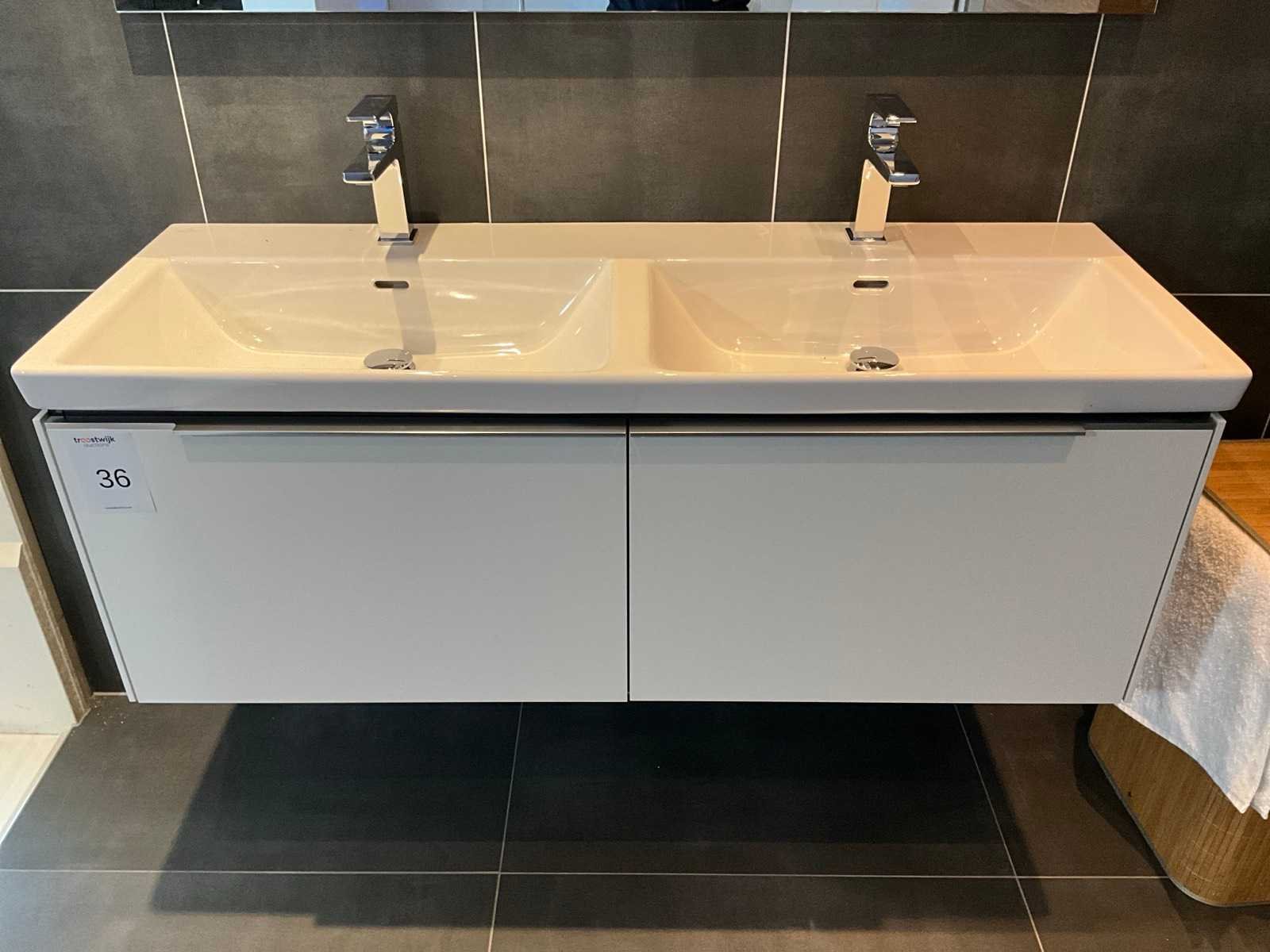 Merk: Villeroy & Boch Model: Subway 3.0 Hoogte: 42cm Lengte: 130cm Breedte: 46cm Kraan: 2x Hansgrohe Metropol mengkraan Wastafel: Villeroy & Boch Subway 3.0 Spiegel: Nee Spiegel met verlichting: Nee Lades: 2 Softclose: true