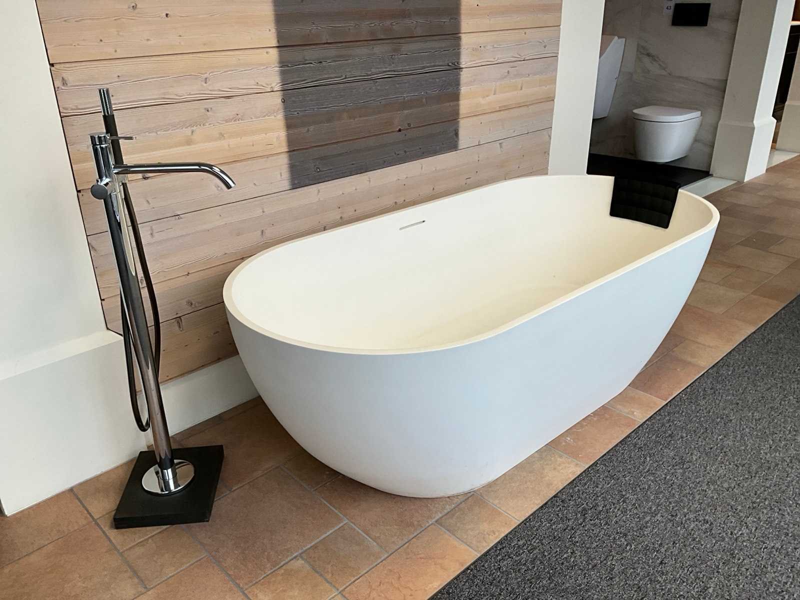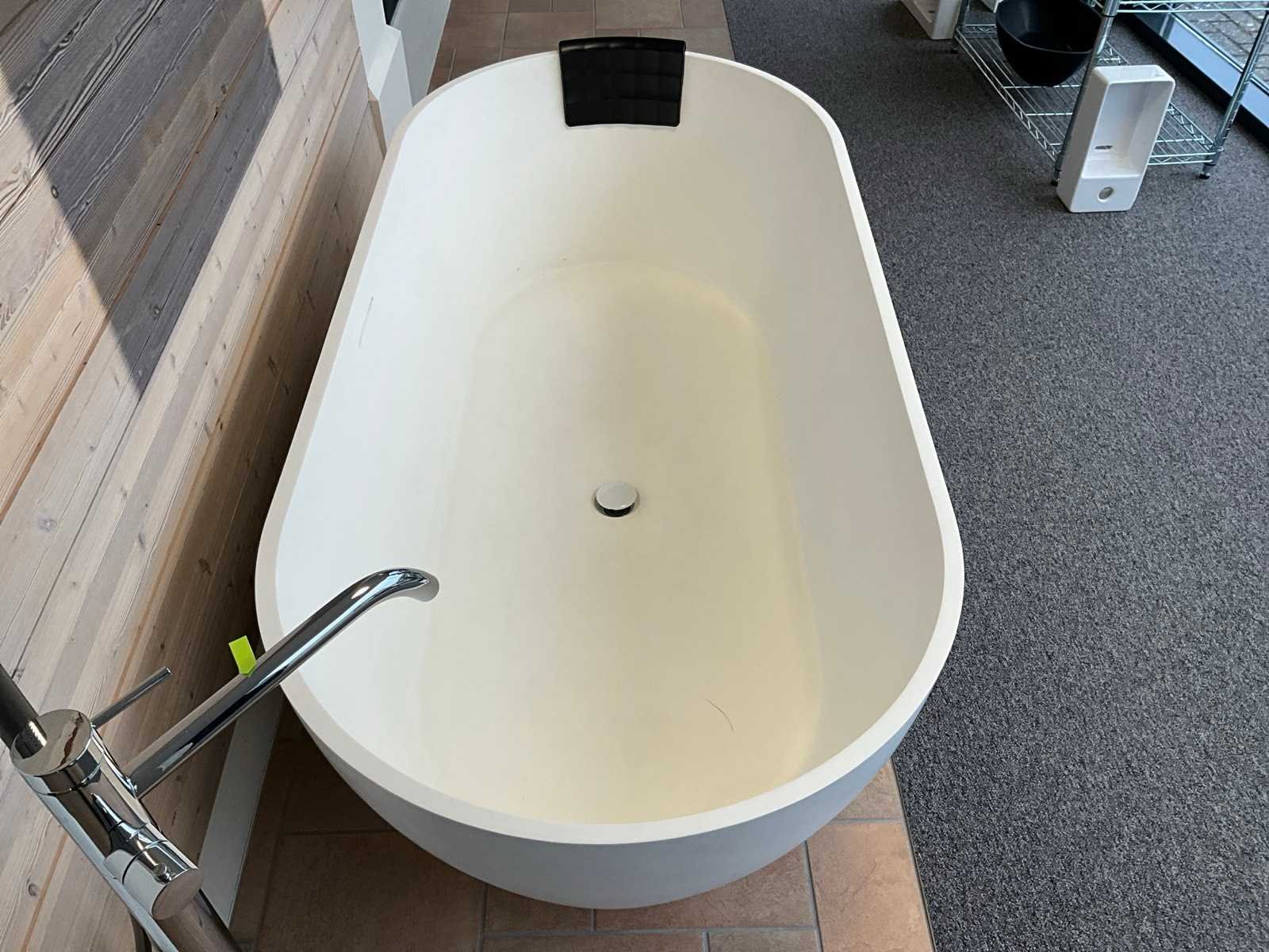 Inclusief: Hot Bath Buddy badthermostaat staand Merk: Riho Model: Bilbao Kleur: Mat Wit Gewicht: 120kg Lengte: 170cm Breedte: 80cm Hoogte: 56cm Materiaal: Solid Surface