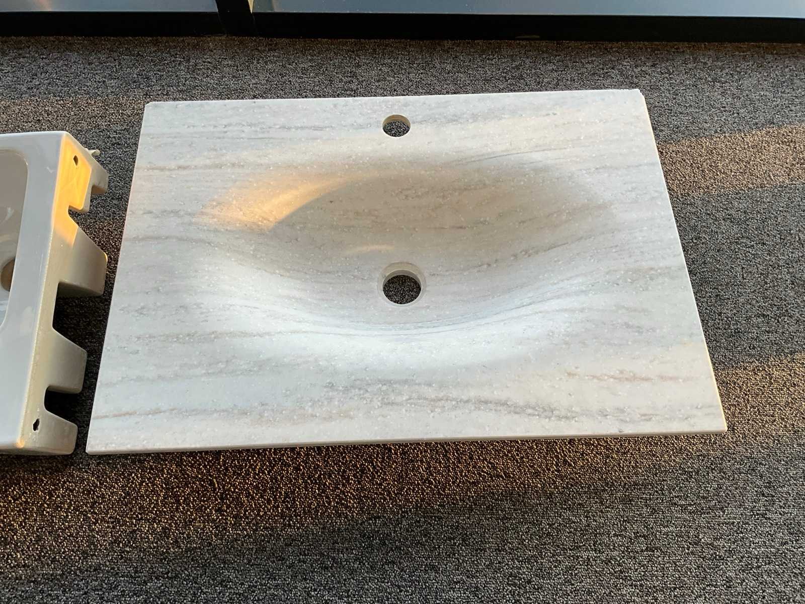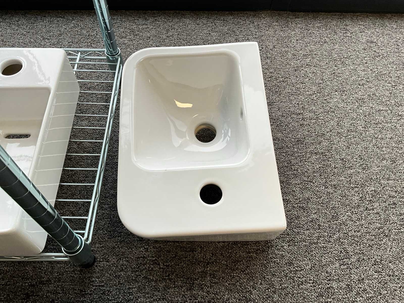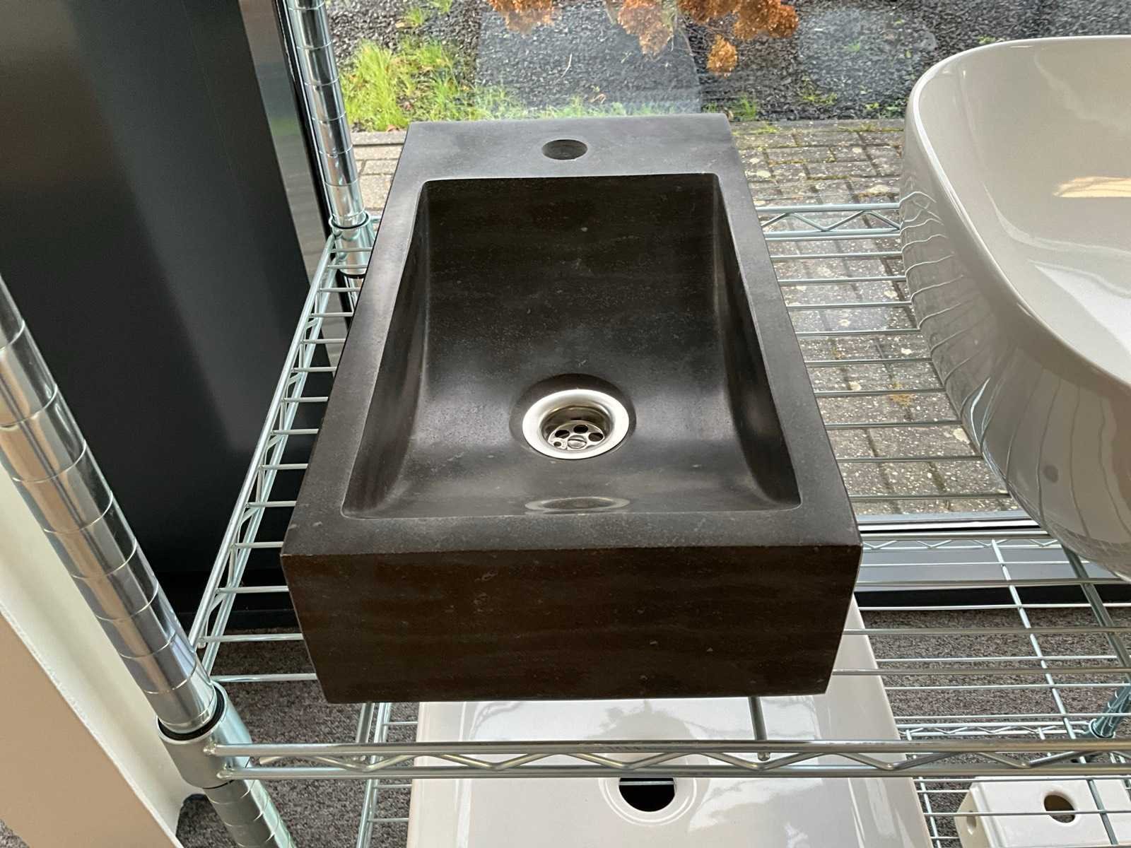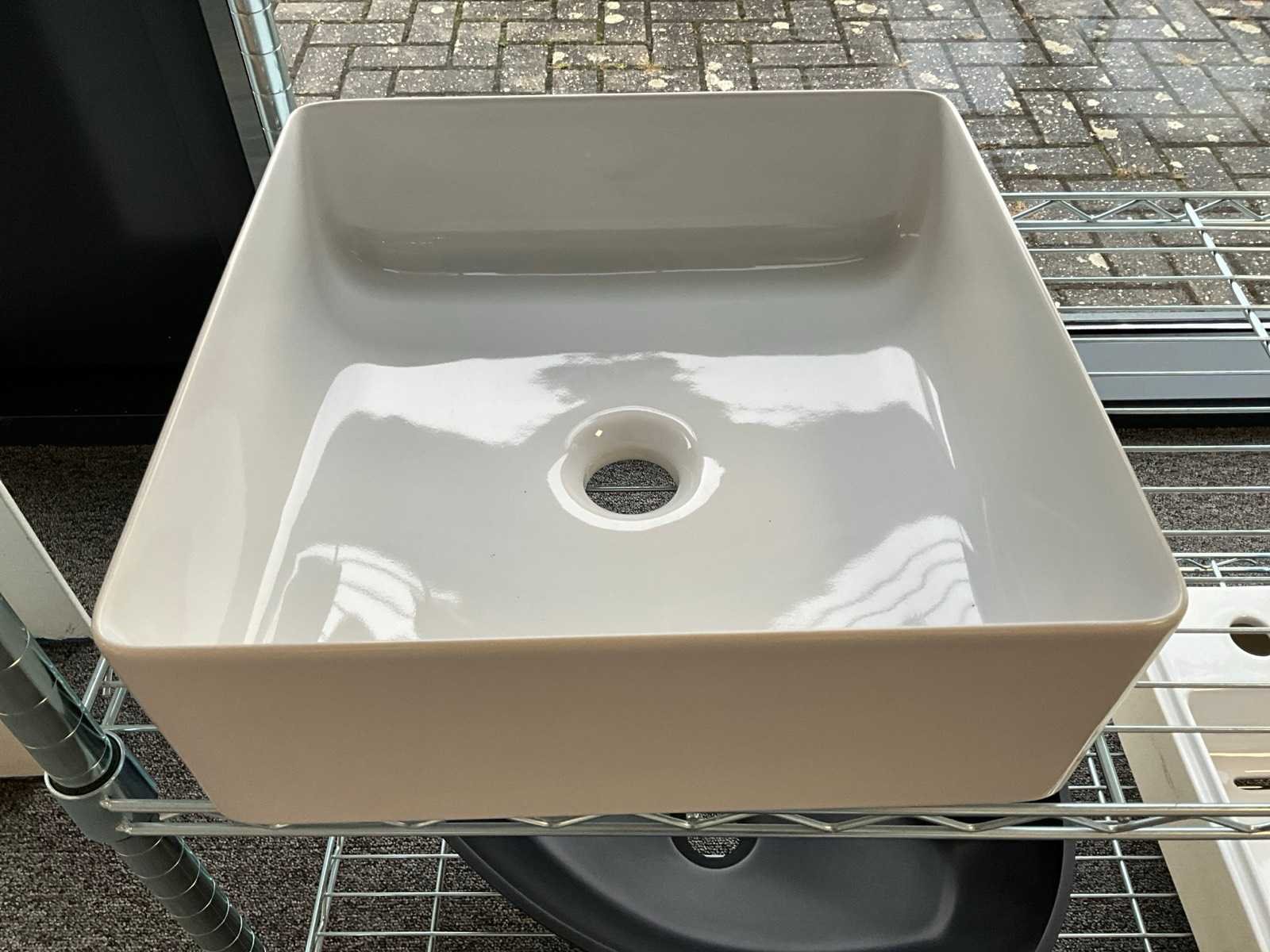 Bestaande uit onder andere Duravit en Laufen fonteinen; diverse afmetingen, waaronder: 35x60cm, 40cm diameter, 36x36cm, etc; In stelling: H185xB90xD45cm