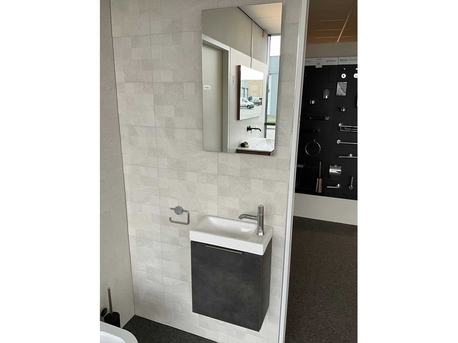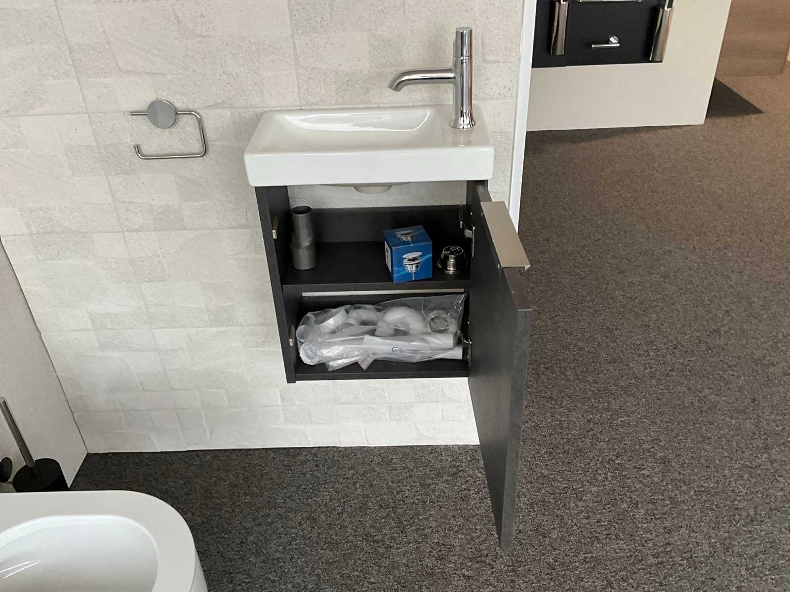 Bestaande uit: Primabad fontein 40cm, Primabad onderkast rechts leather grey 40cm, Kludi Terralux fonteinkraan, Primabad spiegel met verlichting 40x70cm, Luca Futuro Flush wandcloset, toiletborstelhouder en toiletrolhouder Merk: Primabad Kleur: Leather Grey Lengte: 122cm Breedte: 40cm Hoogte: 44cm