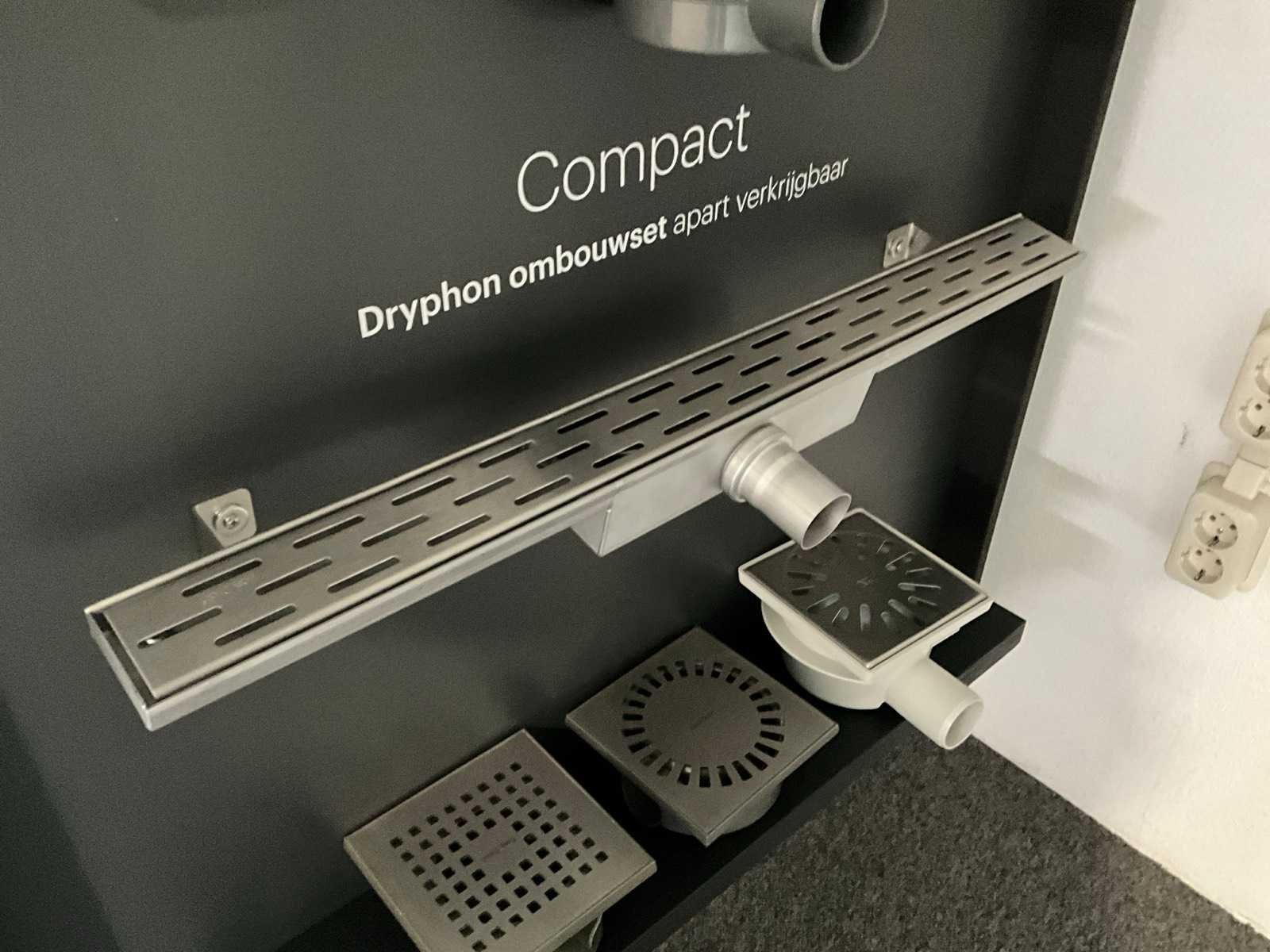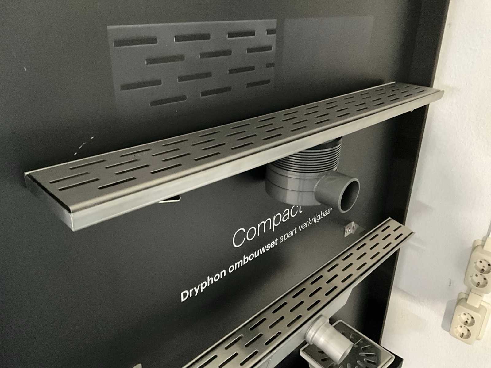 Wandbord met diverse easy drain drains en doucheputten