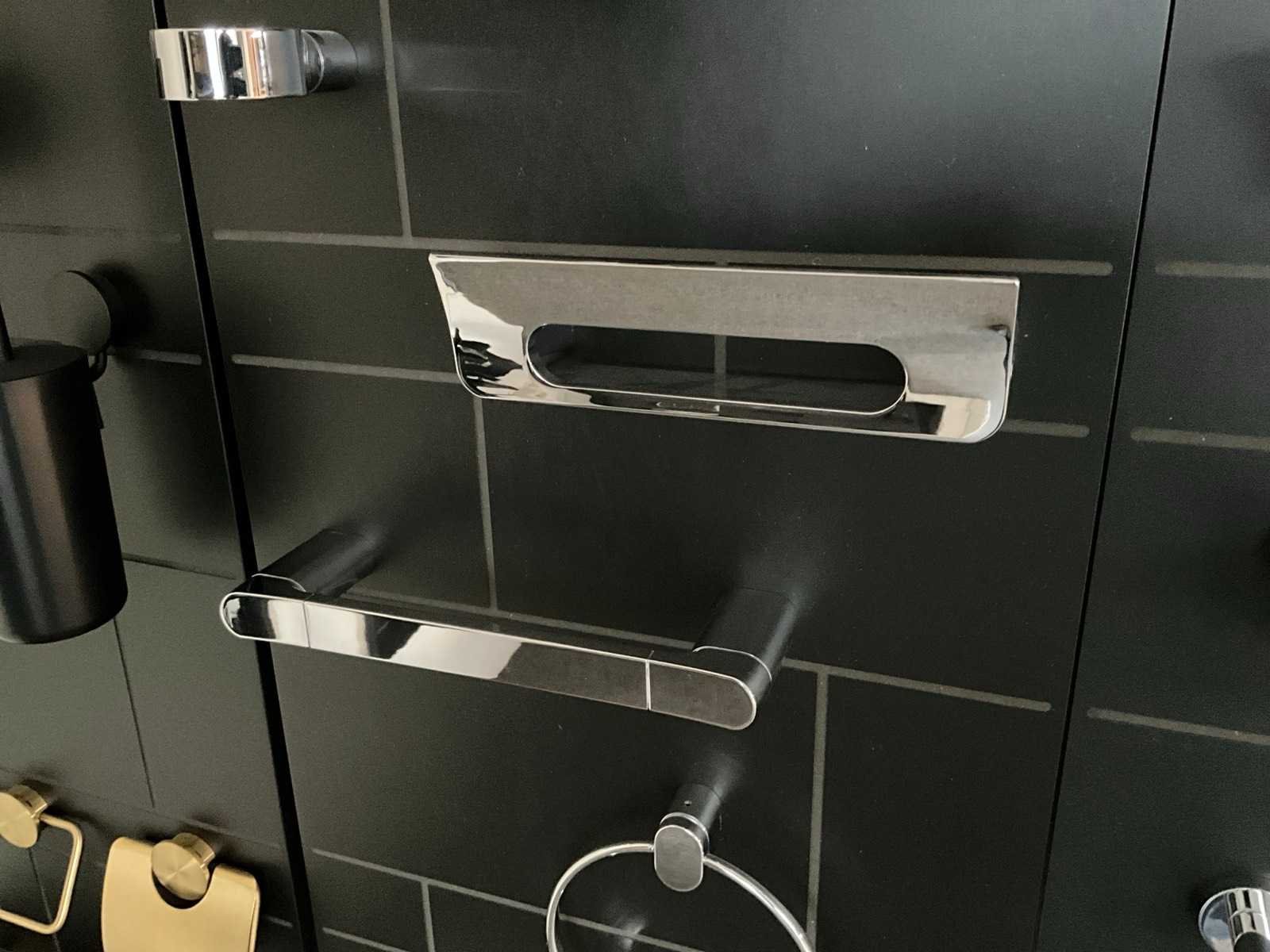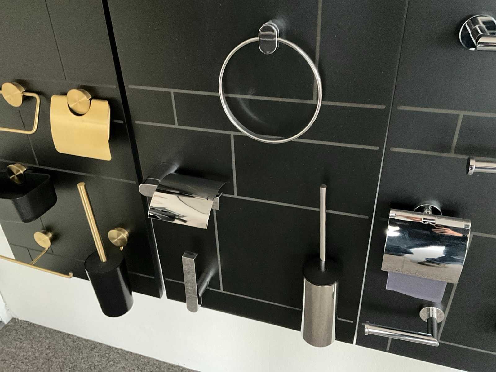 Accessoires bestaan onder andere uit: handdoekhaken, zeephouder, toiletrolhouders, toiletborstelhouder, etc Breedte: 50cm Hoogte: 170cm
