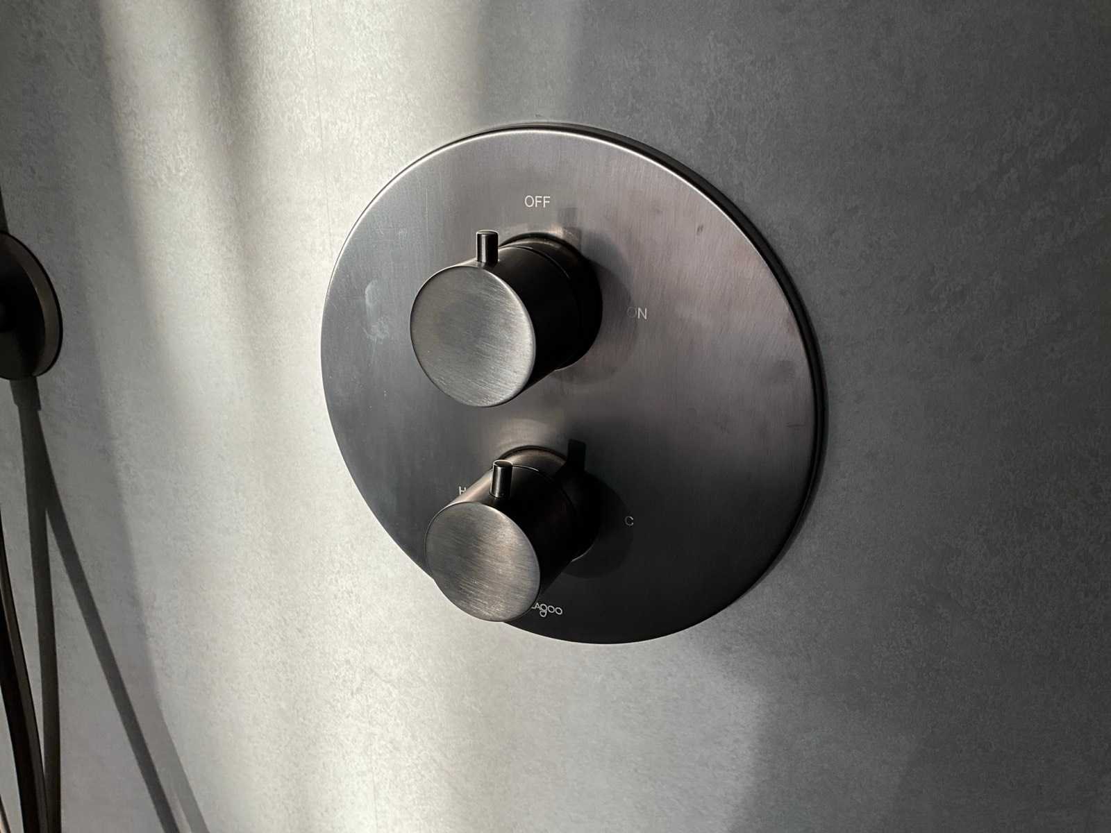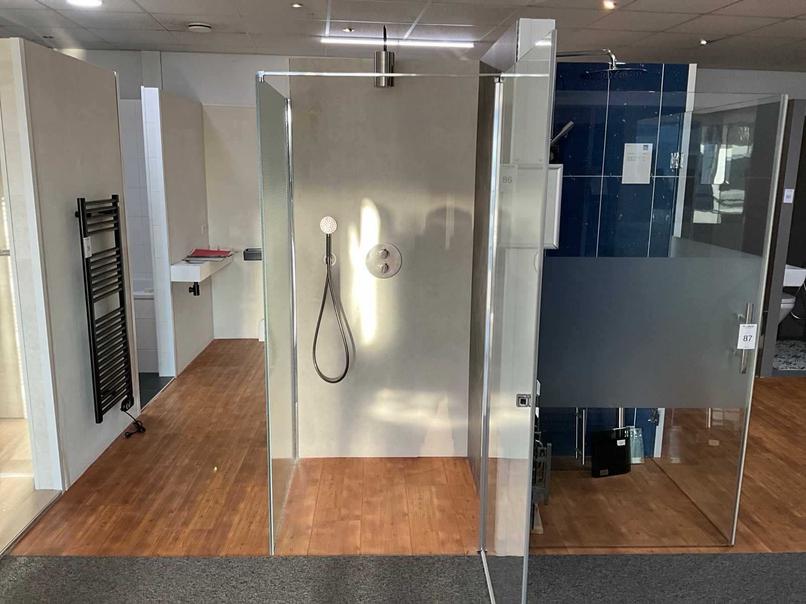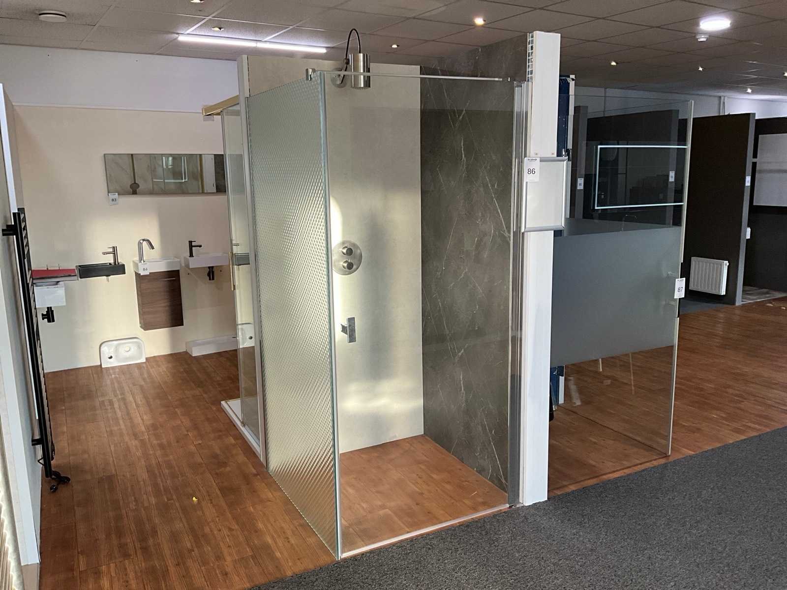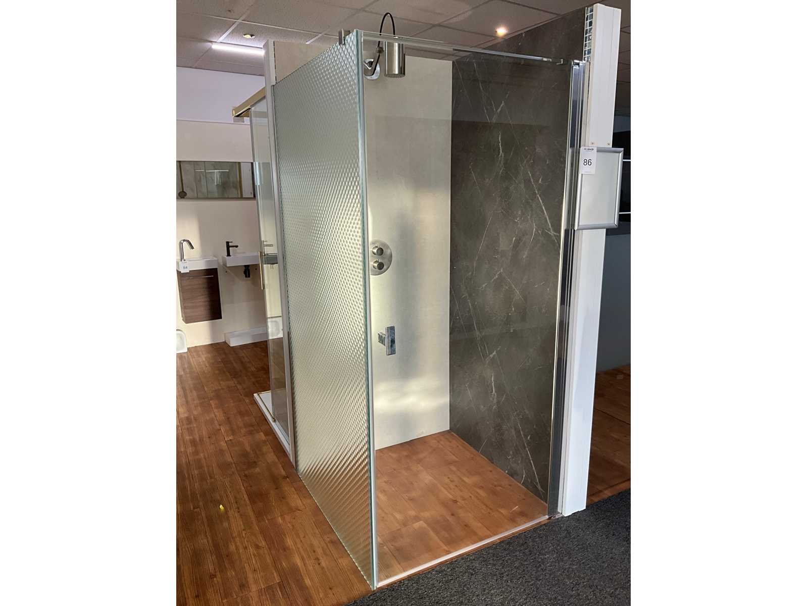 Voorzien van 1x deur en 1x vaste wand; inclusief handdouche, hoofddouche en thermostaat (dummies) Merk: Novellini Model: Young 2.0 Lengte: 98cm Breedte: 98cm Hoogte: 200cm