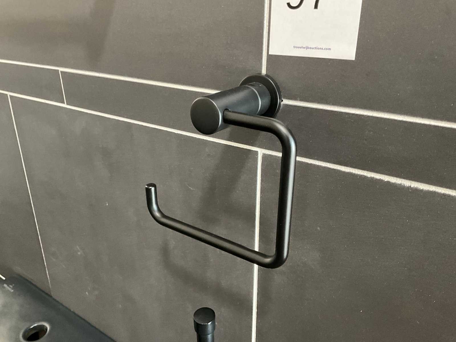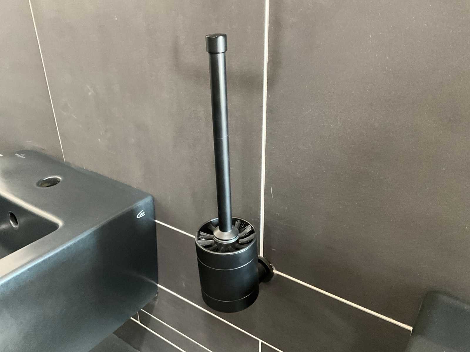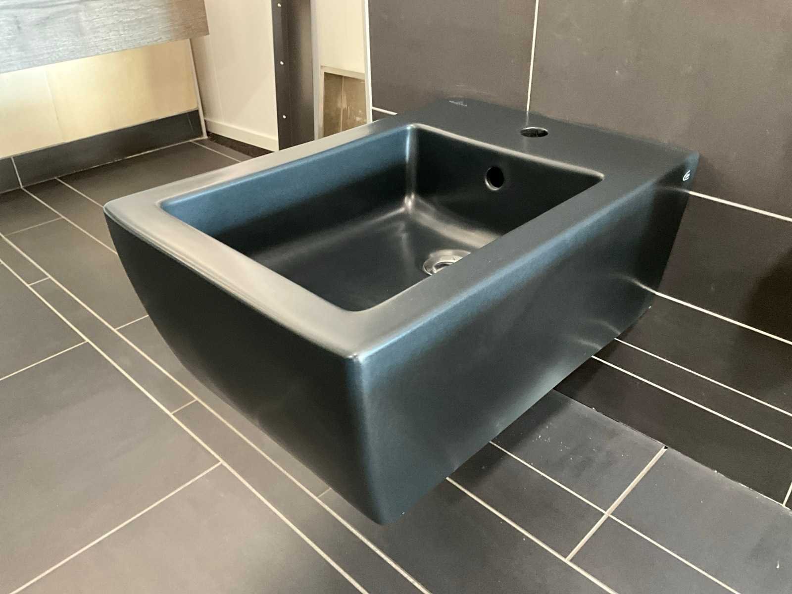 Bestaande uit: Villeroy & Boch Subway 2.0 wandcloset, Villeroy & Boch Memento 2.0 wandbidet, Damixa handdoekhouder 50cm, Damixa toiletrolhouder en Damixa toiletborstelgarnituur Merk: Villeroy & Boch Model: Subway 2.0 / Memento 2.0 Kleur: Zwart Materiaal: Keramiek