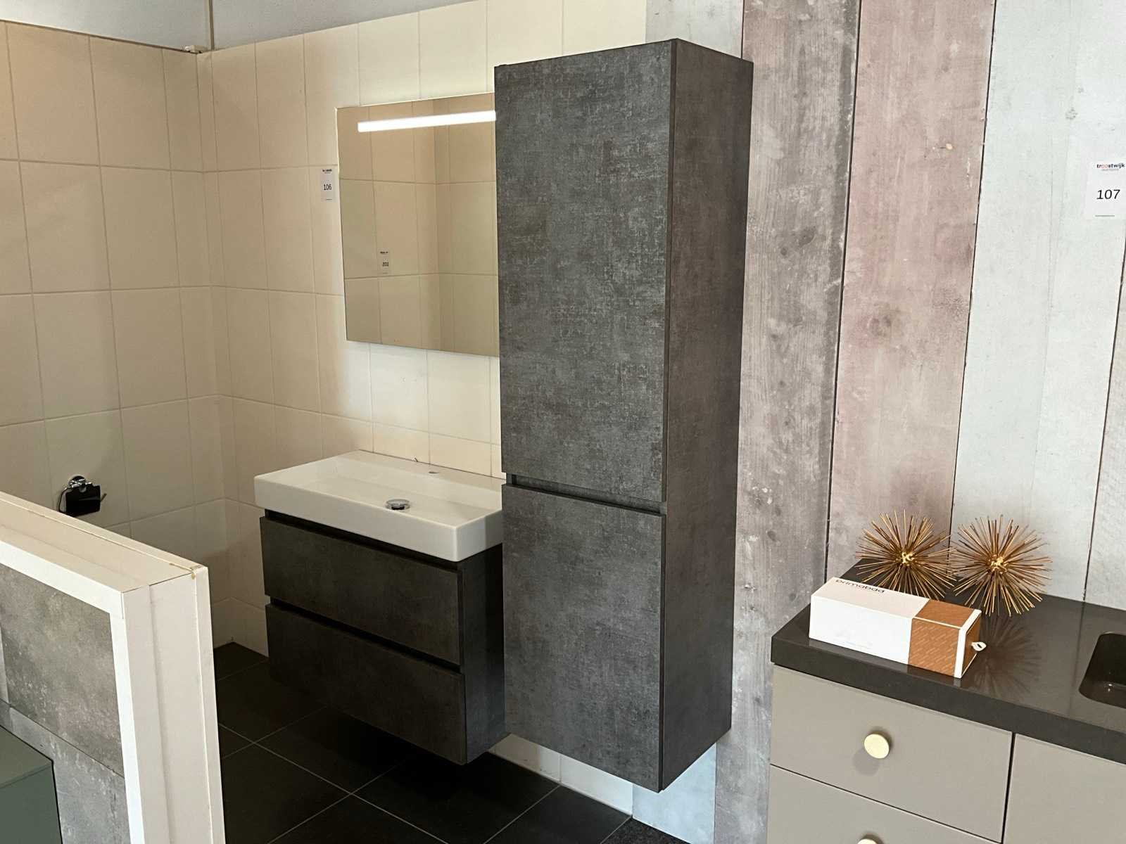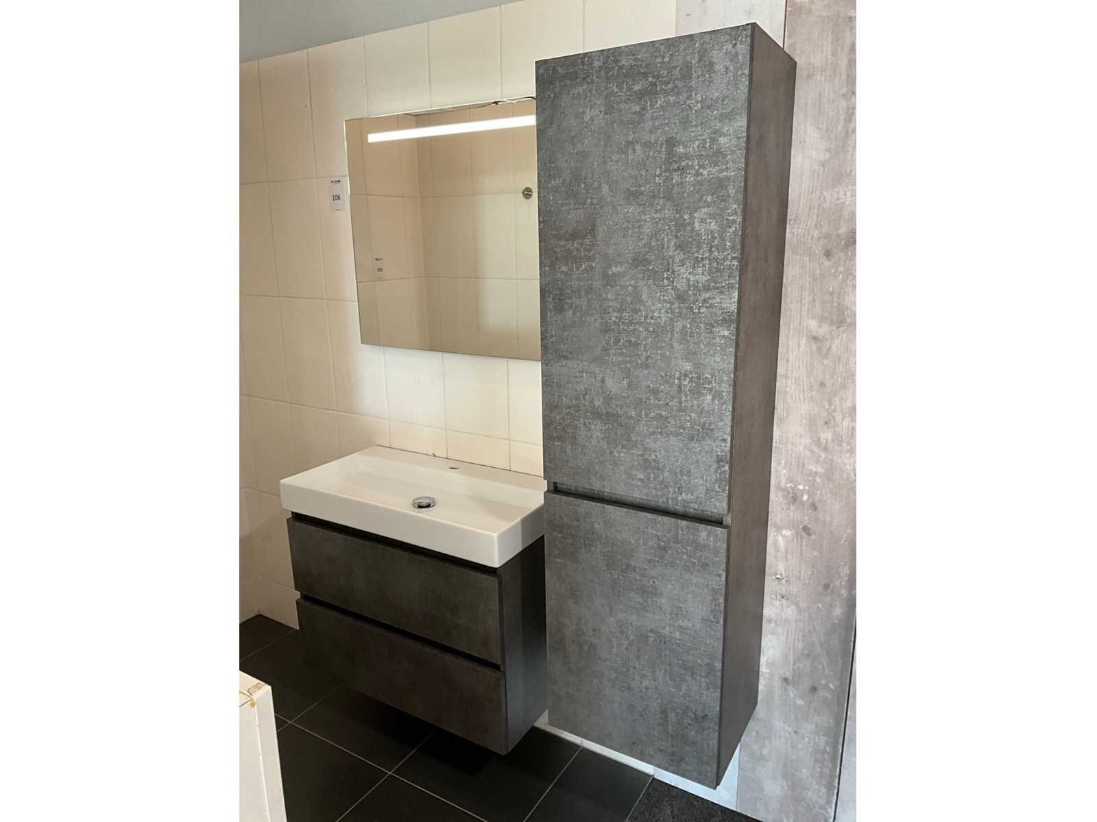 Formaat LED spiegel: 80x70cm, afmeting wastafel 80x40cm, afmeting hoge kast 160x45cm Merk: Primabad Model: Get Up Hoogte: 56cm Lengte: 80cm Breedte: 40cm Kleur: Met. Grey Kraan: Grohe wastafelmengkraan Spiegel met verlichting: Ja Lades: 2 Softclose: true