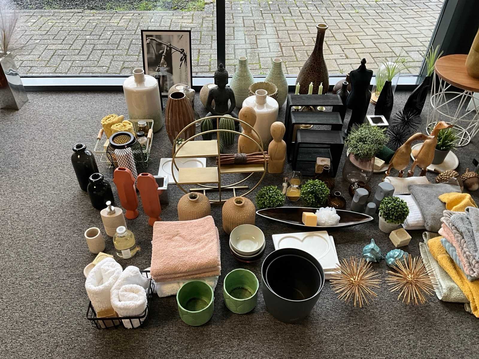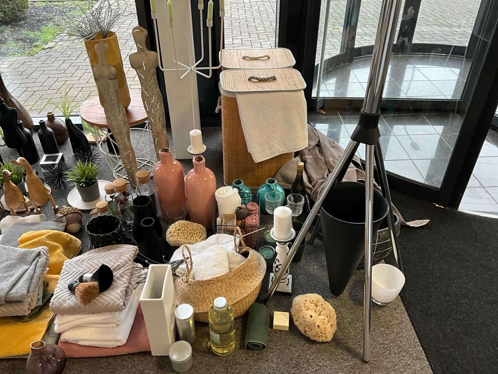 Bestaande uit onder andere: kapstok, bijzettafel, vazen, handdoeken, etc