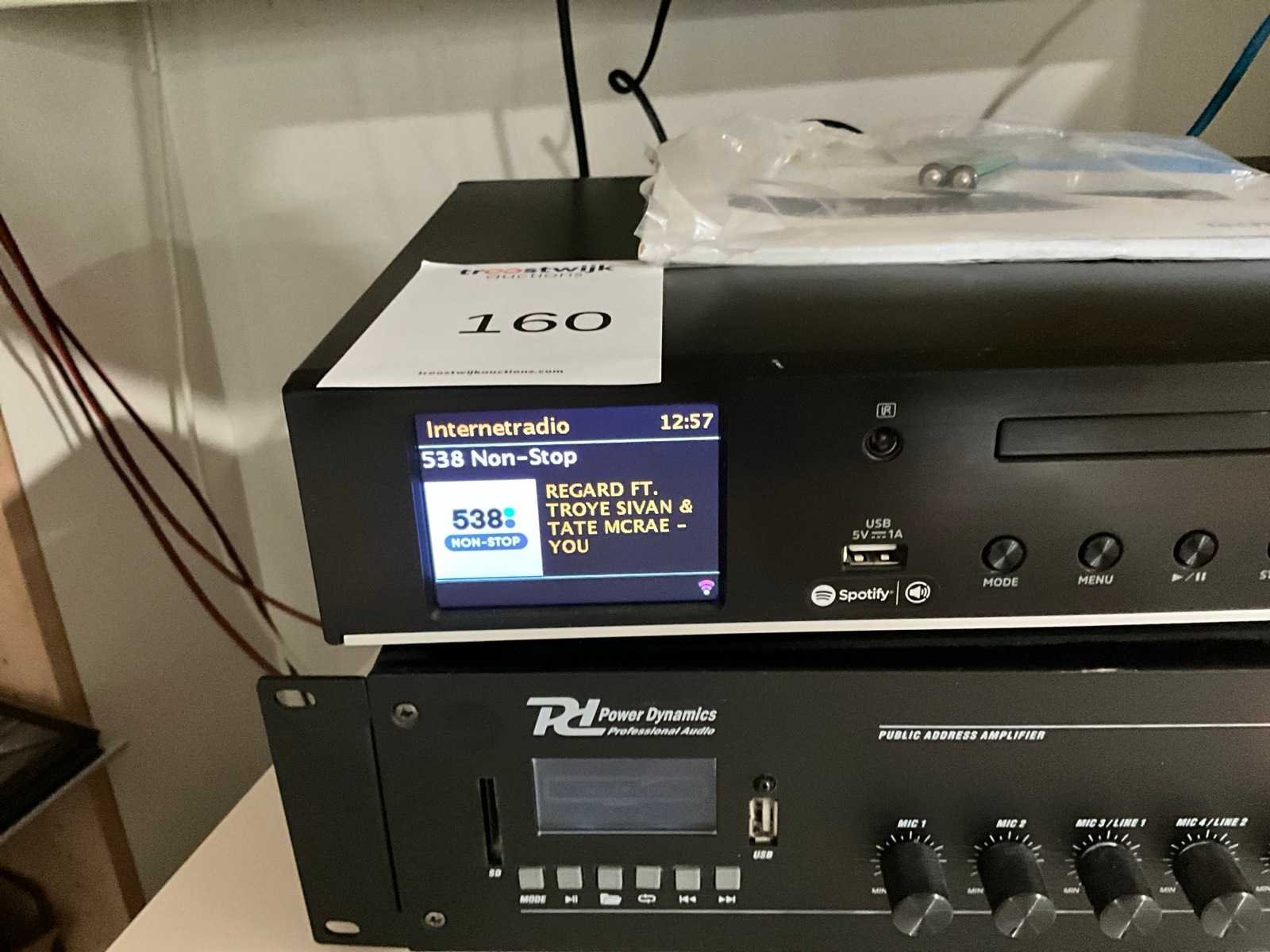 Inclusief Technisat Digitradio 143 CD digitale radio met afstandsbediening en 2x PowerDynamics speaker (hangt op circa 2,5 meter hoogte) Merk: PowerDynamics Type: PRM240 Aansluiting: 230V