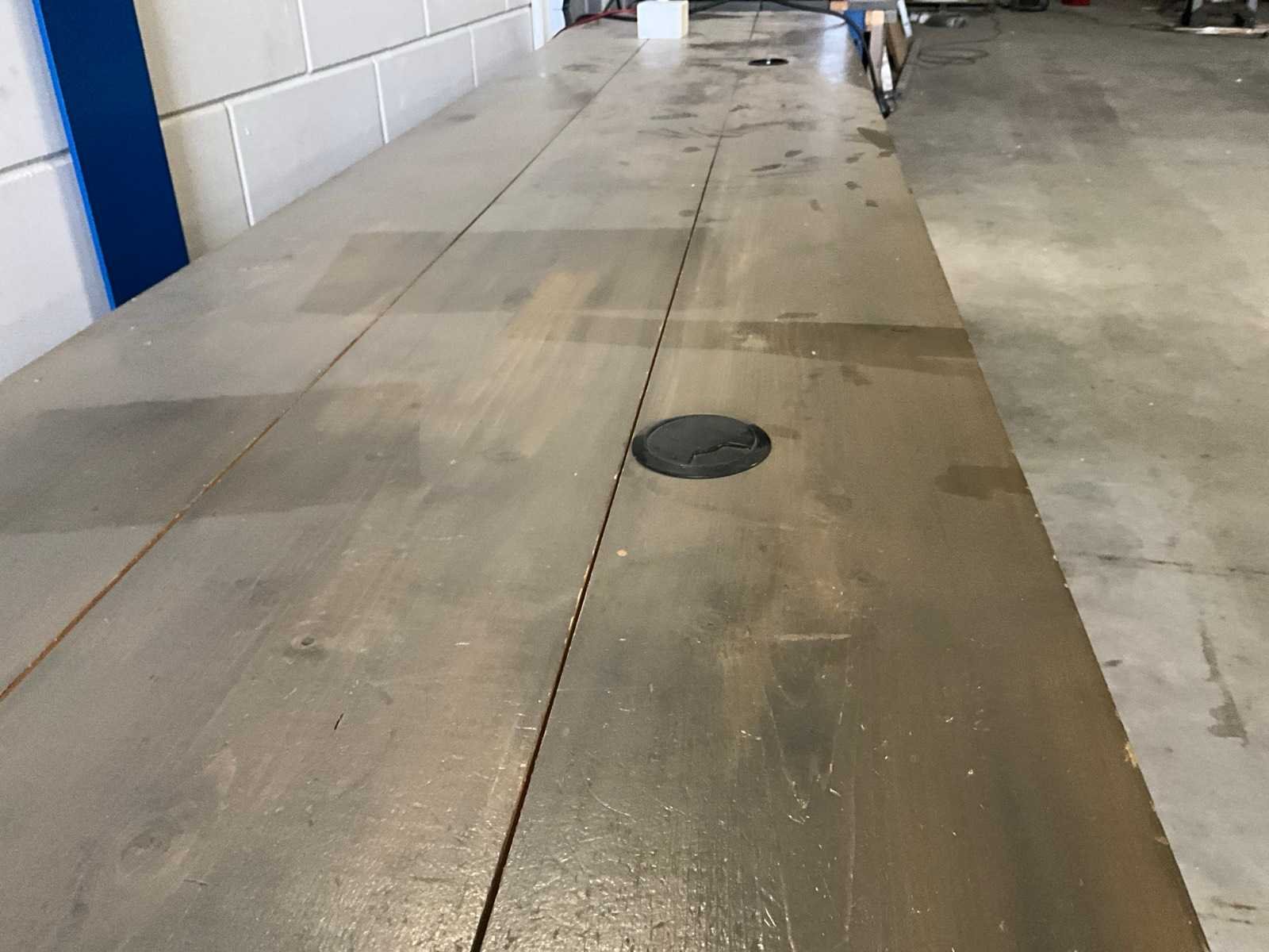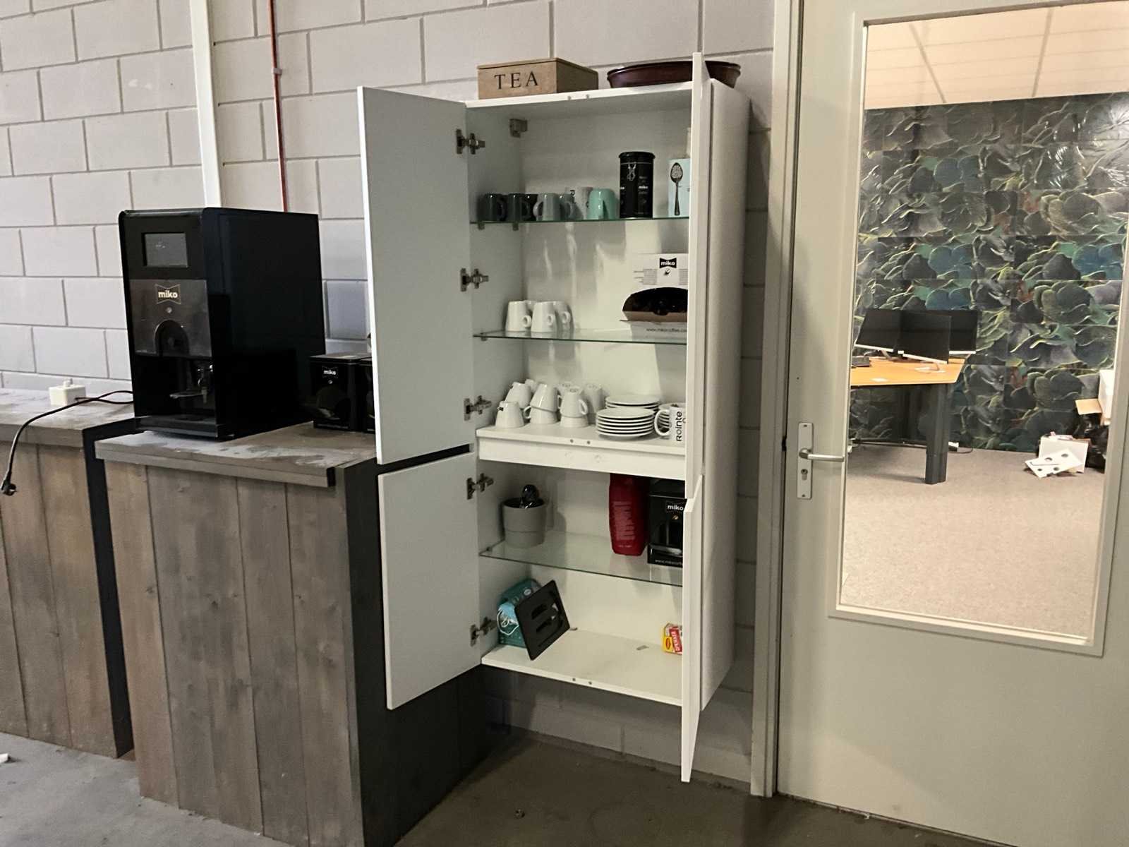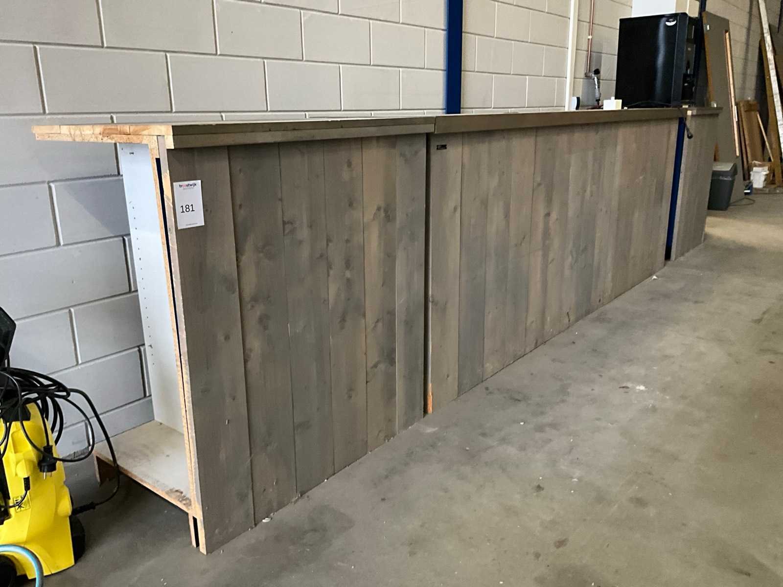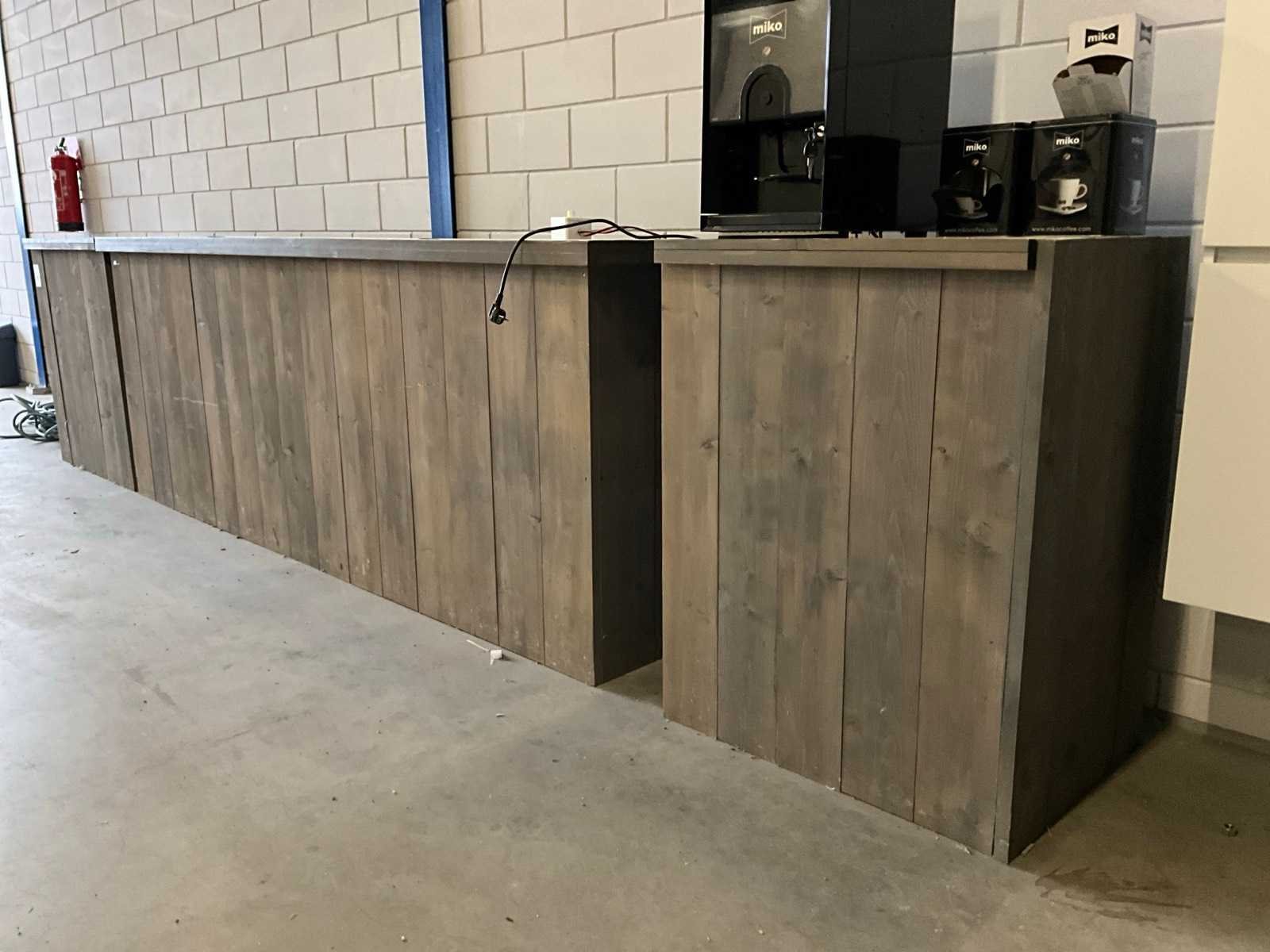 Bestaande uit 3 delen; voorzien van vierdeurs hangkast H170xB70xD35cm (zonder inhoud) Merk: Hoeve houtindustrie Totale afmeting L: 4800mm Totale afmeting Breedte: 660mm Totale afmeting Hoogte: 1100mm
