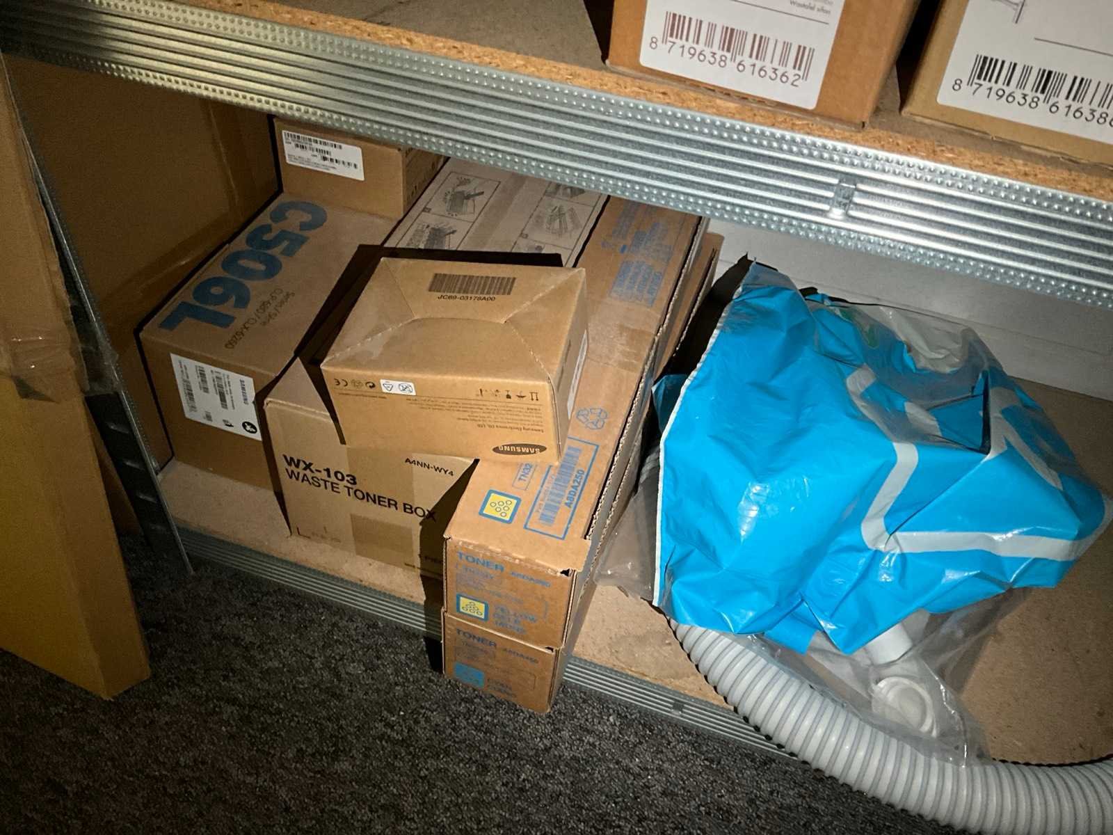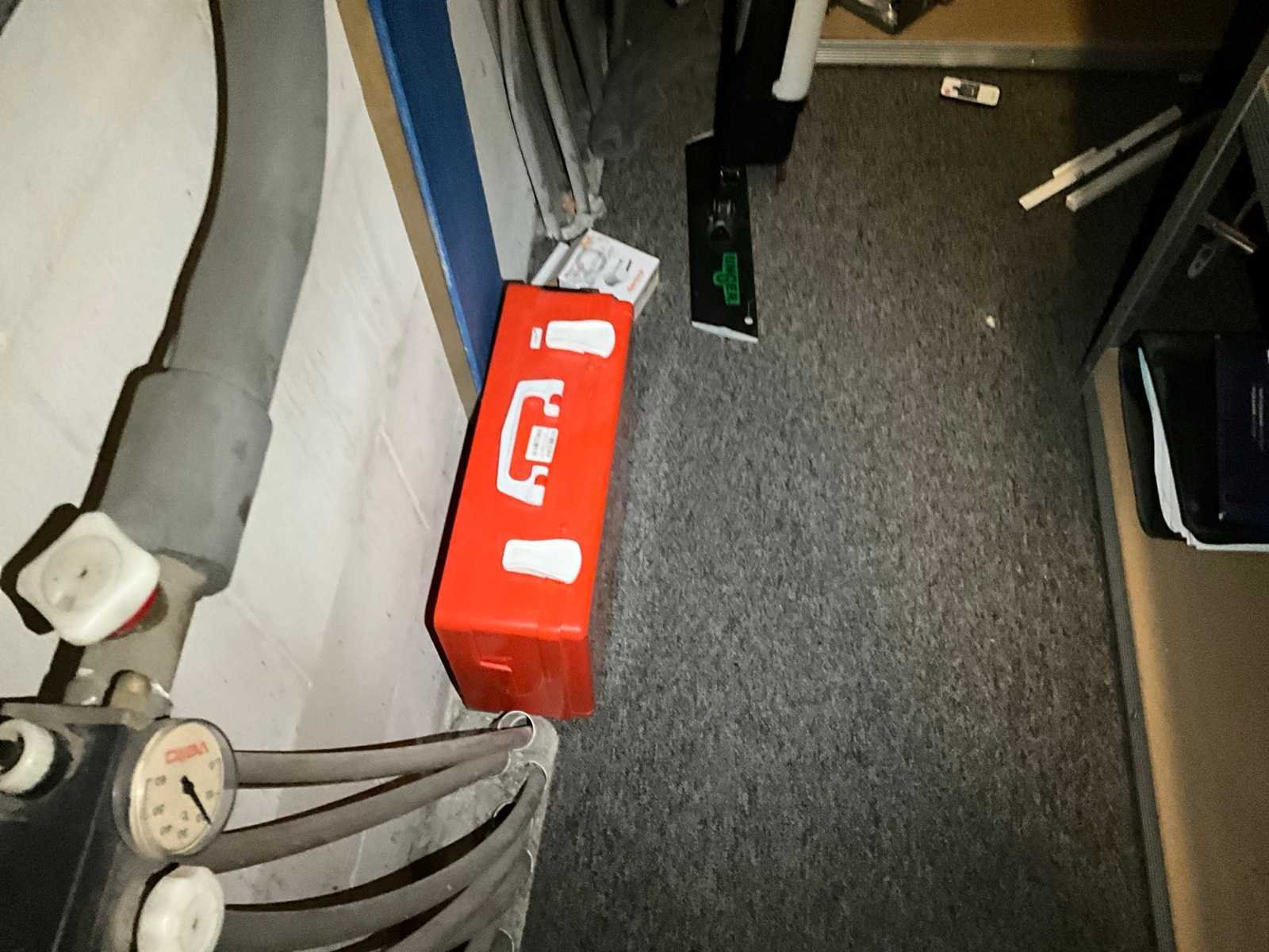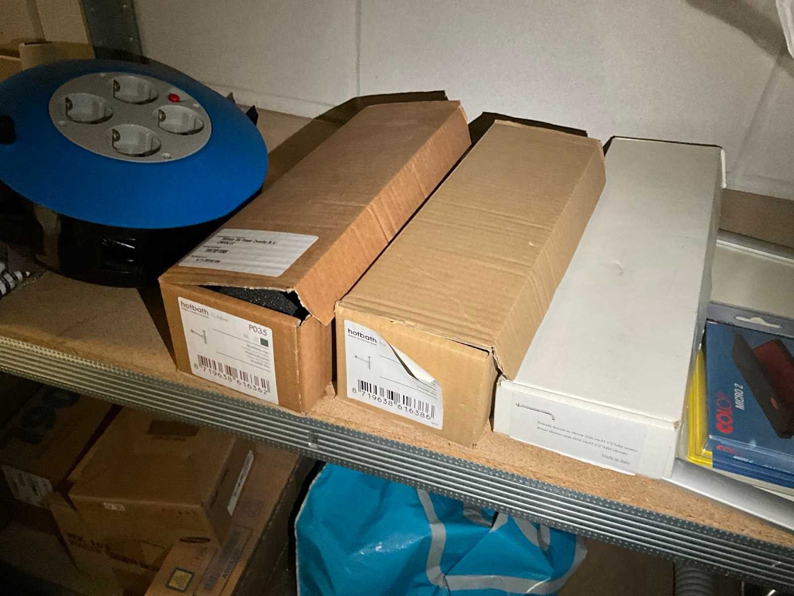 Bestaande uit: Inhoud ruimte 1e: 4X Legbordstelling 2e: Bisley dossierkast 3e: HP monitor 4e: Hitachi accu schroefmachine 5e: Tekno radiator 6e: Kranen 7e: Folders 8e: Printpapier 9e: Etc