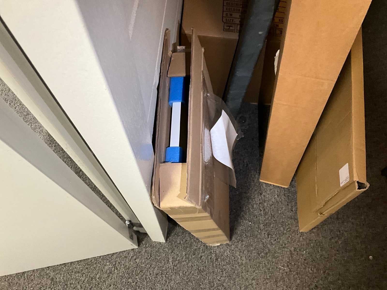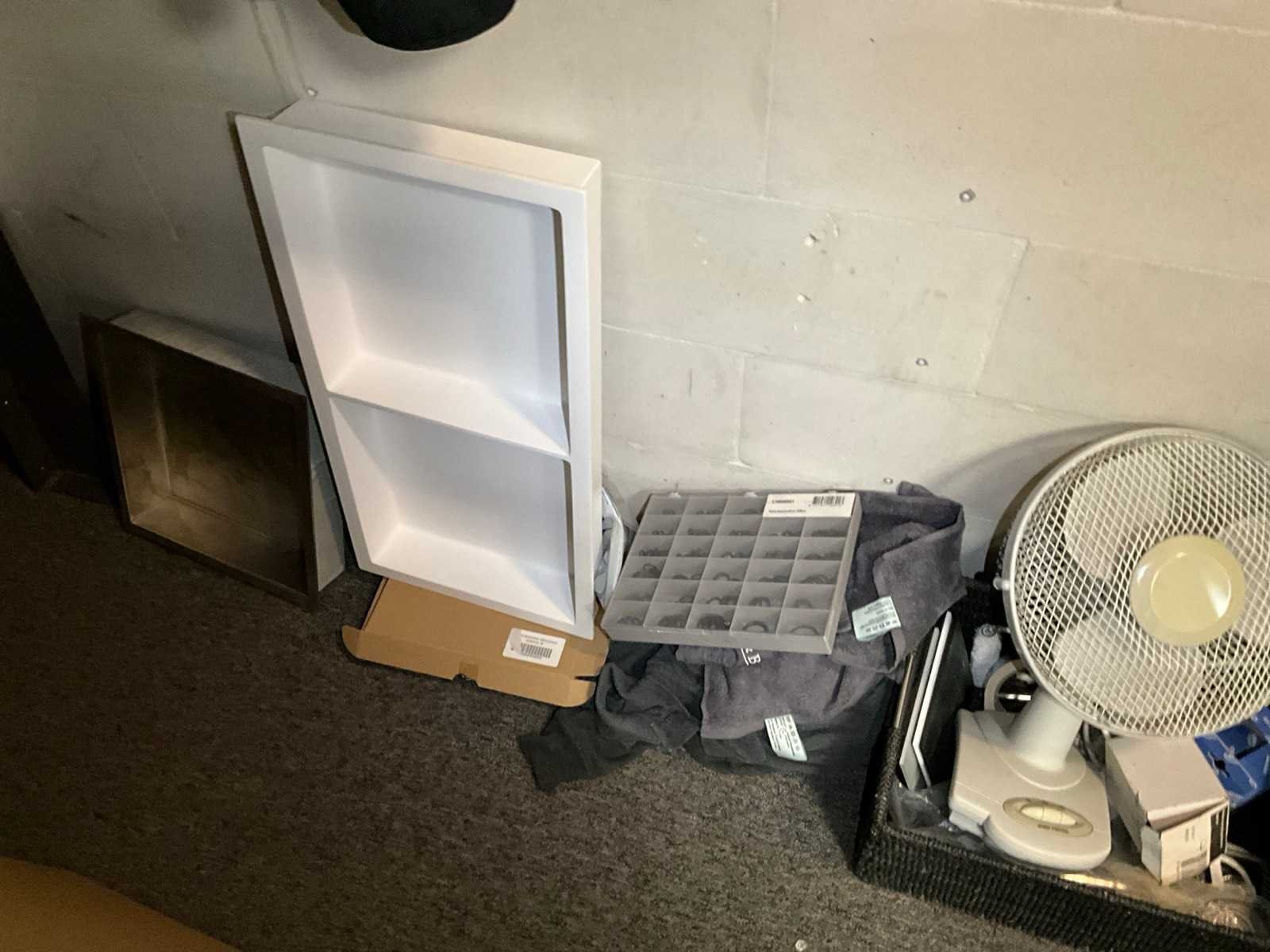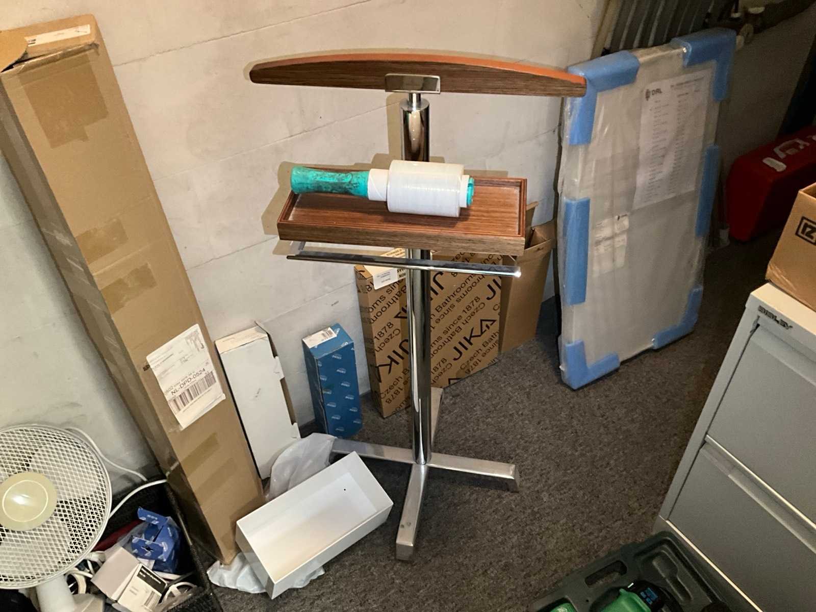 Bestaande uit: Inhoud ruimte 1e: 4X Legbordstelling 2e: Bisley dossierkast 3e: HP monitor 4e: Hitachi accu schroefmachine 5e: Tekno radiator 6e: Kranen 7e: Folders 8e: Printpapier 9e: Etc