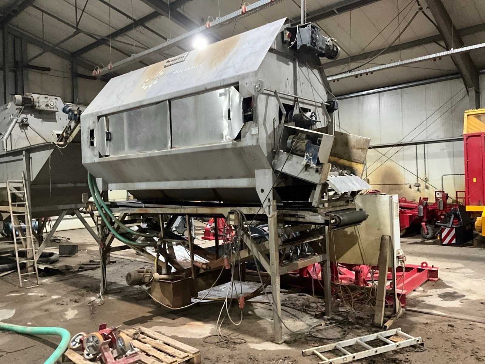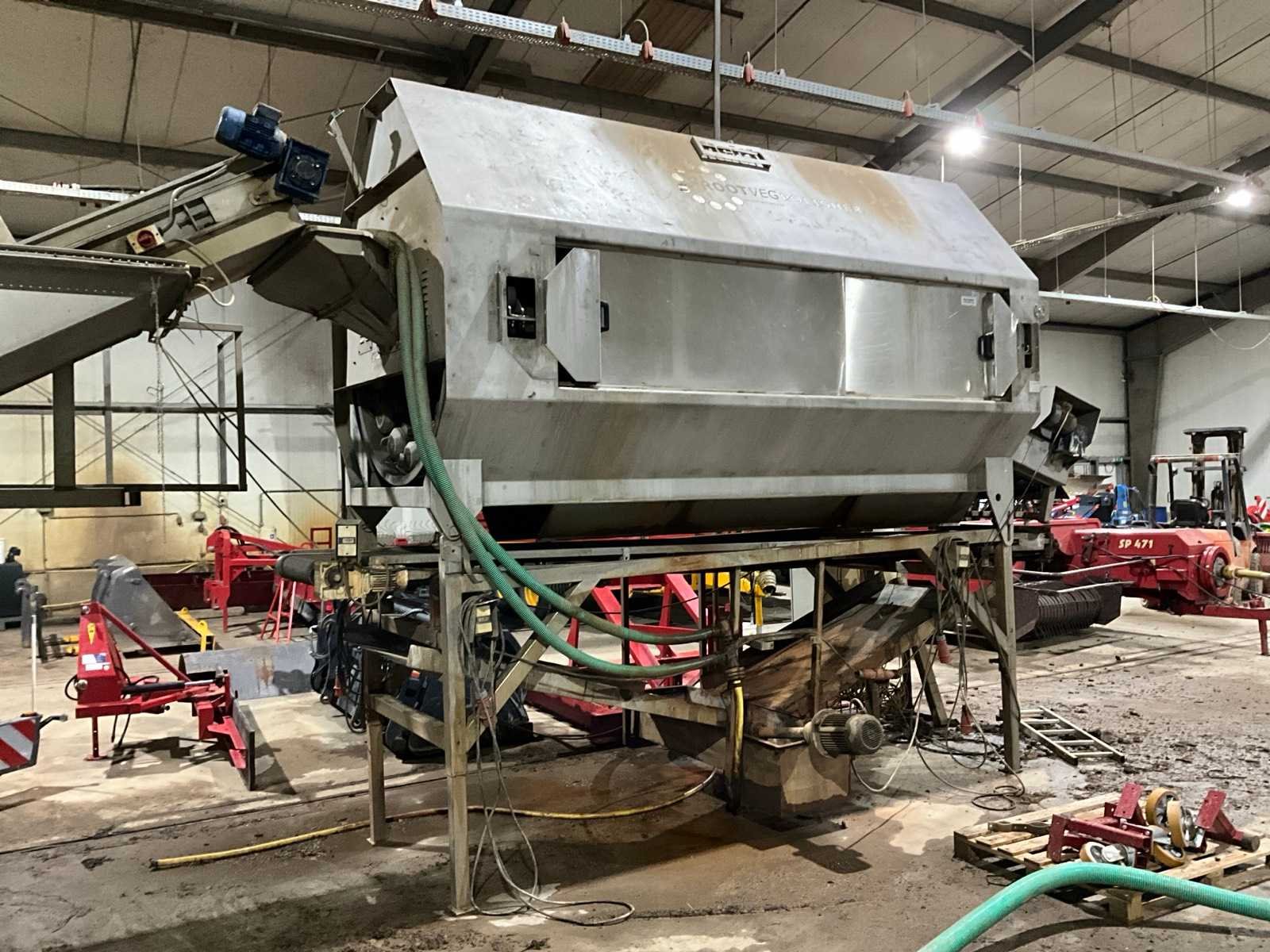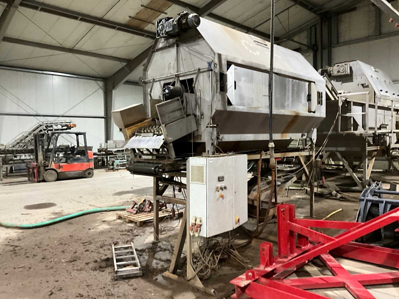 14x borstelrol 3000mm lang, Uitvoer 850mm breed, Afvoerband aarde 710mm breed, opvangbak met vuilwaterpomp, eenvoudig in 2 delen voor transport Merk: Haith Type: Rootveg Polisher Bouwjaar: 2011 Serienummer: 18668-002 Aansluiting: 400V Totale afmeting L: 5300mm Totale afmeting Breedte: 1900mm Totale afmeting Hoogte: 4100mm