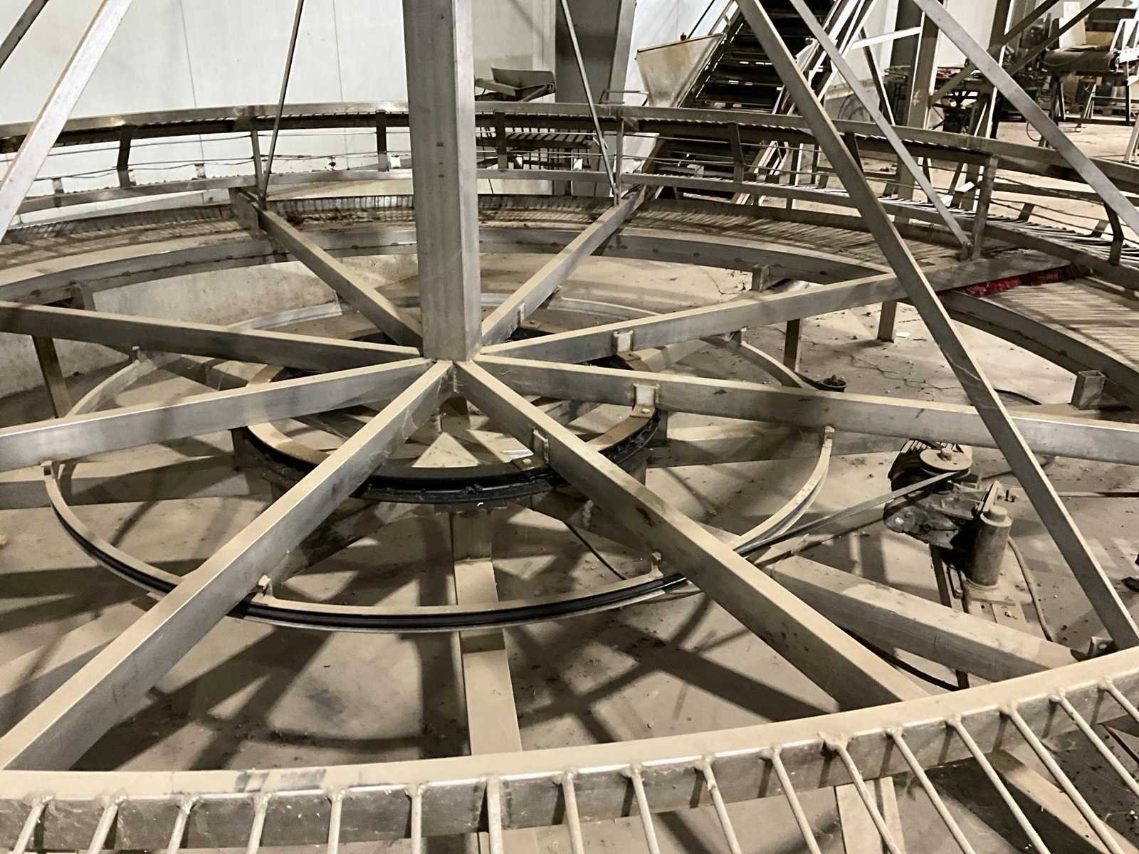 Toevoer baan 680mm breed, product rand 540mm diep, kisten rand 540mm diep, kisten afvoerbaan 500mm breed, RVS Aansluiting: 400V Totale afmeting L: 5500mm Totale afmeting Breedte: 6000mm Totale afmeting Hoogte: 2500mm