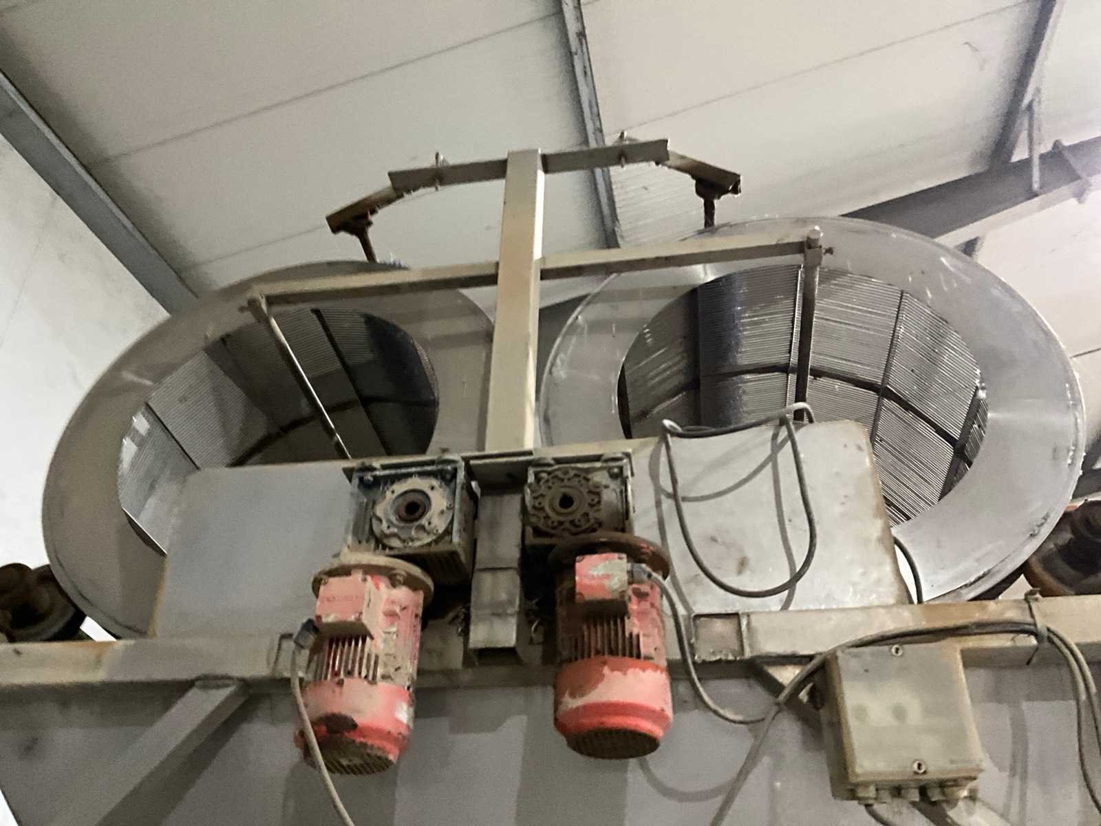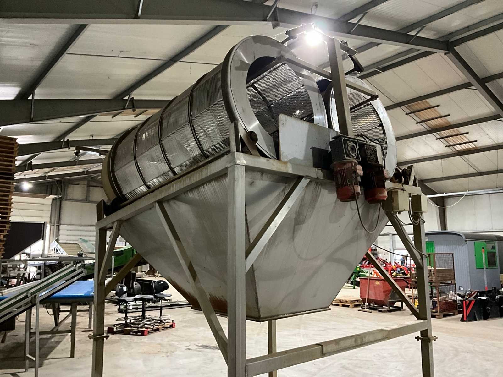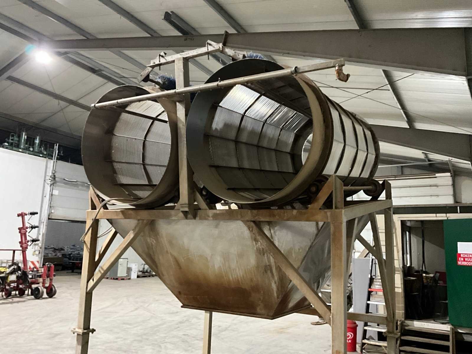 2x 400V motor ter roteren, 2x wastrommel, Sproeier met GK koppeling, stortkoker 1000x1000mm, poten op 1080mm te demonteren Aansluiting: 400V Totale afmeting L: 2460mm Totale afmeting Breedte: 2600mm Totale afmeting Hoogte: 4000mm
