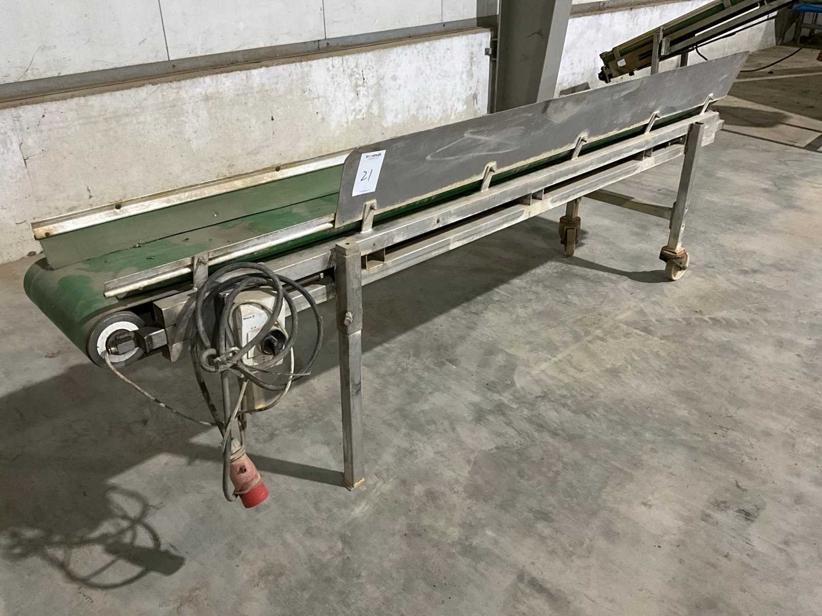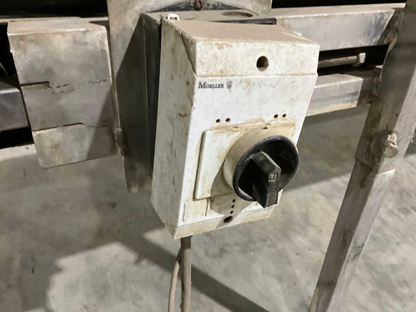 Bandbreedte 340mm, hoogte verstelbaar aan 1 zijde, 400V Lengte: 260cm Breedte: 65cm Hoogte: 92cm