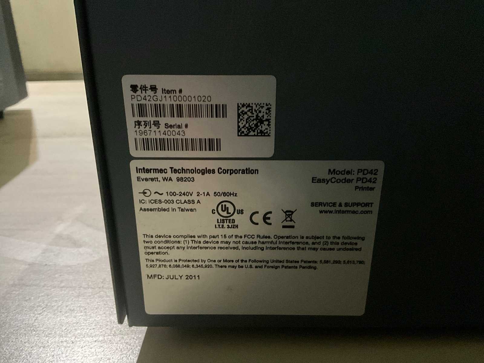 Zonder voedingskabel, printbreedte 104mm, printsnelheid 150mm/sec, 203DPI Merk: Intermec Type: Easycoder PD42 Print snelheid: 150 Labelbreedte: 125 Lengte: 450 Breedte: 270 Hoogte: 275