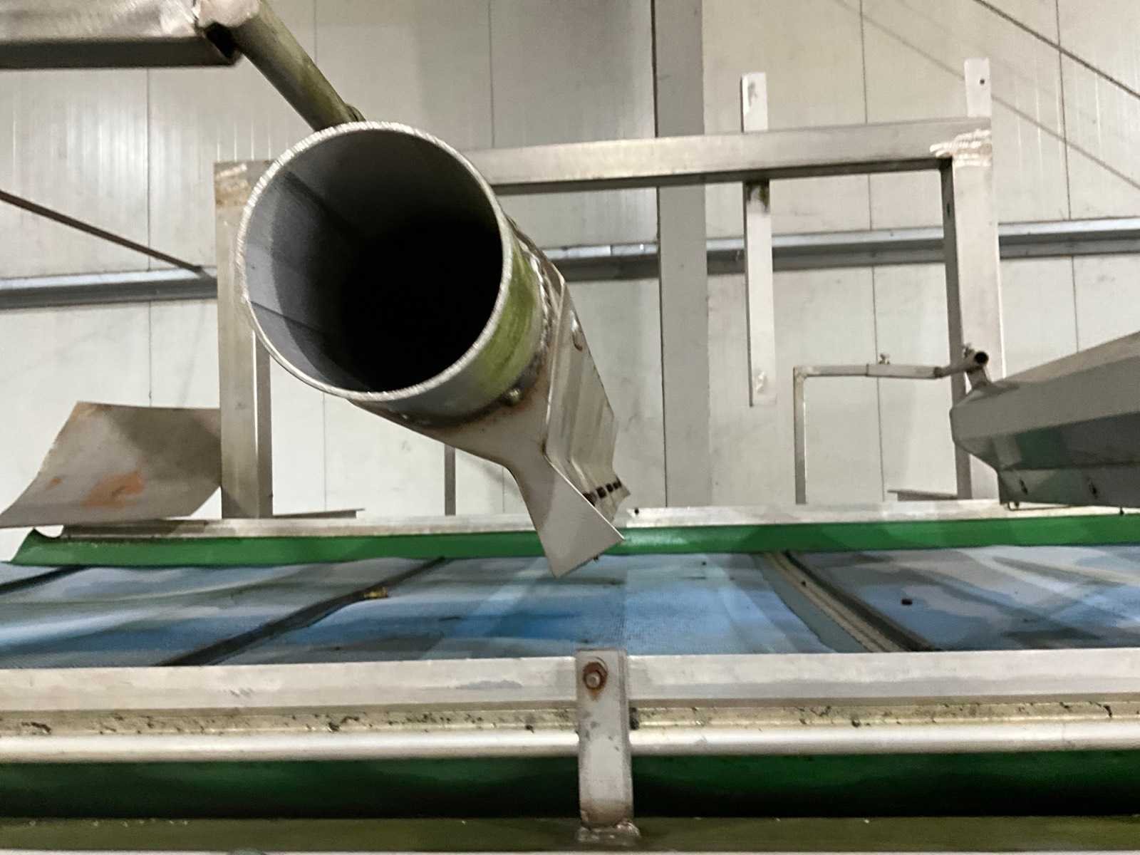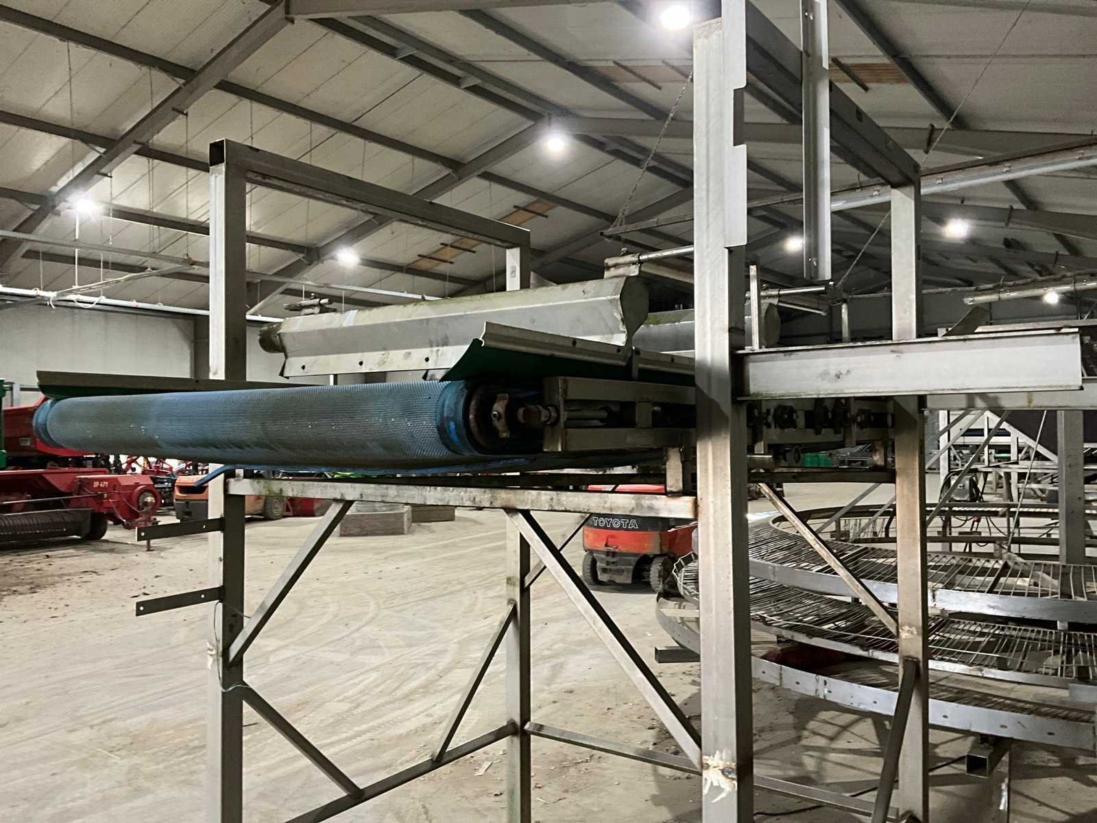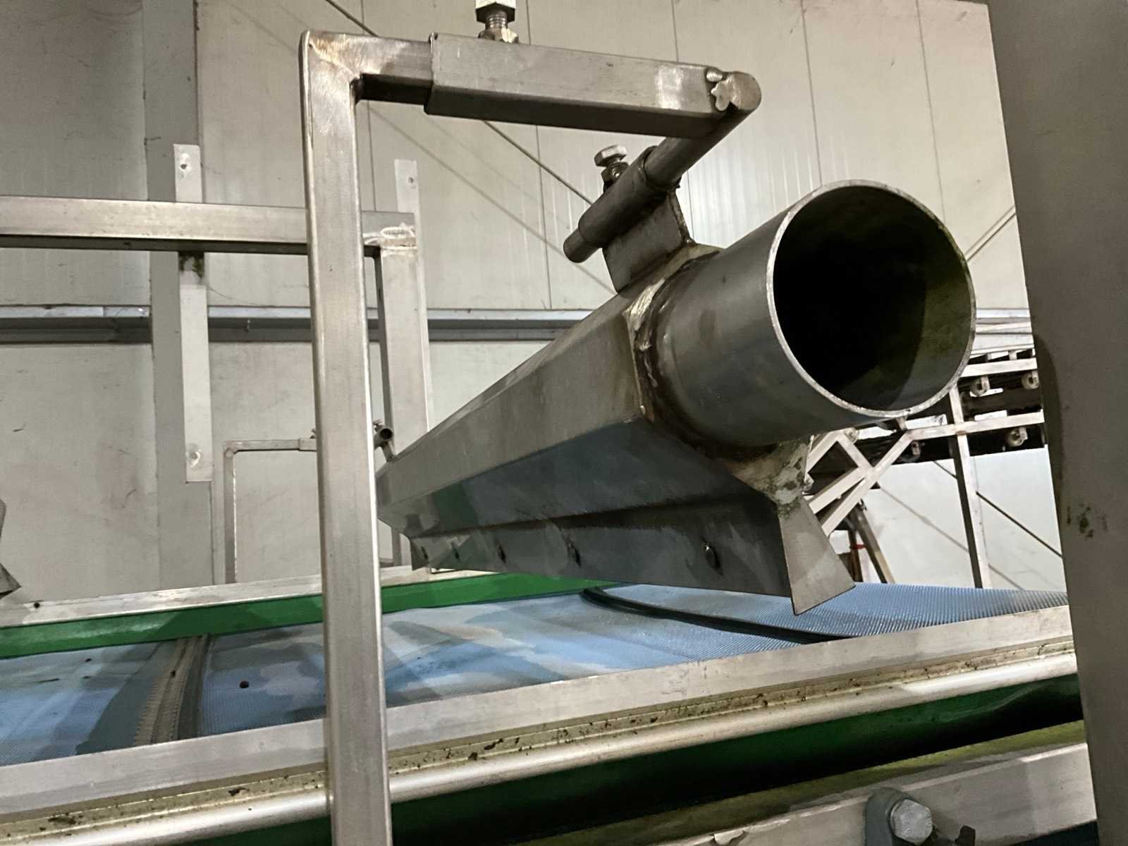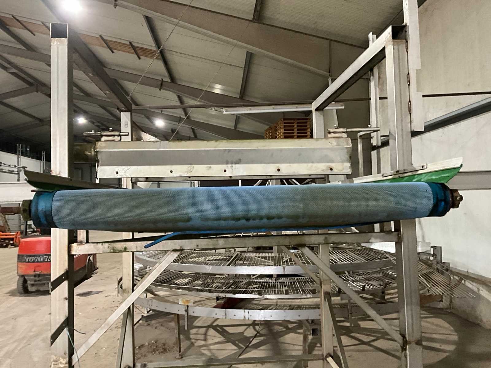 2x droogblaasbuis, bandbreedte 1400mm, transportband op 2050mm van vloer, RVS frame Lengte: 2700cm Breedte: 2950cm Hoogte: 3050cm