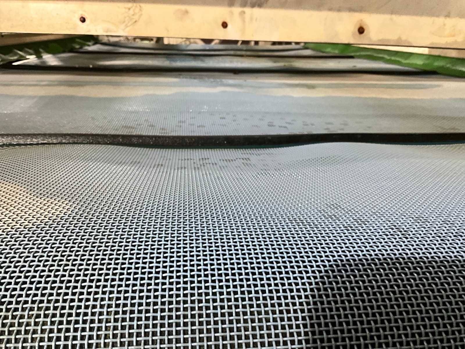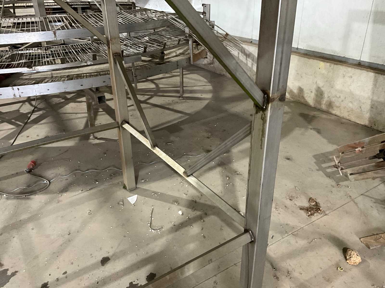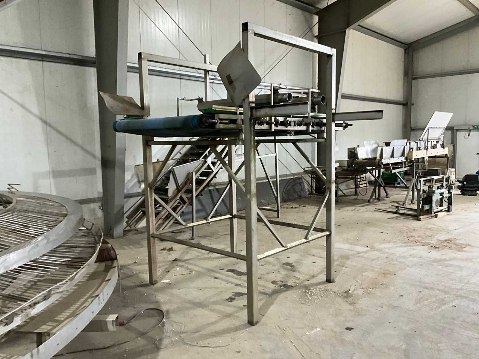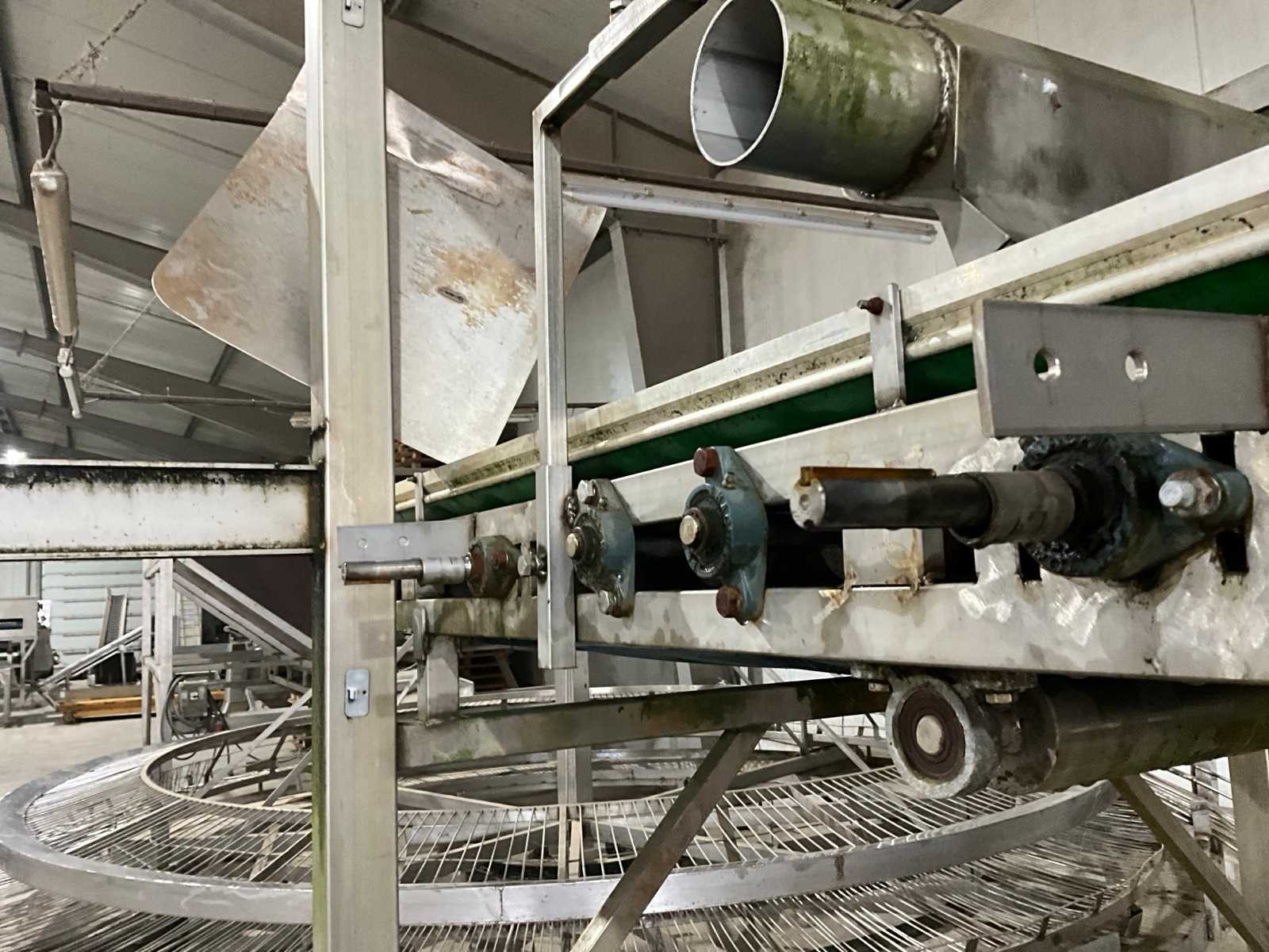 2x droogblaasbuis, bandbreedte 1400mm, transportband op 2050mm van vloer, RVS frame Lengte: 2700cm Breedte: 2950cm Hoogte: 3050cm