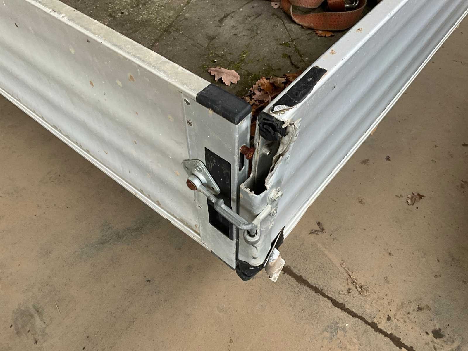 3 zijdes te openen, houten bodem, spatborden, bevestigingspunten chassis 800mm uiteen Lengte: 350cm Breedte: 210cm Hoogte: 195cm