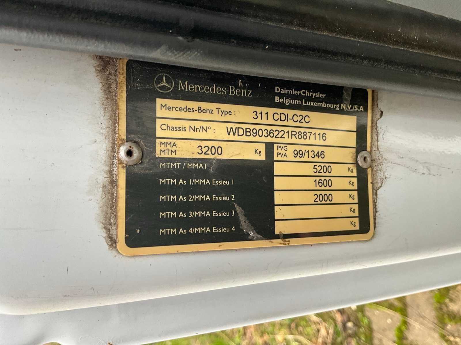 Registratie geschorst, airco, ASR, 6 zitplaatsen, trekhaak met 13-polige stekker, afneembare huif, laadbak 2700x1950mm, 3 zijdes te openen Kenteken: VD-849-K Merk: Mercedes-benz Type: 311 CDI 2.2 Model: Sprinter Bouwjaar: 2005 Chassisnummer: WDB9036221R887116 Afgelezen kilometerstand: 258531km Cilinderinhoud: 2148cc Vermogen (kW): 80kW Brandstof: diesel Datum eerste toelating: 2005-11-28 Datum eerste toelating (NL): 2013-04-24 APK vervaldatum: 2025-06-17 NAP status: Geen oordeel Aandrijving: RWD Transmissie: Handgeschakeld Aantal zitplaatsen: 7 Kleur: niet van toepassing Nationaliteit documenten: Nederlands Stuurwiel: Links Bruto BPM (NL): 9015 Rest BPM: 0 Aantal deuren: 3 Ledig gewicht: 1975kg Laadvermogen: 1225kg Vermogen (pk): 109 Aantal cilinders: 4 Velgmaat: 15” Carrosserie: neerklapbare zijschotten Emissieklasse: 3 Startinformatie: Start en rijdt Maximaal trekgewicht ongeremd: 750 No self drive export!: true