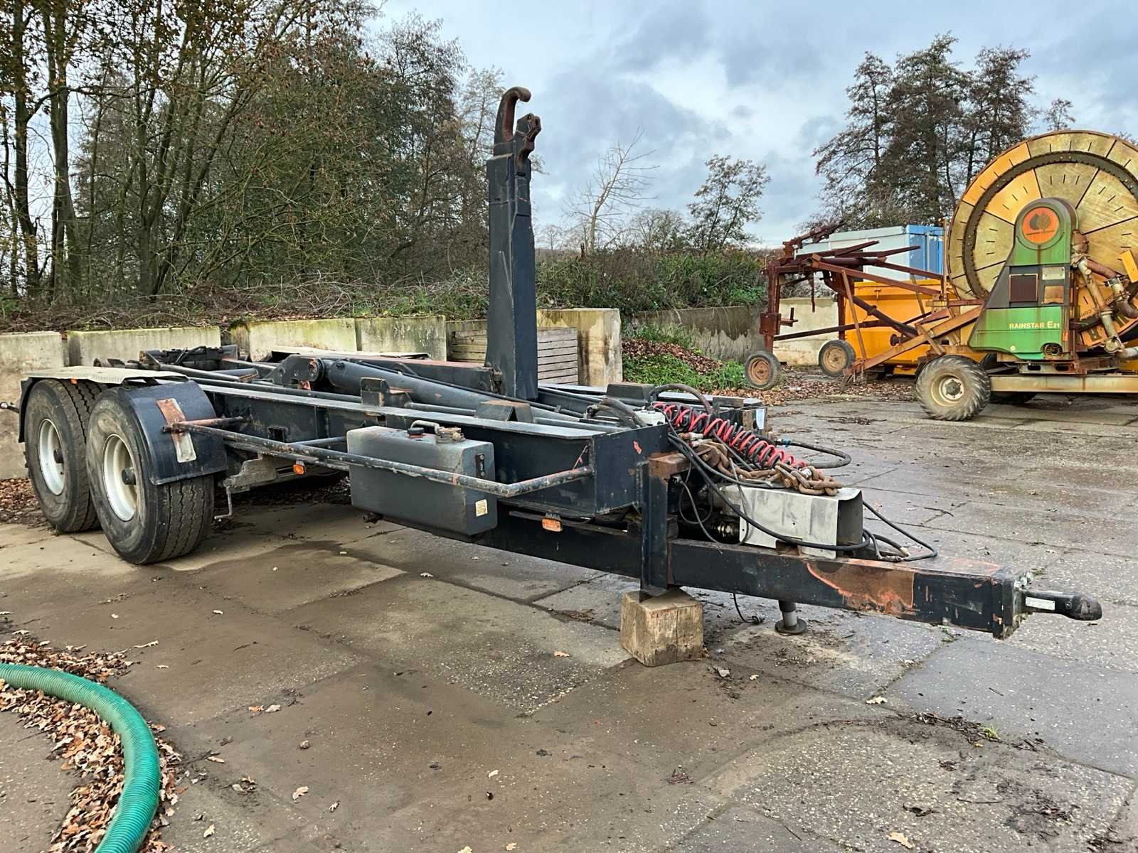 PTO aangedreven hydruliekpomp, K80 knobbel, hydraulische steunpoot, hydraulischd vergrendeling container, hydraulische aansluiting achterzijde, trommelremmen, Let op: schade aan hef, geen registratie Merk: Orten Bouwjaar: 2005 Serienummer: M8824