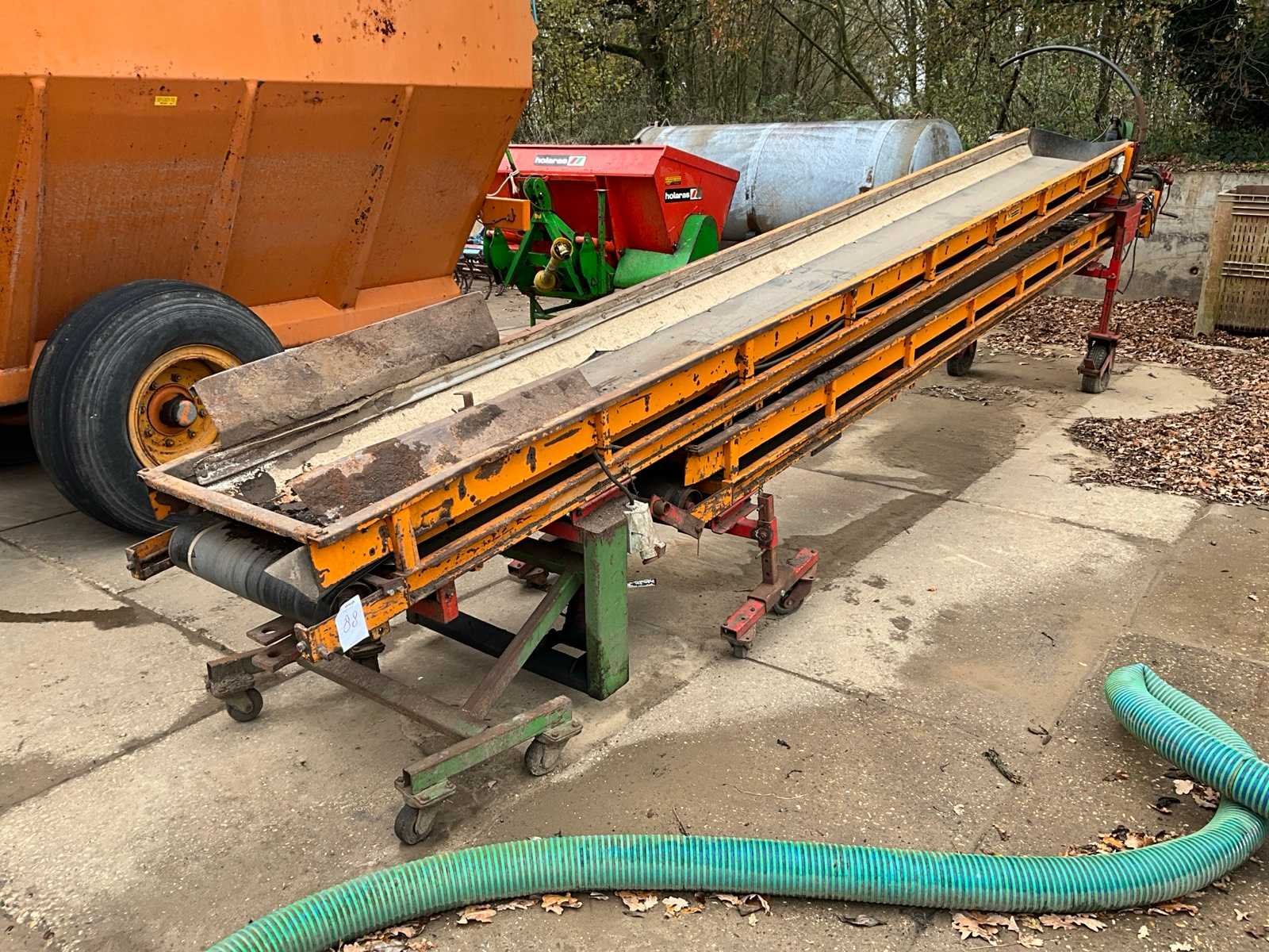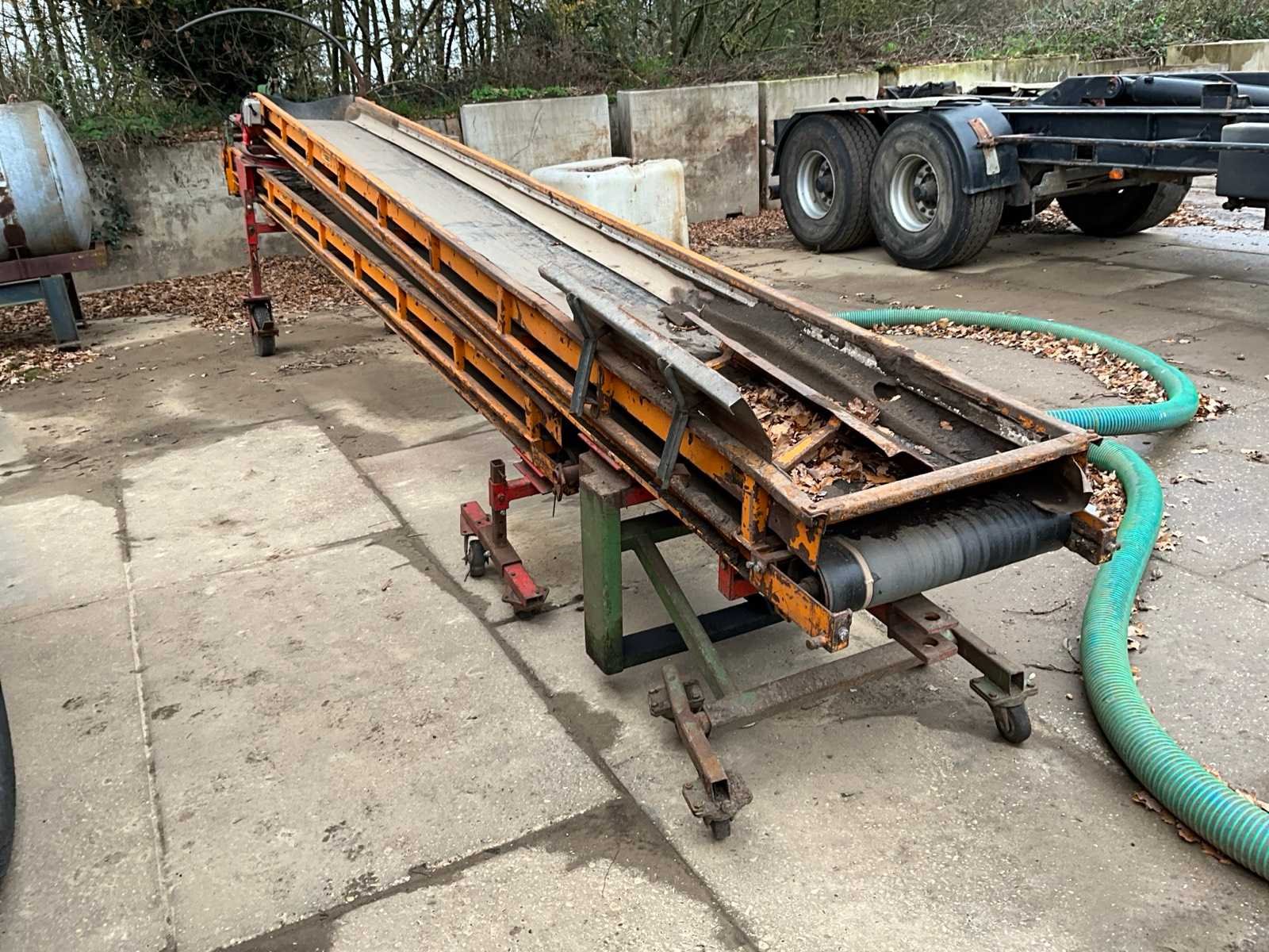 2x transportband 6400mm lang, bandbreedte 600mm, in hoogte verstelbaar, 400V, Merk: Miedema Lengte: 820cm Breedte: 120cm Hoogte: 200cm